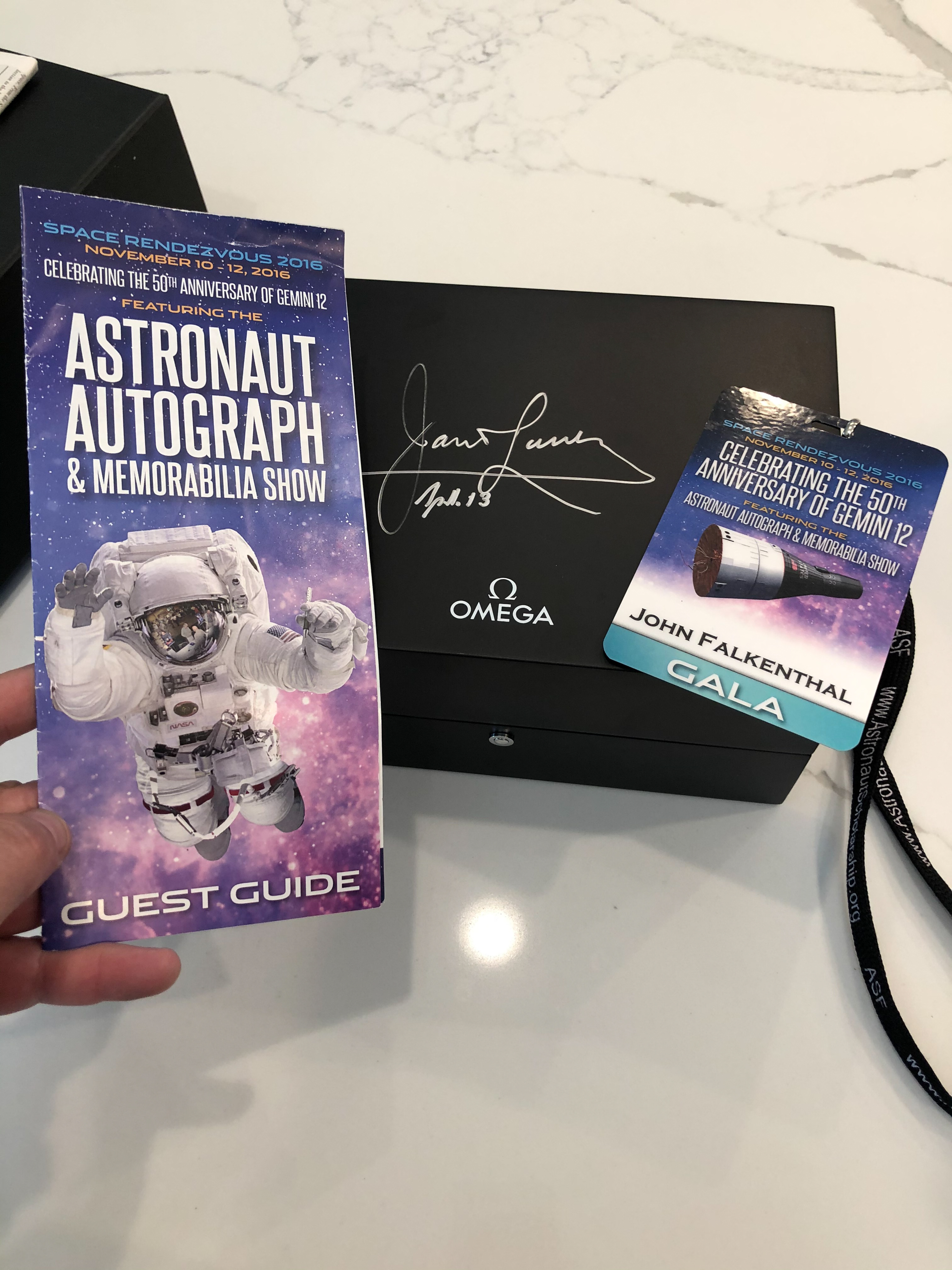Making this Silver Snoopy set particularly unique and rare, perhaps the only one out of all 1970.... the inner box has been signed by Apollo 13 mission commander James Lovell. The signature is big and bold and includes "Apollo 13" under his name, centered on the top of the inner box in white sharpie permanent ink. In a word... its awesome. I got Jim's signature at a 50th Anniversary Gemini 12 Gala and signing event in November 2016, and took a picture of Jim immediately after he signed the box, to show the provenance, photo included below. There's a good story that goes along with this that I will share with the buyer. It's also worth noting, Jim is 92 years old, he hasn't done any signings this year, and is not likely to do any more going forward.
