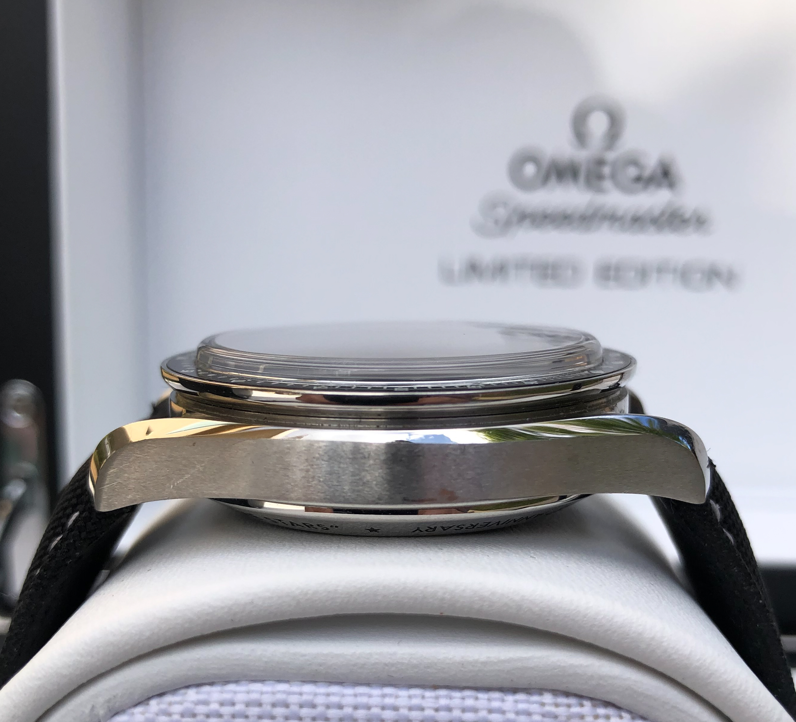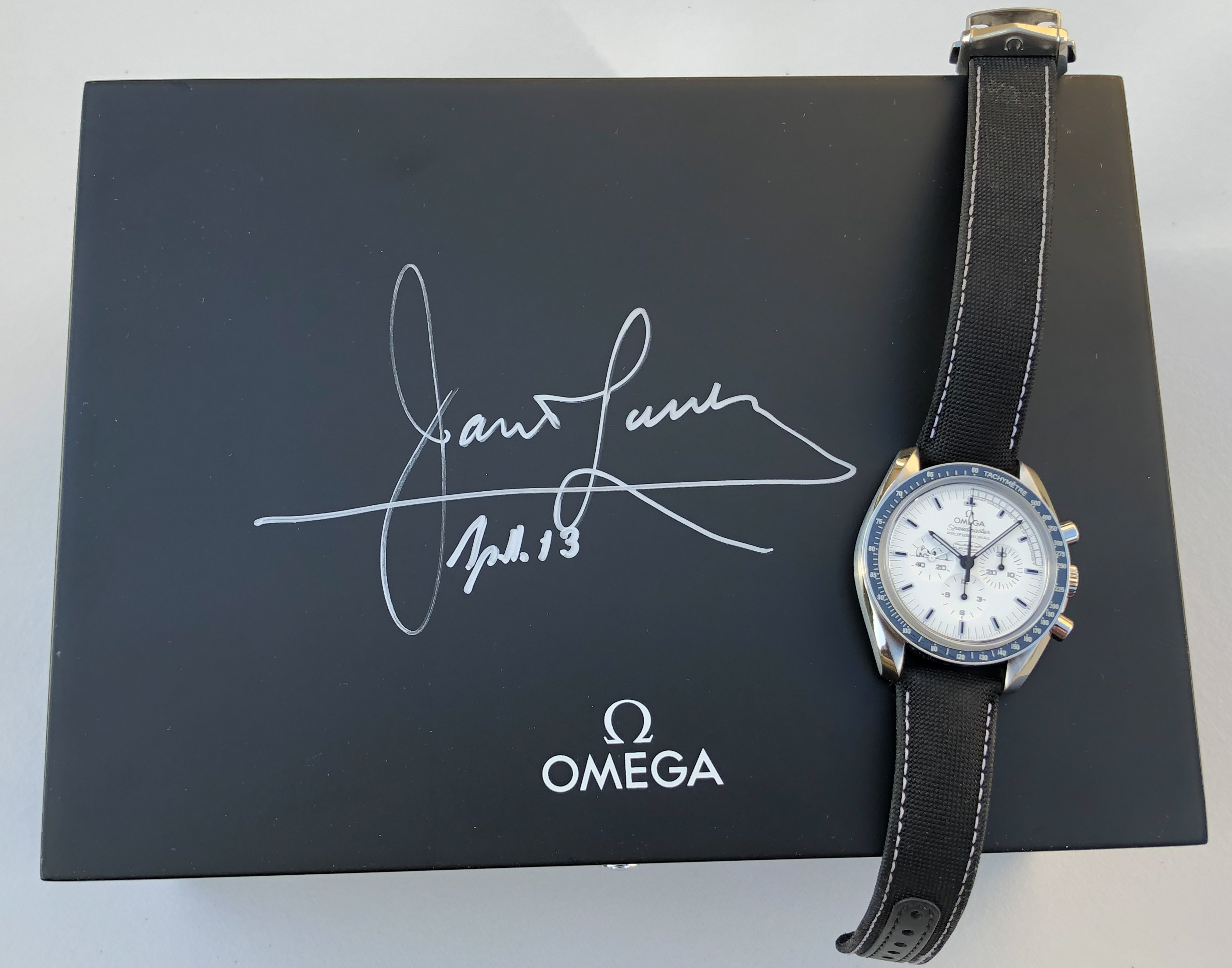 It is in very good overall condition, as the photographs will show, and is in perfect operating condition. The watch comes complete with inner box, outer box, cards and sleeve, owners manual, certificate of authenticity, commemorative "Apollo 13 Chronicle" newspaper, silver snoopy pin, microfibre pouch, and original sales receipt. In addition, this watch is limited edition number 0791, which has a unique property when looking at the back of the watch as it reads 1970 in reverse, making for a wonderfully symmetric engraving on the caseback (see photo).