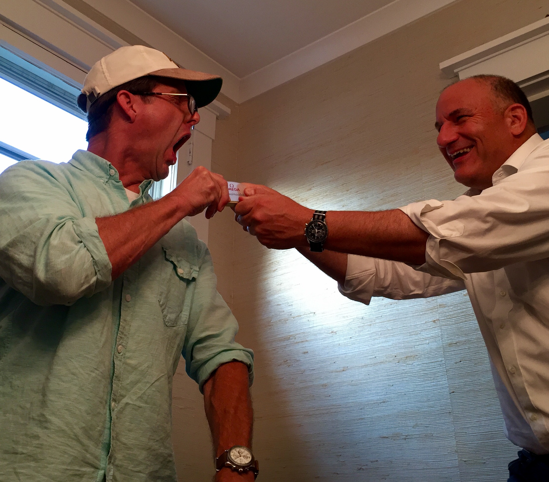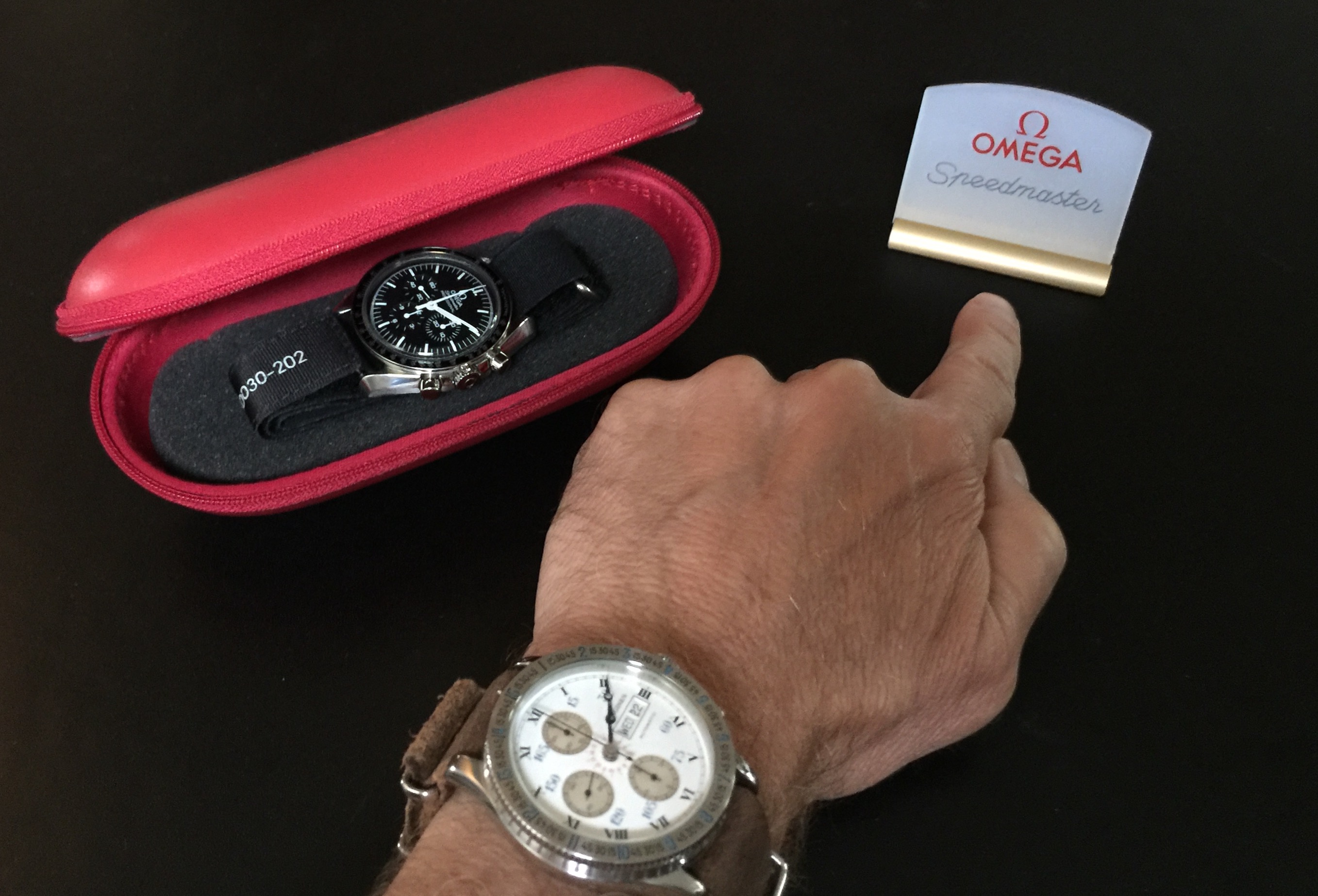 So @ChuckMK23 comes over to my house and attempts to pilfer my new Omega Speedmaster placard (and metal base) that I received from @Darlinboy and family! WTFO? Time to open the WHOLE can on that ChuckMK23 dude! 馃榿