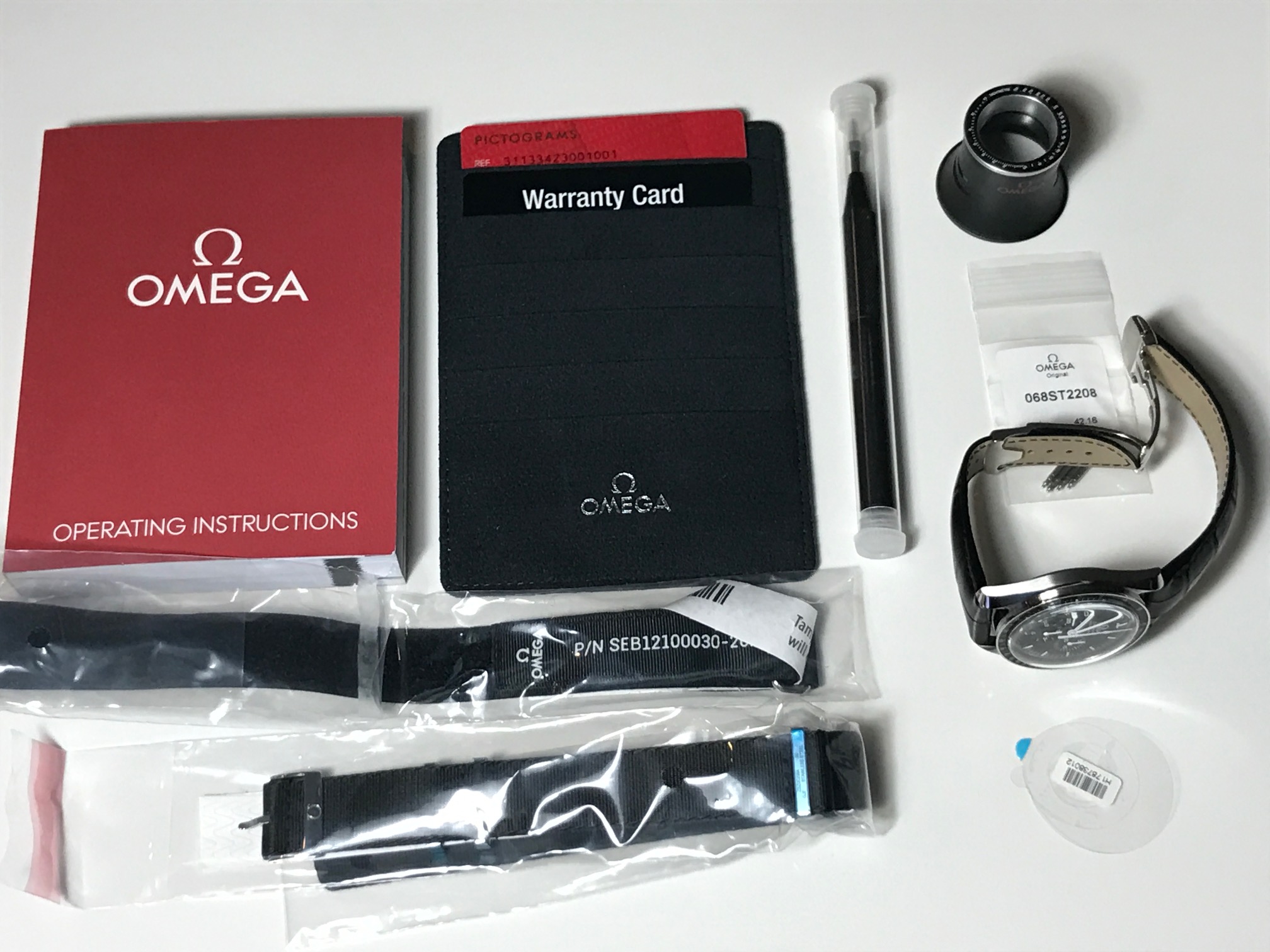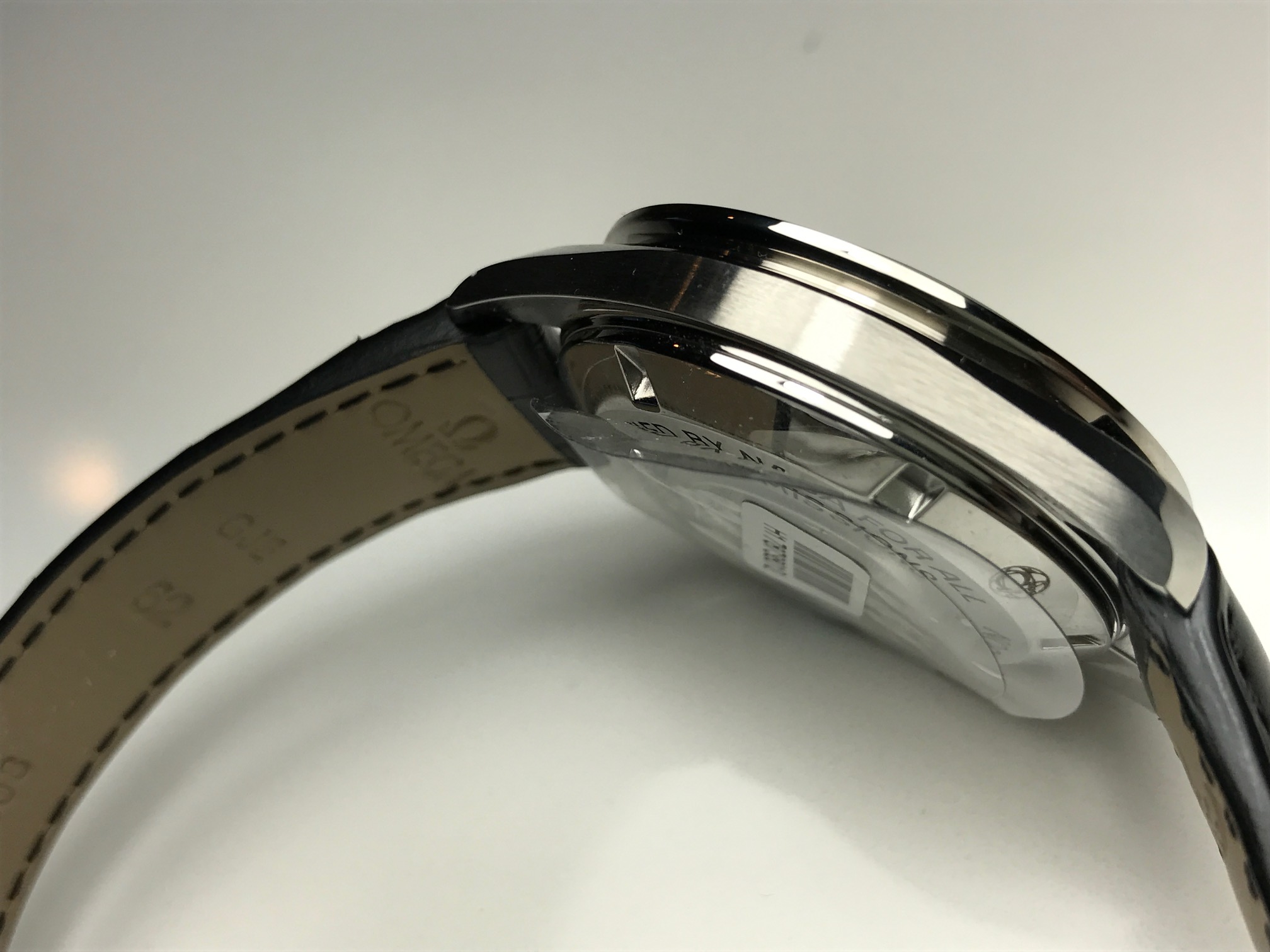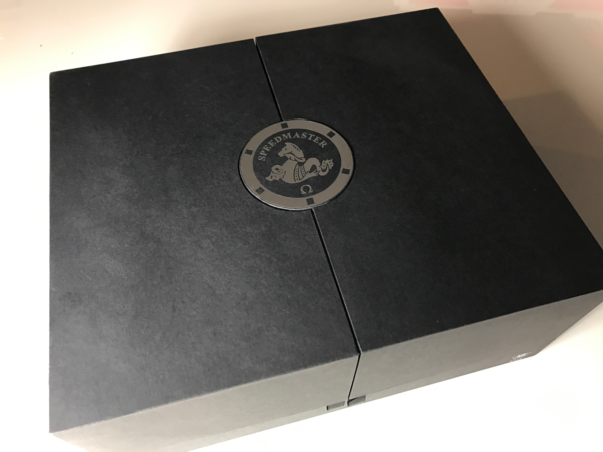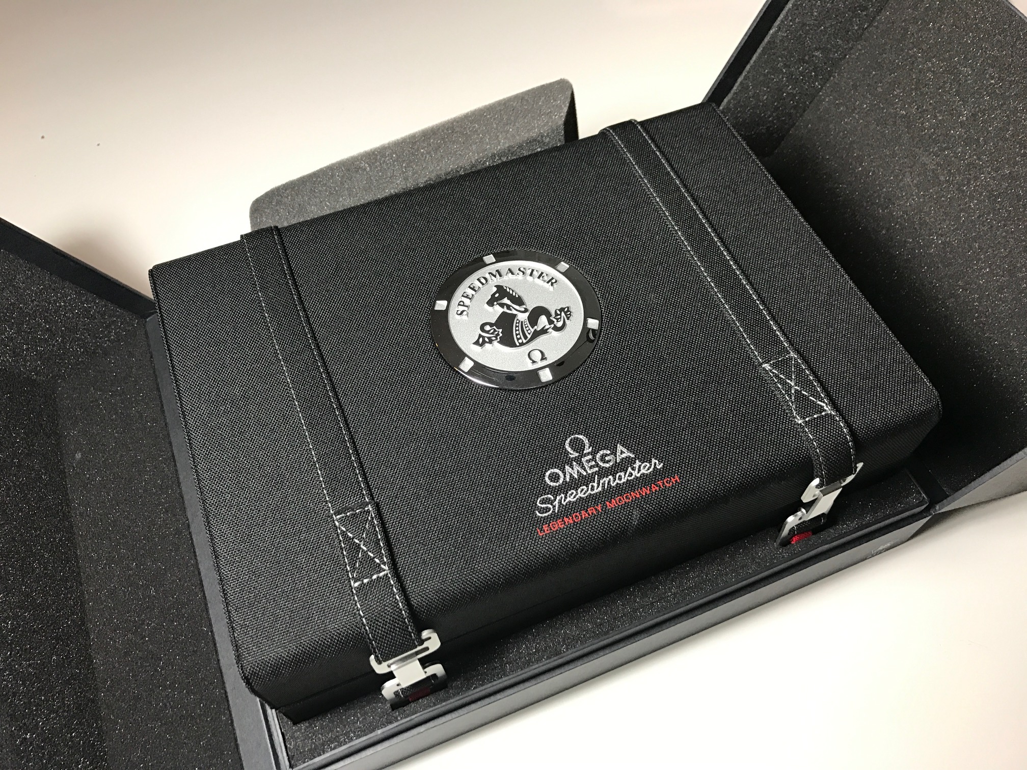 This is the version that comes with the over-sized box / large "suitcase" and tons of goodies. Features the Omega Calibre 1861 hand wind movement with a 48-hour power reserve and scratch resistant hesalite crystal.