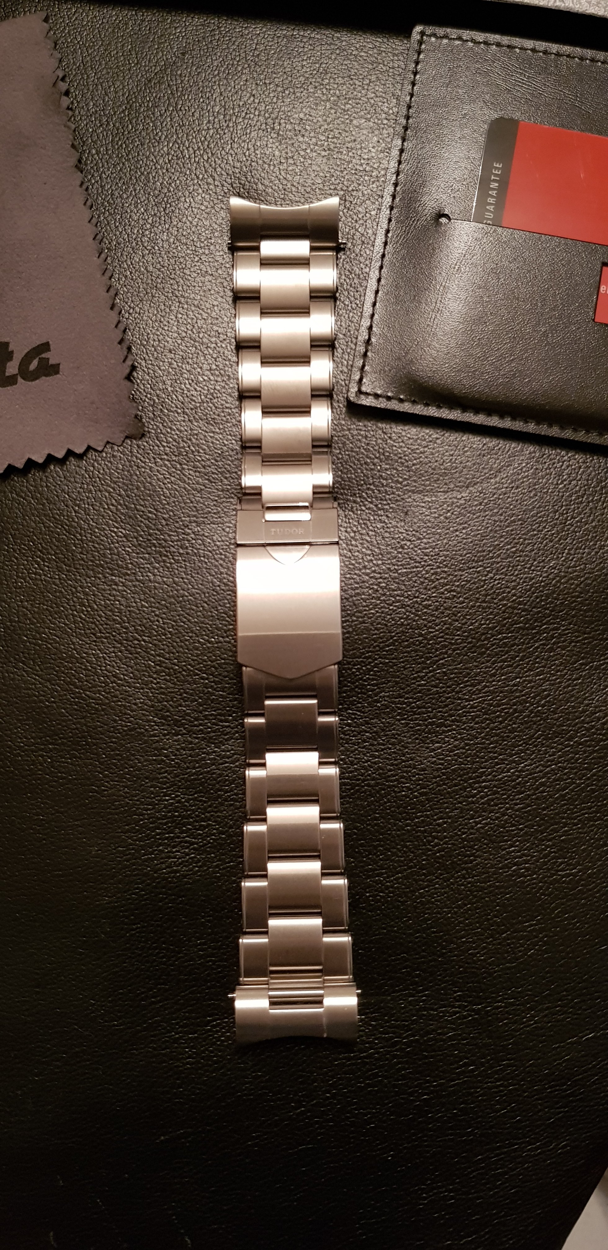 I will throw in the lovely brown, leather geckota strap which I've been wearing it on. The bracelet (and all links) included, and also in excellent condition. Box, papers and purchase receipt all present.