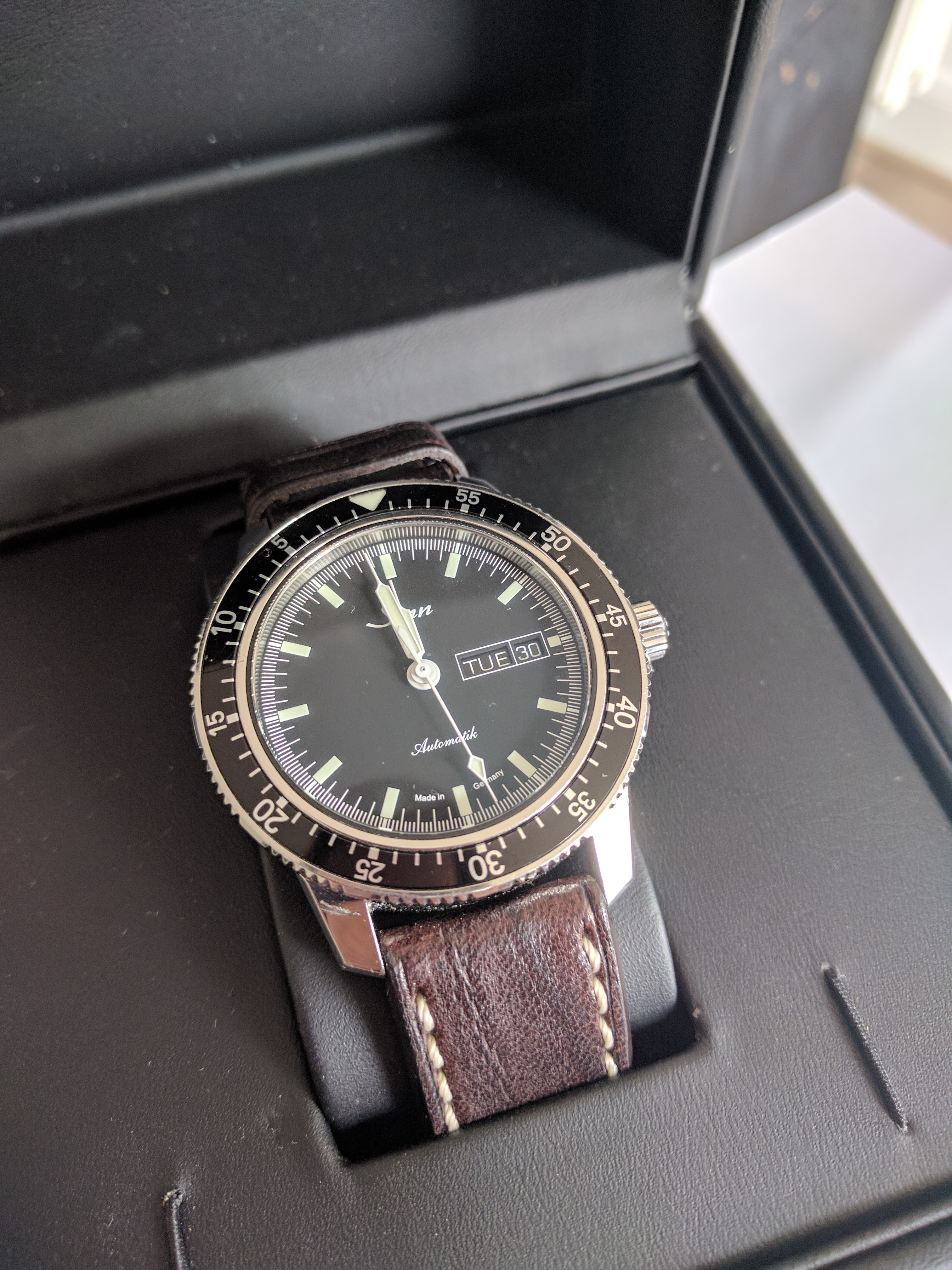 After that, I wanted to try sportier watches. I bought a Sinn 104, a beautiful watch and great value for the money. But it felt too angular, too "masculine" on my wrist. I think I feel the same thing for most 40+mm watches with rotating bezels...