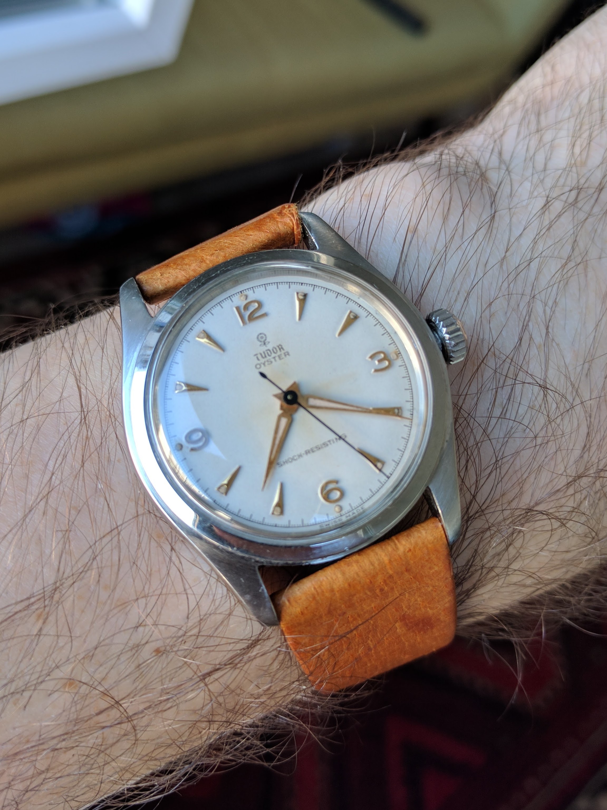 With the Sinn gone, I found an old Tudor oyster, 34mm, with great patina and a blued seconds hand that won me over.