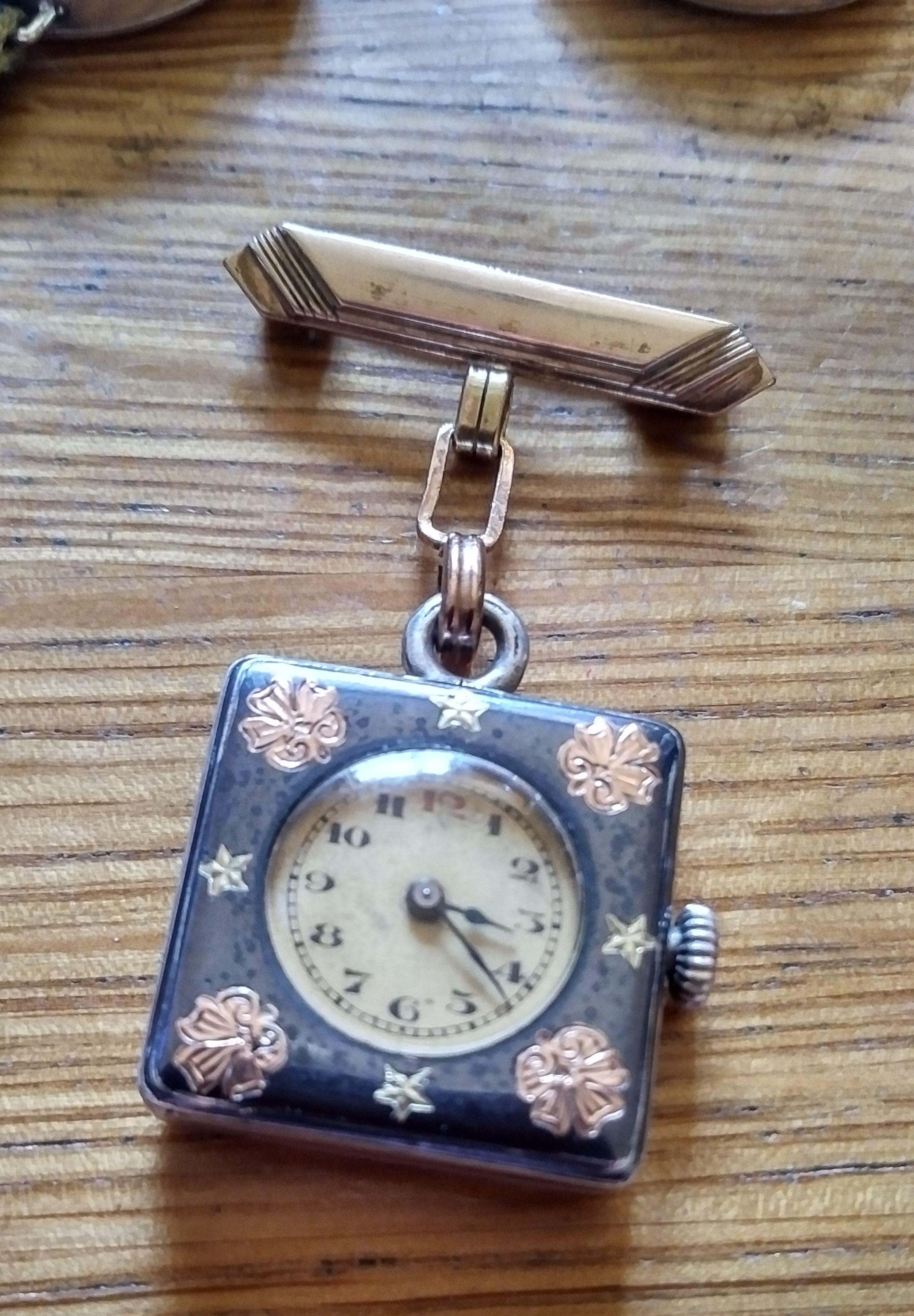 And this one's out of left field too. It's not ticked since I owned it and it's away with Martin, a retired watch maker who did a lot with these little fobs, rose and yellow gold in a jet black enamel (the photo doesn't show how perfect that black enamel really is) ... he promises he'll get around to making parts for it over Christmas: