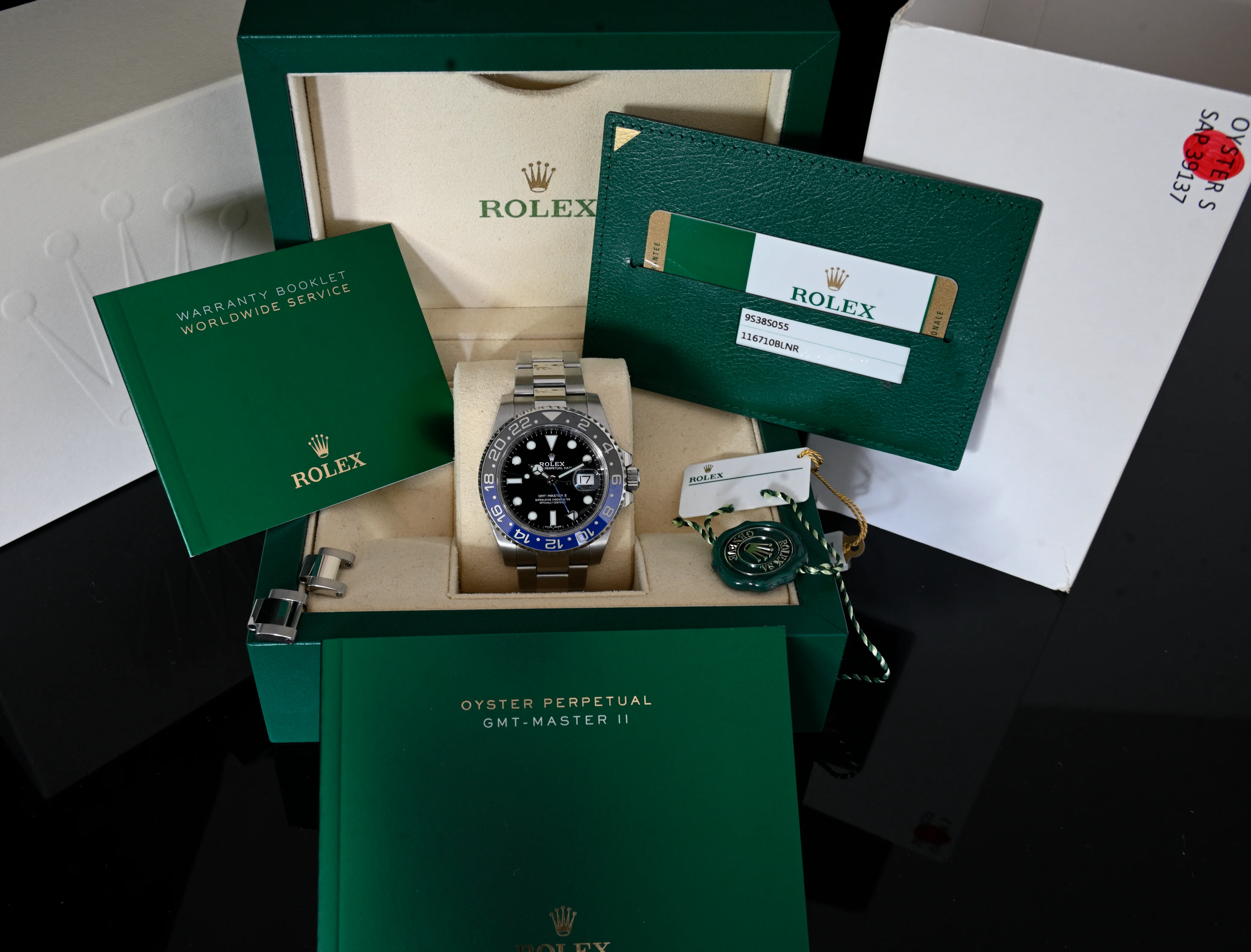 - Rolex green tag and serialized white tag