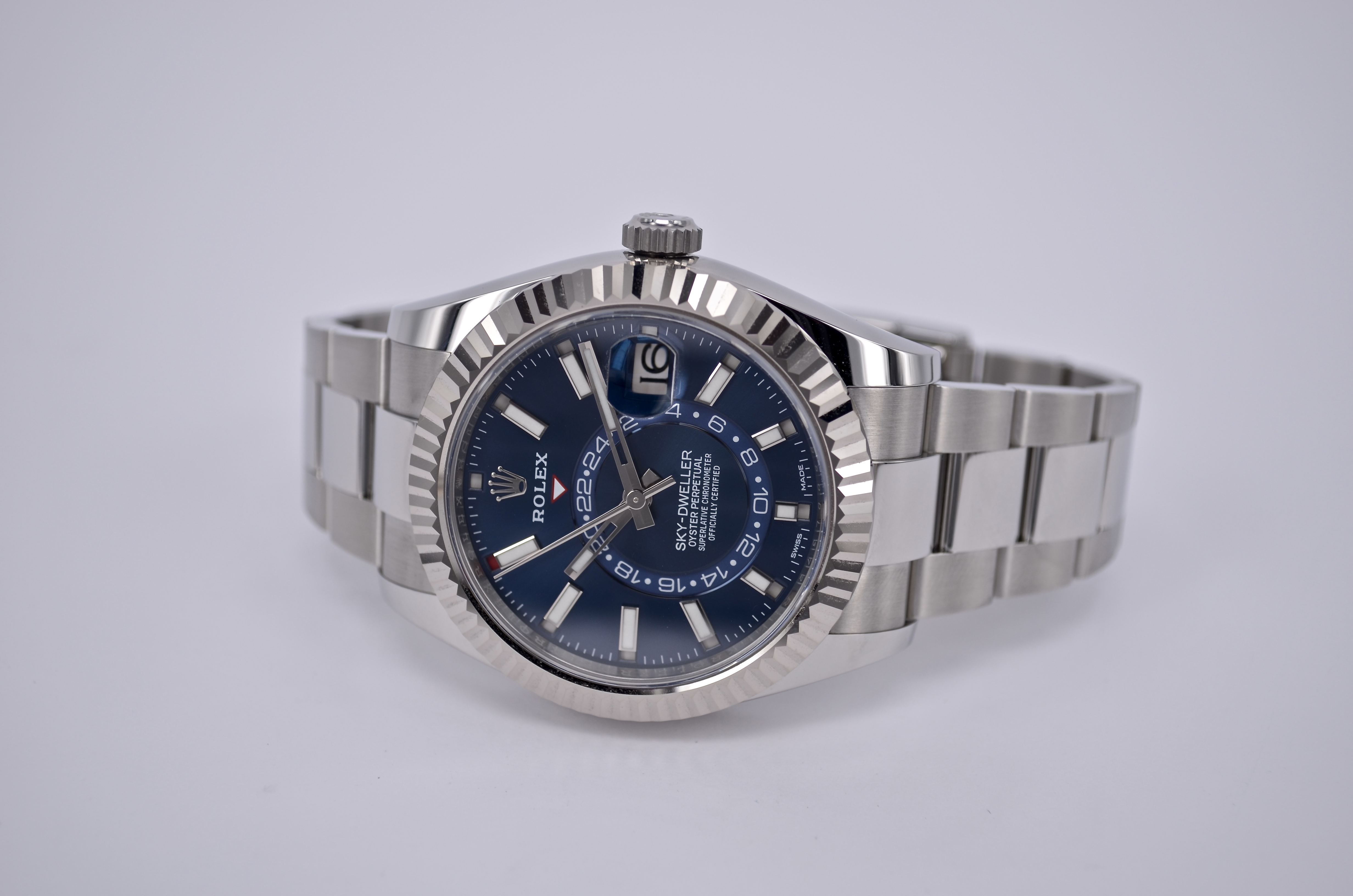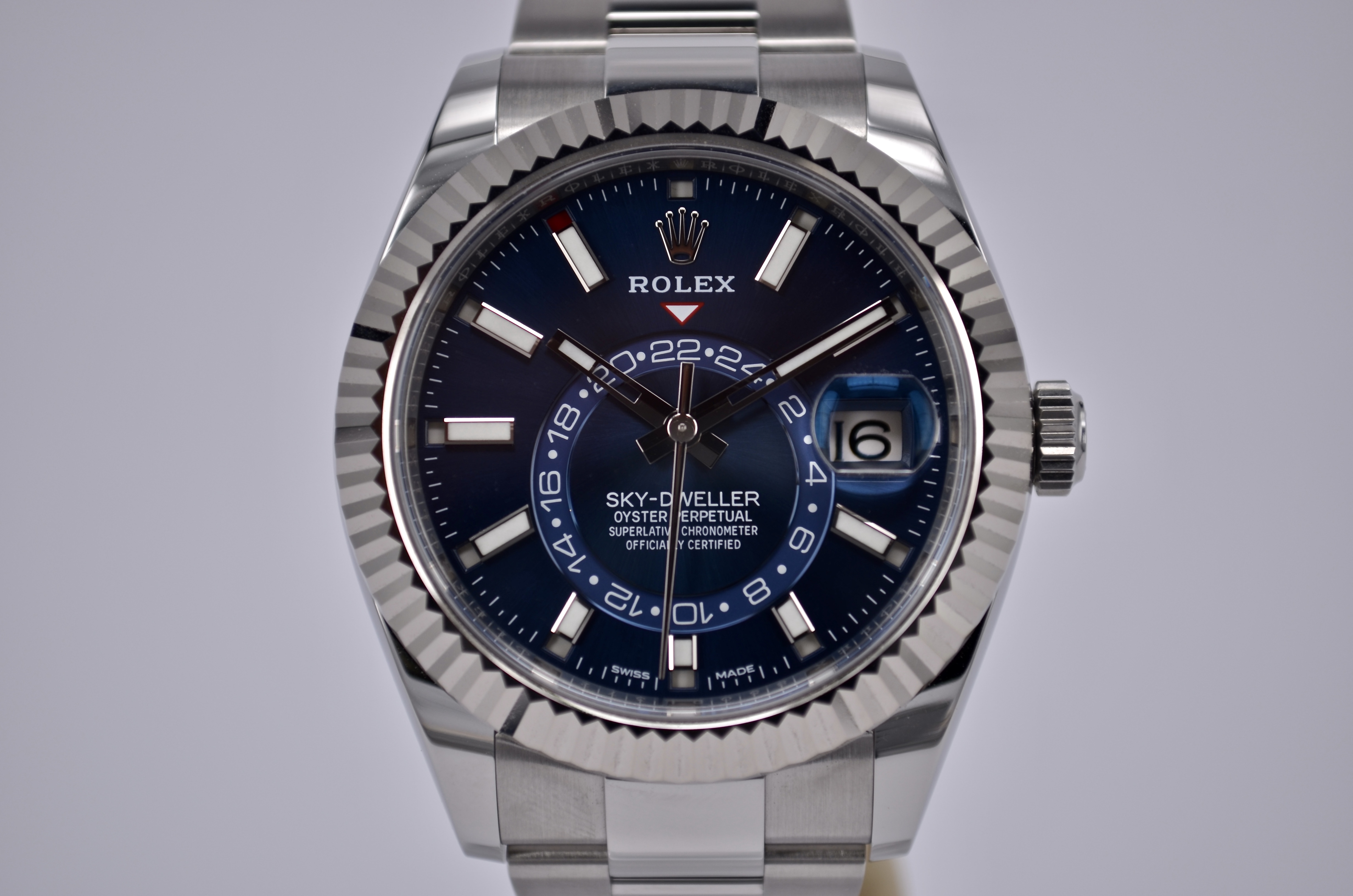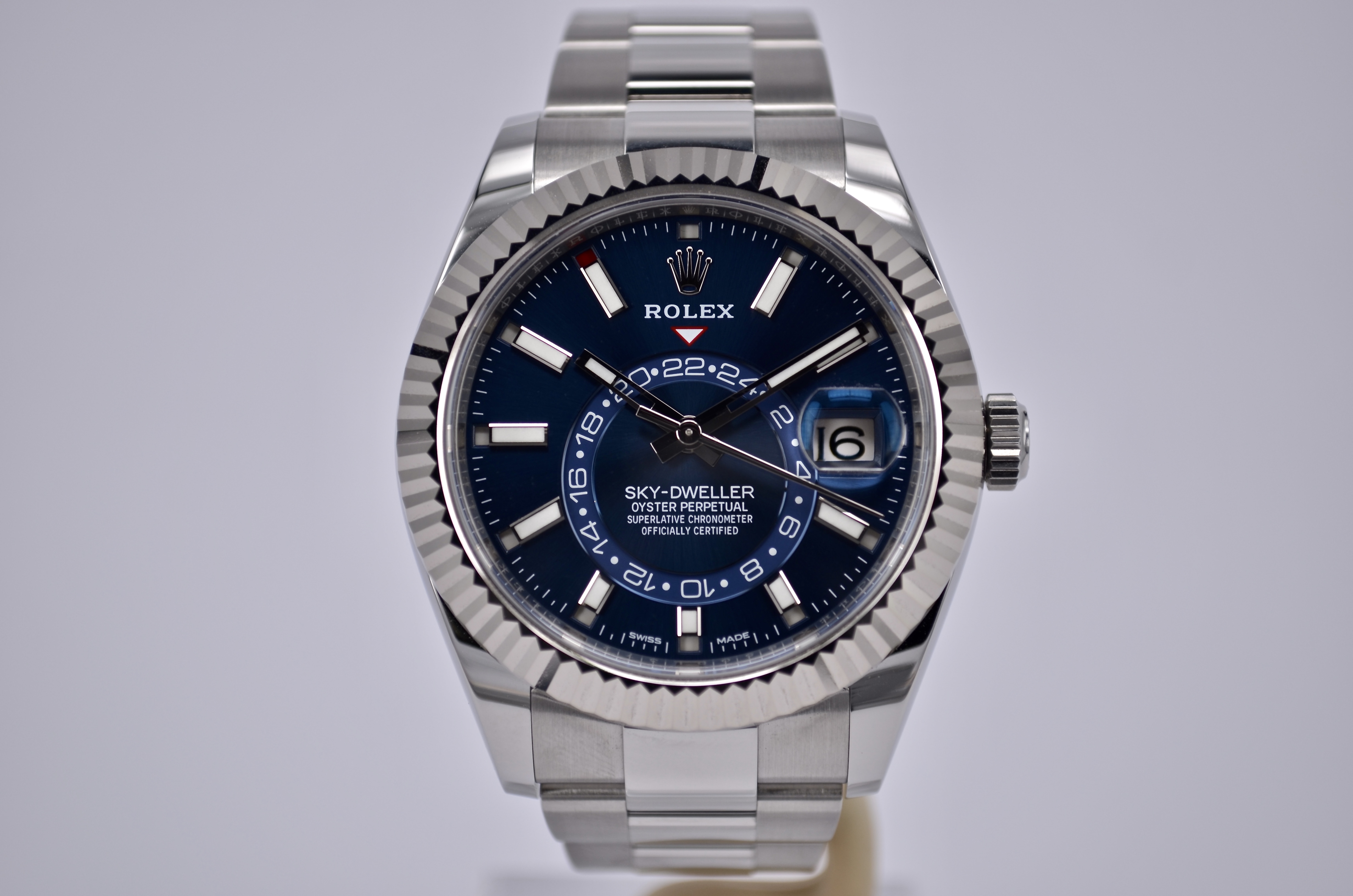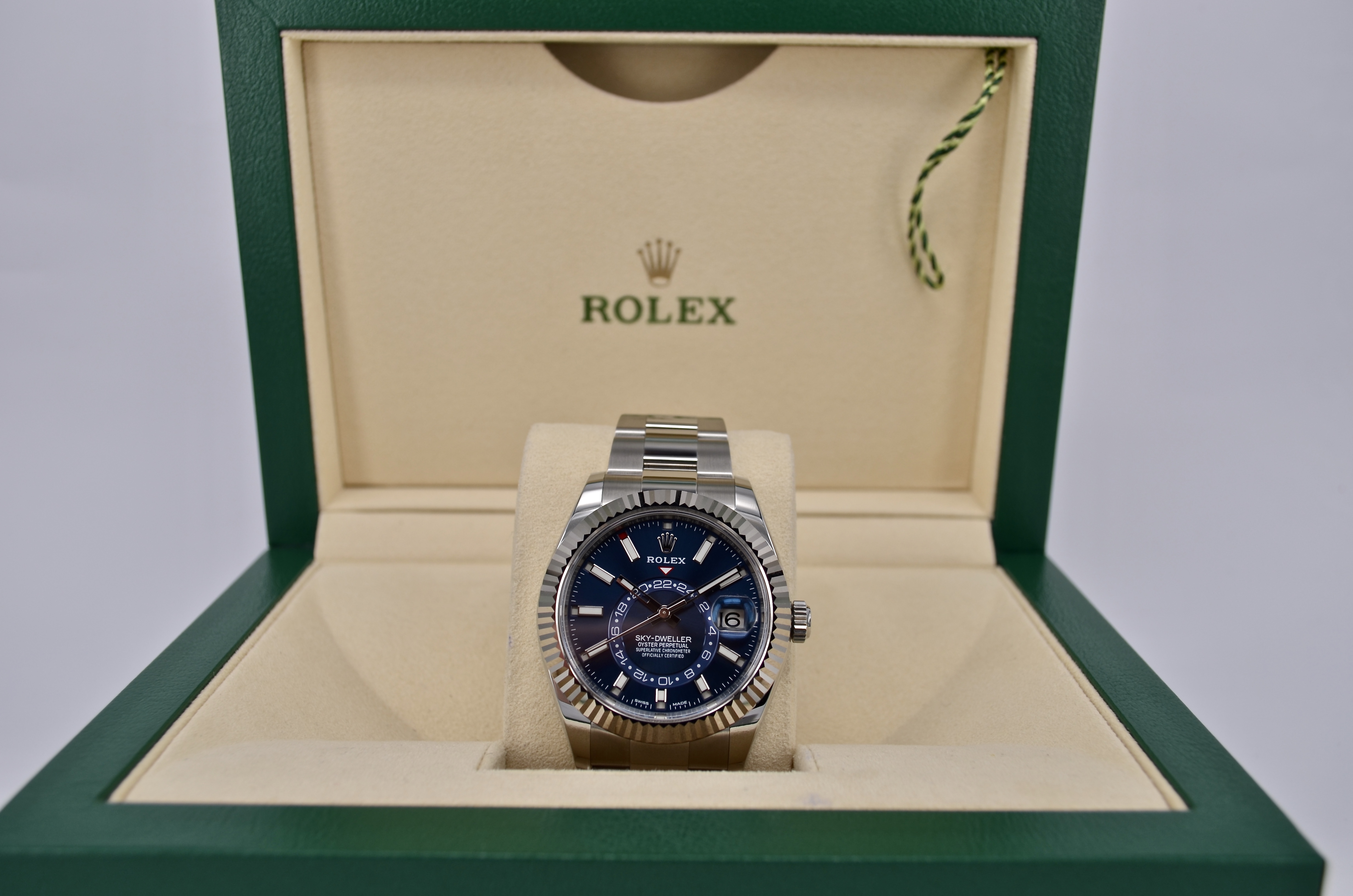 ··Double D @ ΩFI have for sale a completely mint Sky Dweller from 2018. It was bought from the original owner. The watch is completely unworn with everything as well as 4 years Rolex warranty left.