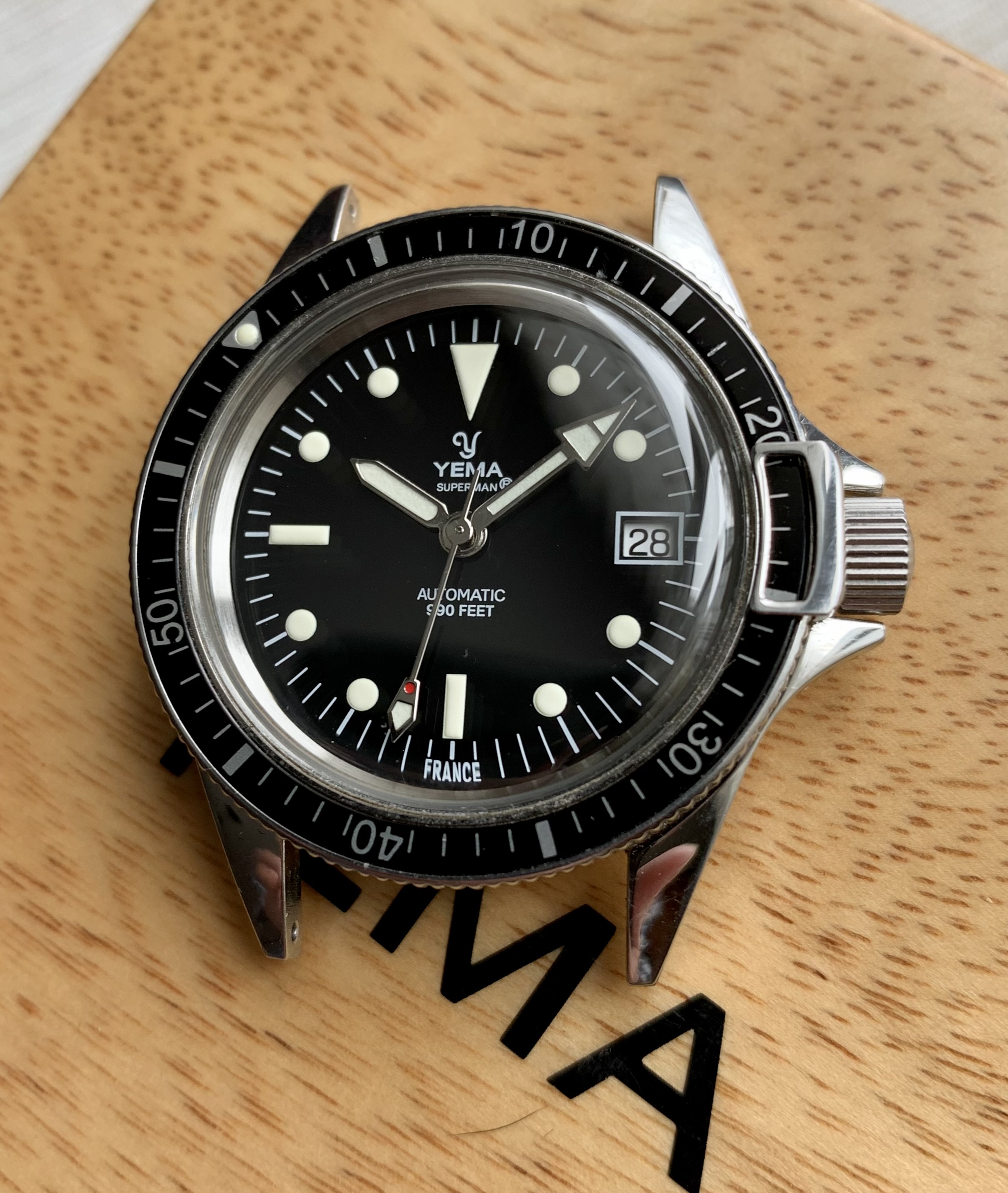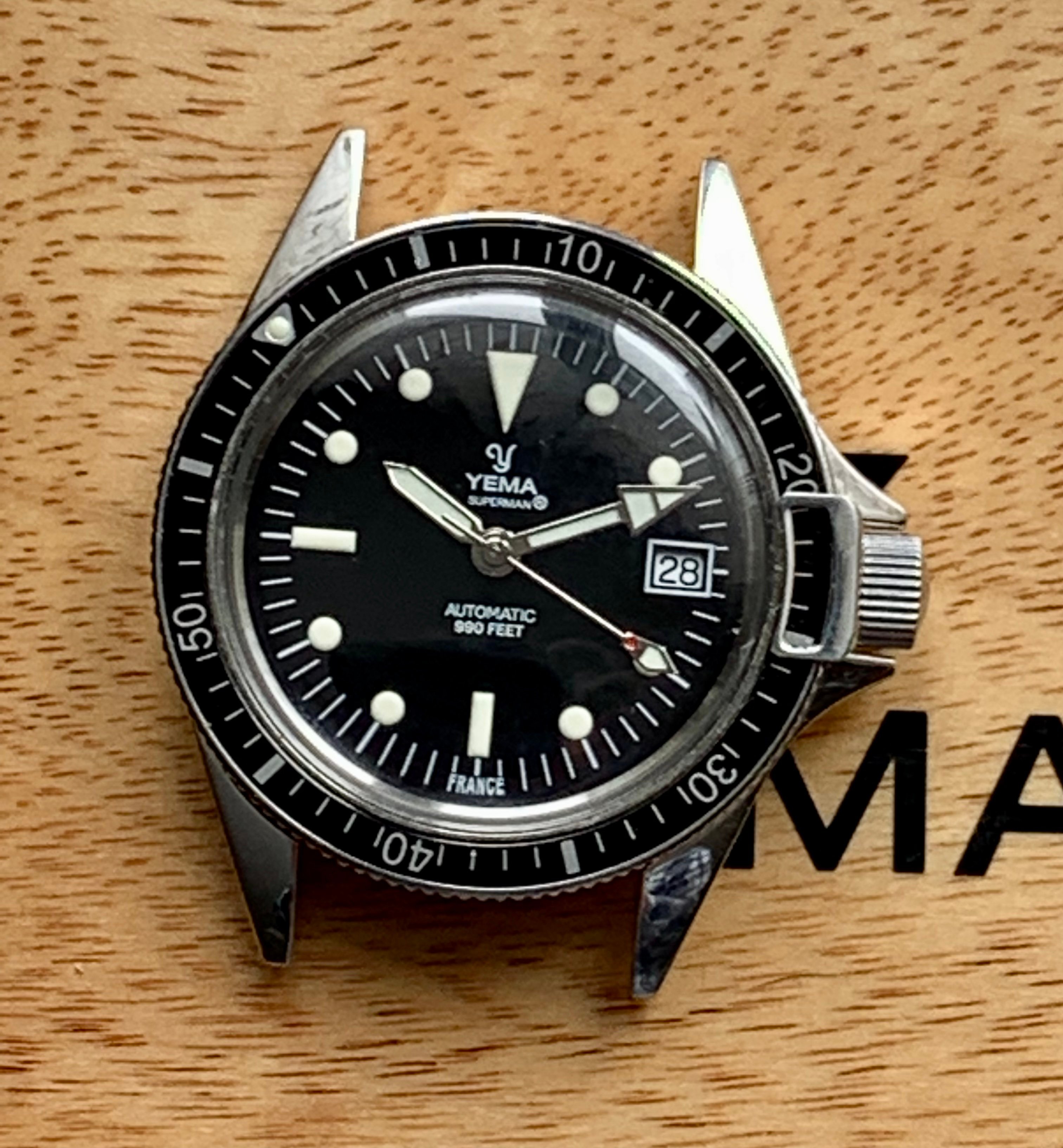 I’m thinning the heard to accommodate a new purchase. First up is my Yema Superman Heritage from 2018. This watch is one the first 500 released and is numbered accordingly (452). This watch was seldom worn (mostly on a NATO). The watch is in excellent overall condition with hairline scratches here and there from normal wear.