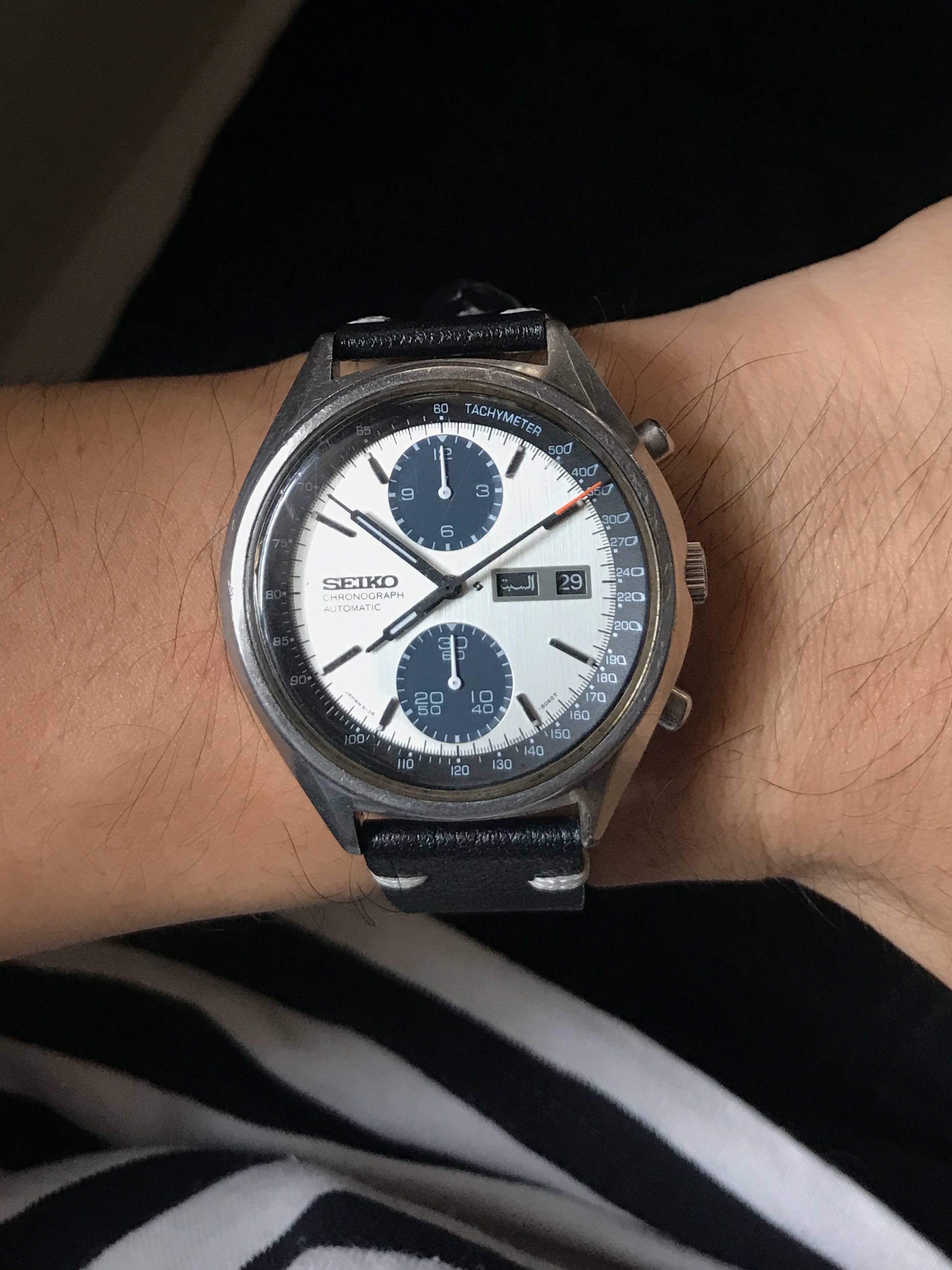 This watch then became the donor for that dial and handset, which was transferred to my fathers 145.022 69 DON -Replacing the superluminova parts installed in an earlier service. Next a service parts Japan Racing dial, handset and bezel were then installed to the donor watch. The result is first this: