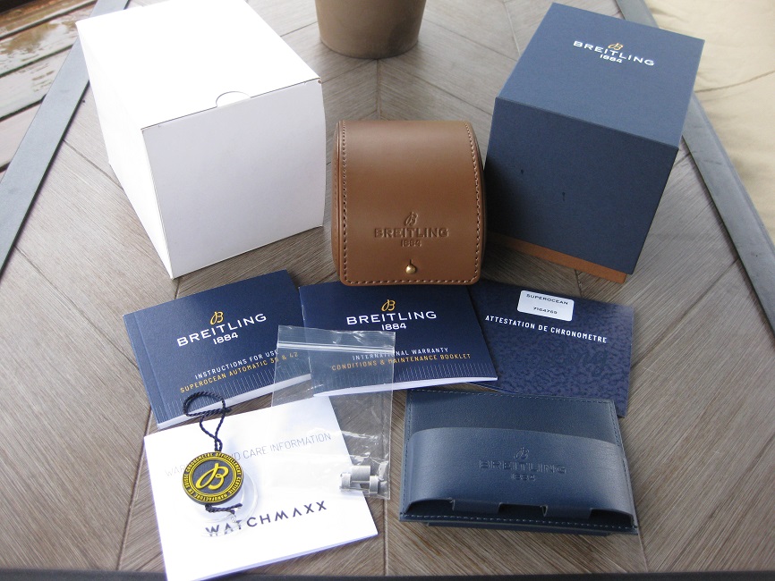 ·For sale is my Superocean 42mm, Watchmaxx warranty until 2022. Watch shows light signs of wear, some swirls on clasp, band, and ss ring around bezel at 1 o'clock. All are very unnoticeable on the wrist. A/R coating on the sapphire is perfect, first two pictures show a haze it's just a reflection. Comes with a full set, Double boxed, Card/booklet holder, Bezel protector, Hangtag, Instruction Booklet, Warranty info booklet, Chronometre Certificate, 1 extra link, and Watchmaxx's warranty info. Retail is 3k.