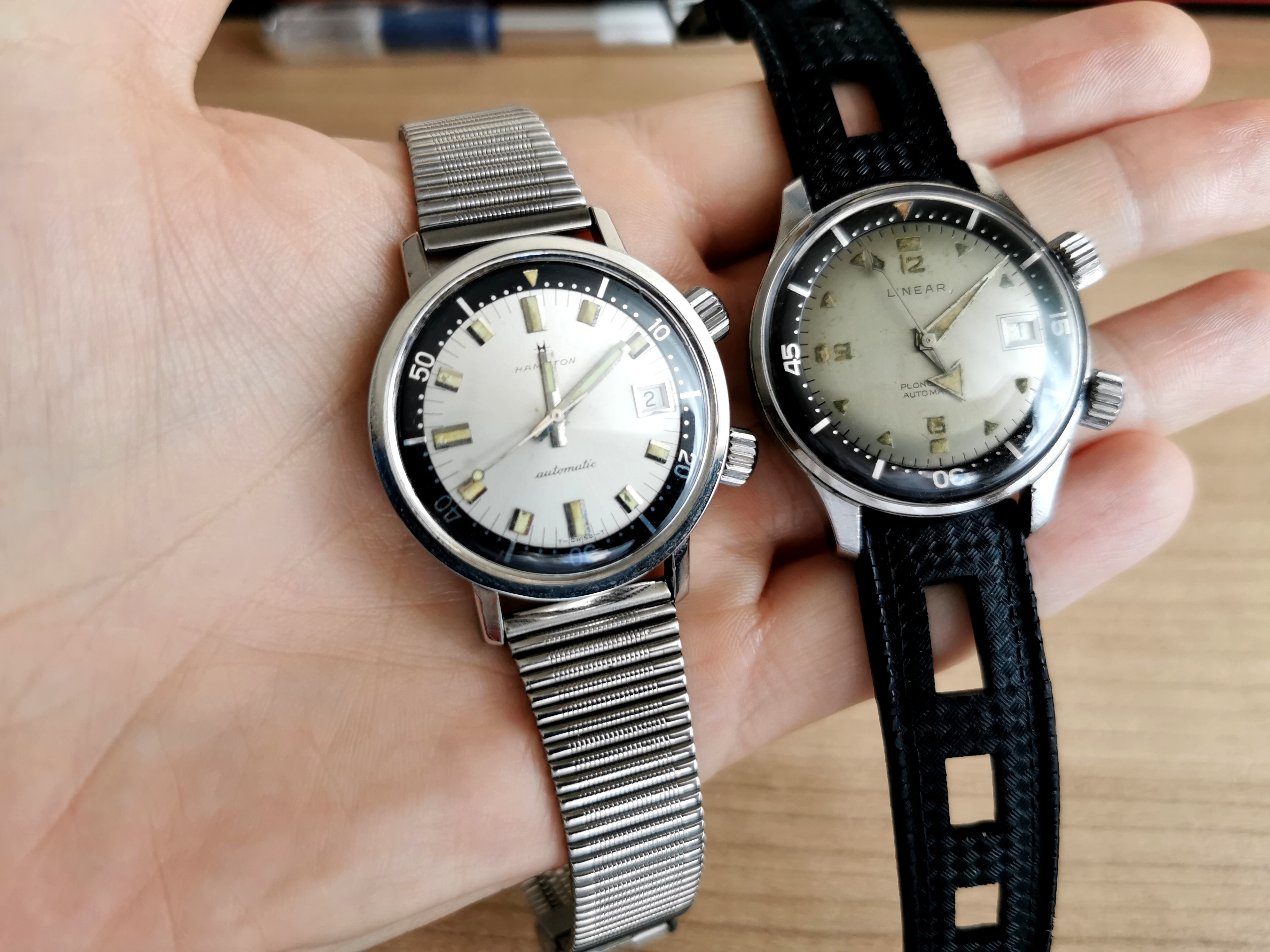 Ooooh they do seem like brothers! Seems even the lume quality has some kind of a family connection 😁 ... Movement unknown until tomorrow or Monday - I don't have the tool to open this one and it wont budge with the "8 ball/kong" method. Imagine that and I got it on an vintage tropic, took it off the moment it got here, will be waiting on an diver chrono to put it on.