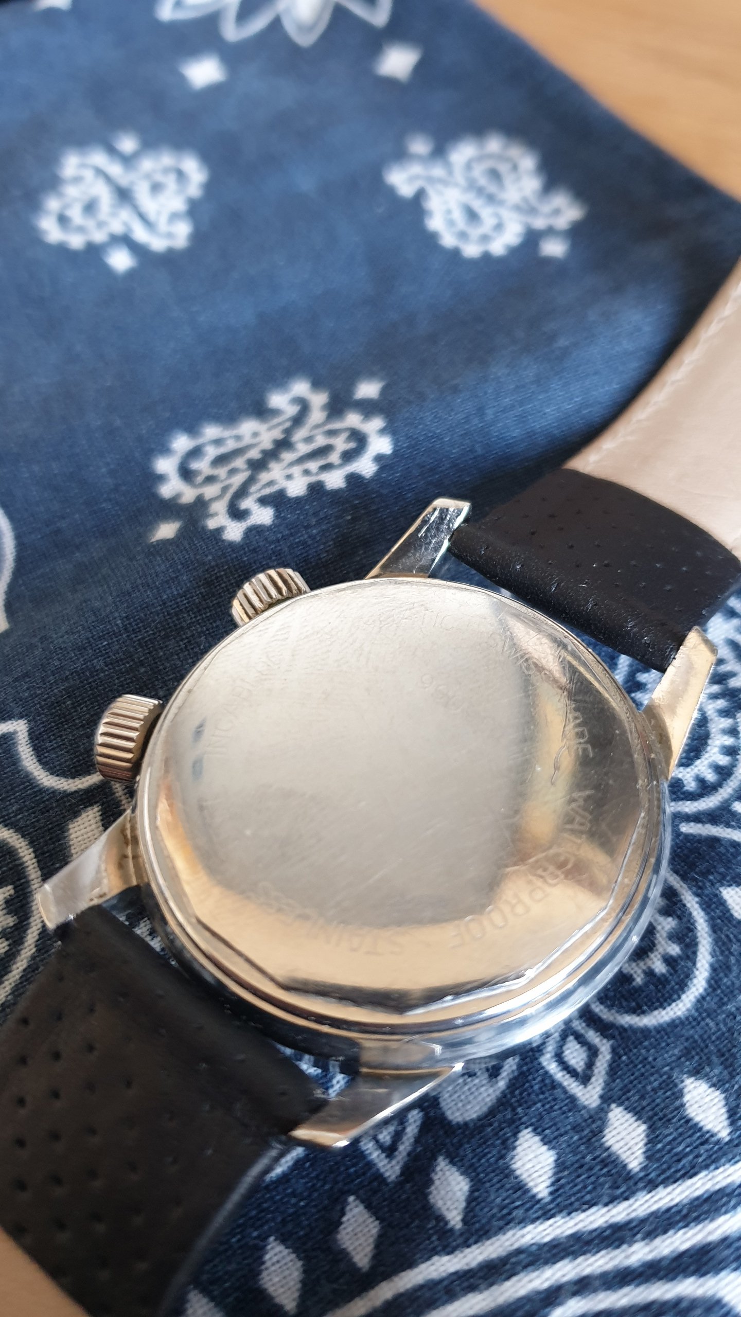 They must have come from the same shop, there's just too many similarities. If there's a difference, it's most likely in the movement, since that would have merited a different price-point and possible reflected a variance in distribution (given the odd tax situation with Swiss watches in the US during this period), so very curious to hear what's on the inside. It could well be an A. Schild 1903 as well, though. I'm sure the caseback is the same, since it's the same Breguet case. Do you have a year? Mine is 1966.