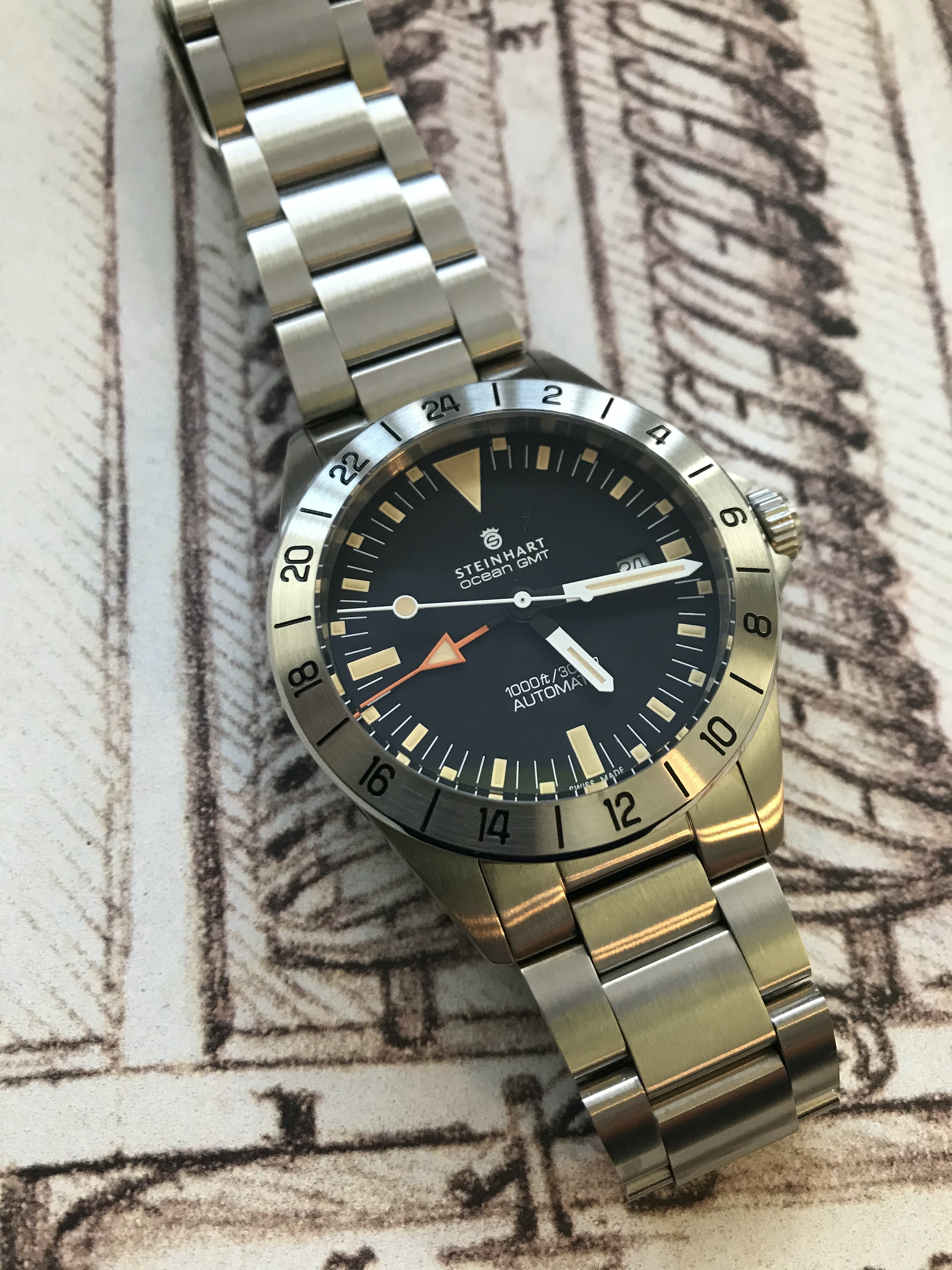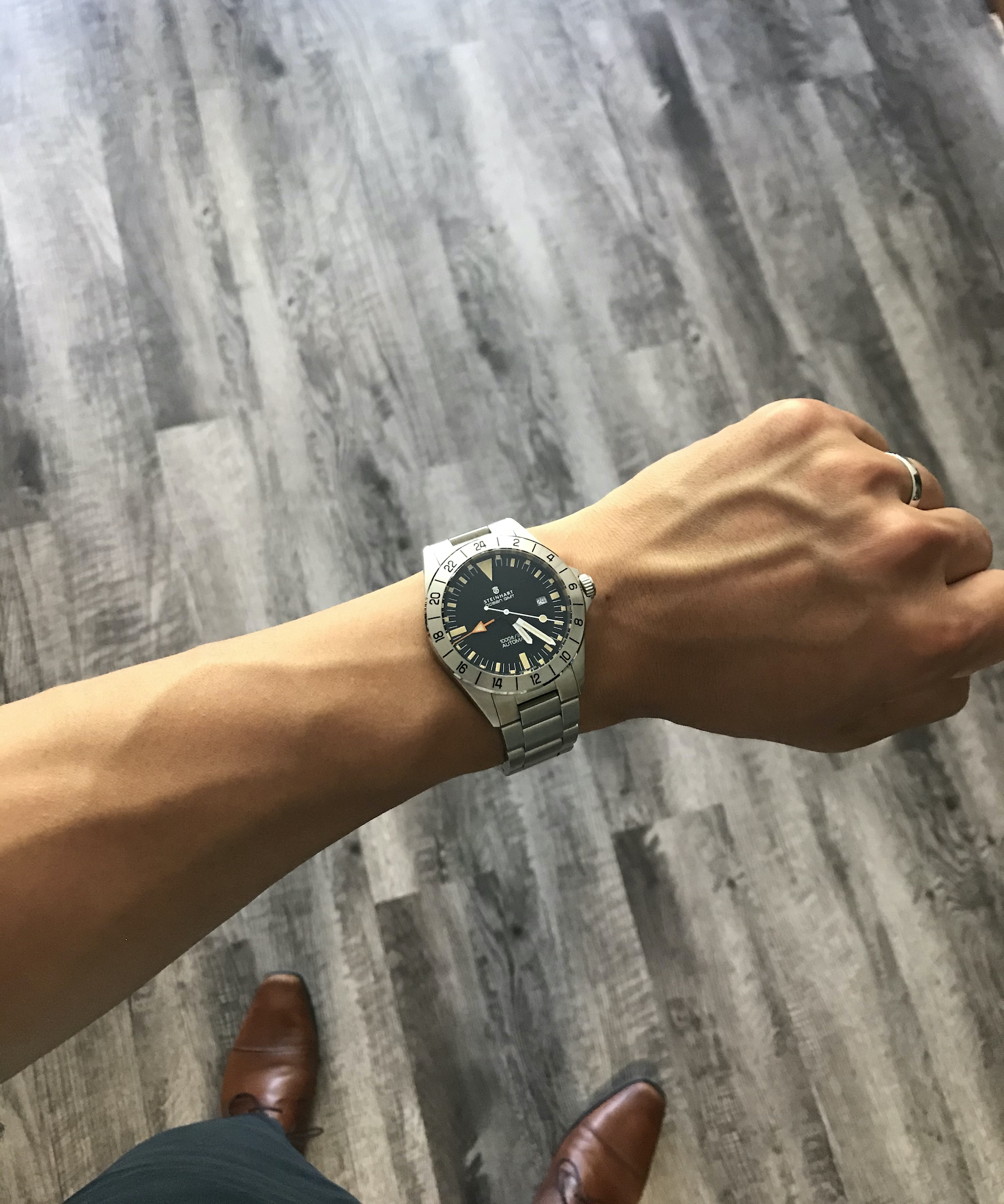 ·In general, I am not really a fan of either Steinhart or homage watches. When I saw the Vintage Ocean GMT in a post, however, I was instantly smitten. I received mine on Monday and was pleasantly surprised with how nice it looks and feels in person (especially considering I paid only $480 for it). It's averaging +4 seconds per day, which is definitely a lot better than I had been expecting. Although I won't be adding any more Steinharts or homage watches to my collection, I really, really like this one.