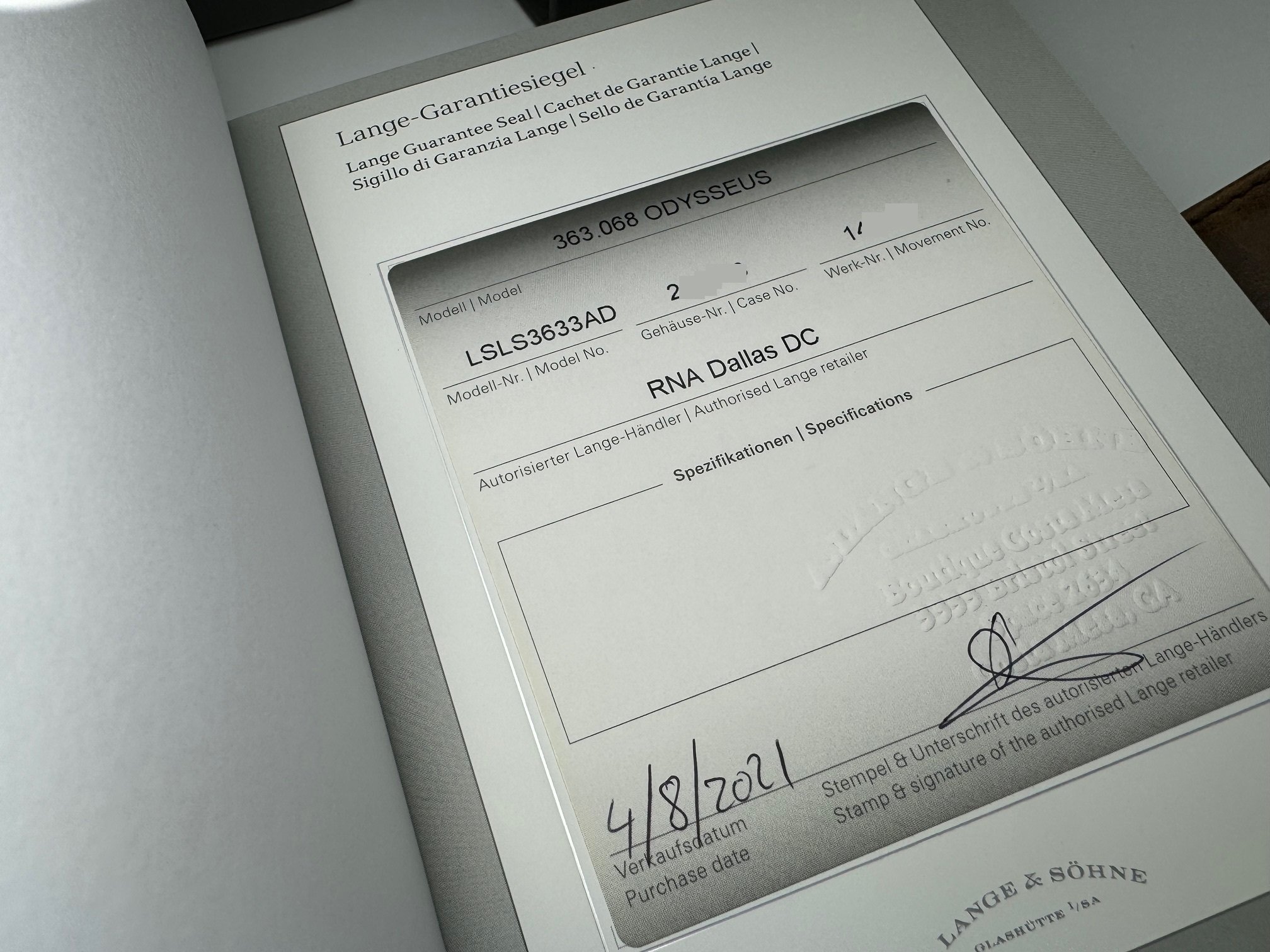 ·For sale is an 18k white gold A. Lange & Söhne Odysseus, reference 363.068.