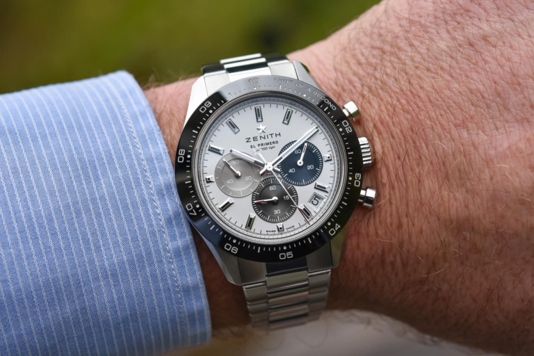 By putting an outer bezel on the Chronomaster Sport, Zenith is able to use the correctly proportioned 38mm Chronomaster dial without sacrificing the watch size (the Sport is 41mm). And at the same time - in addition to shaving off a mm in actual size - the addition of an outer bezel will make the watch wear more true to size than the 42mm. Plus, I love the black outer bezels.