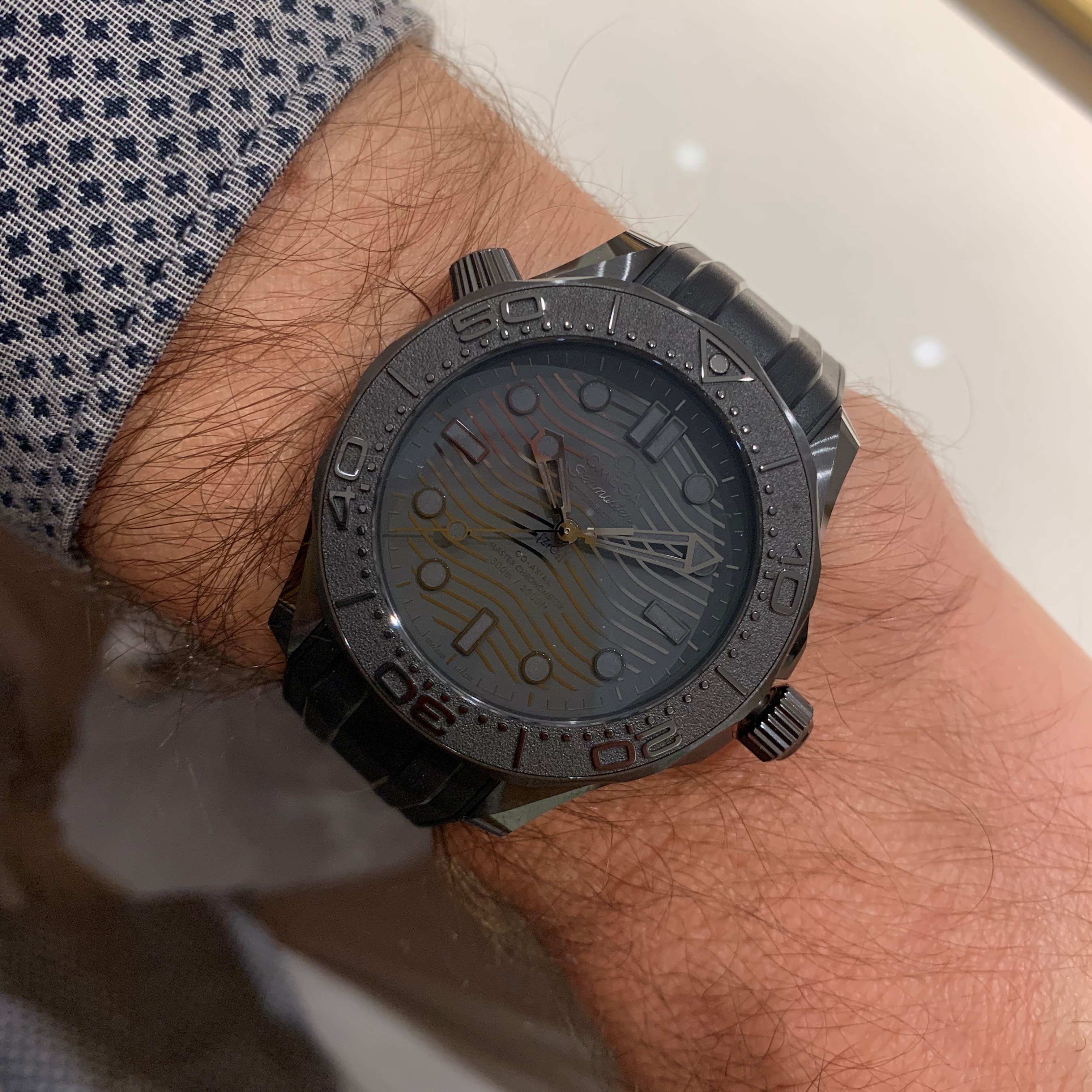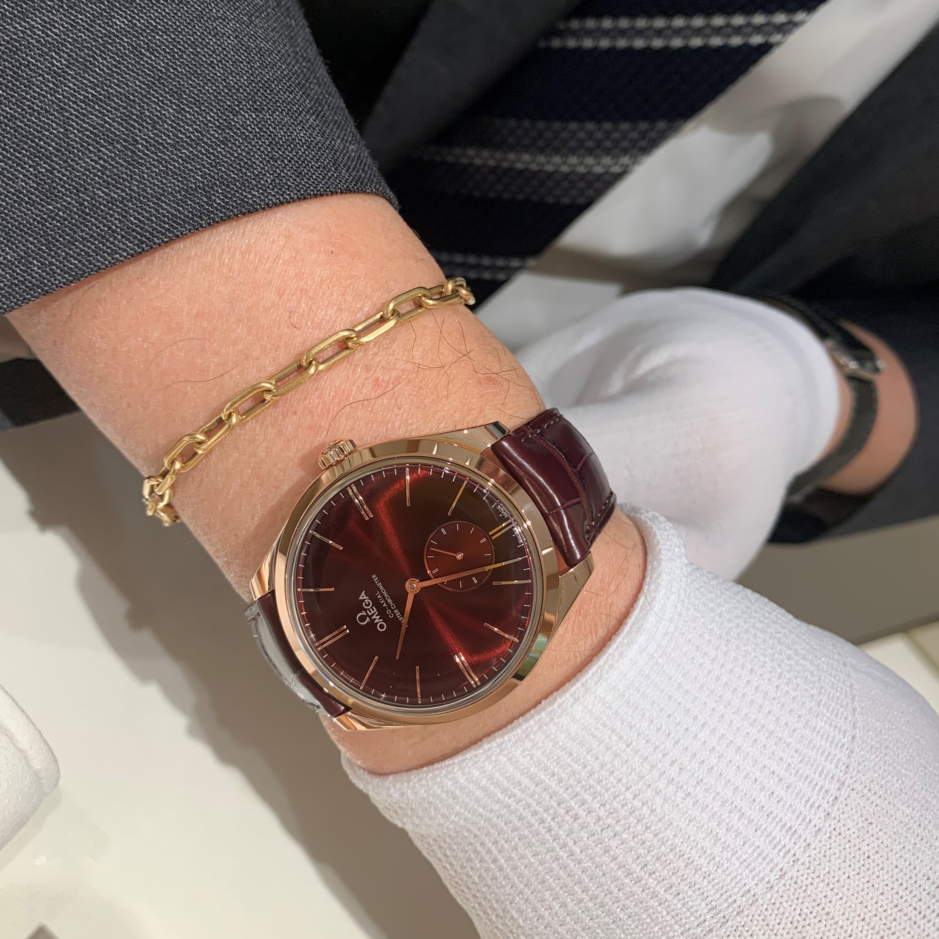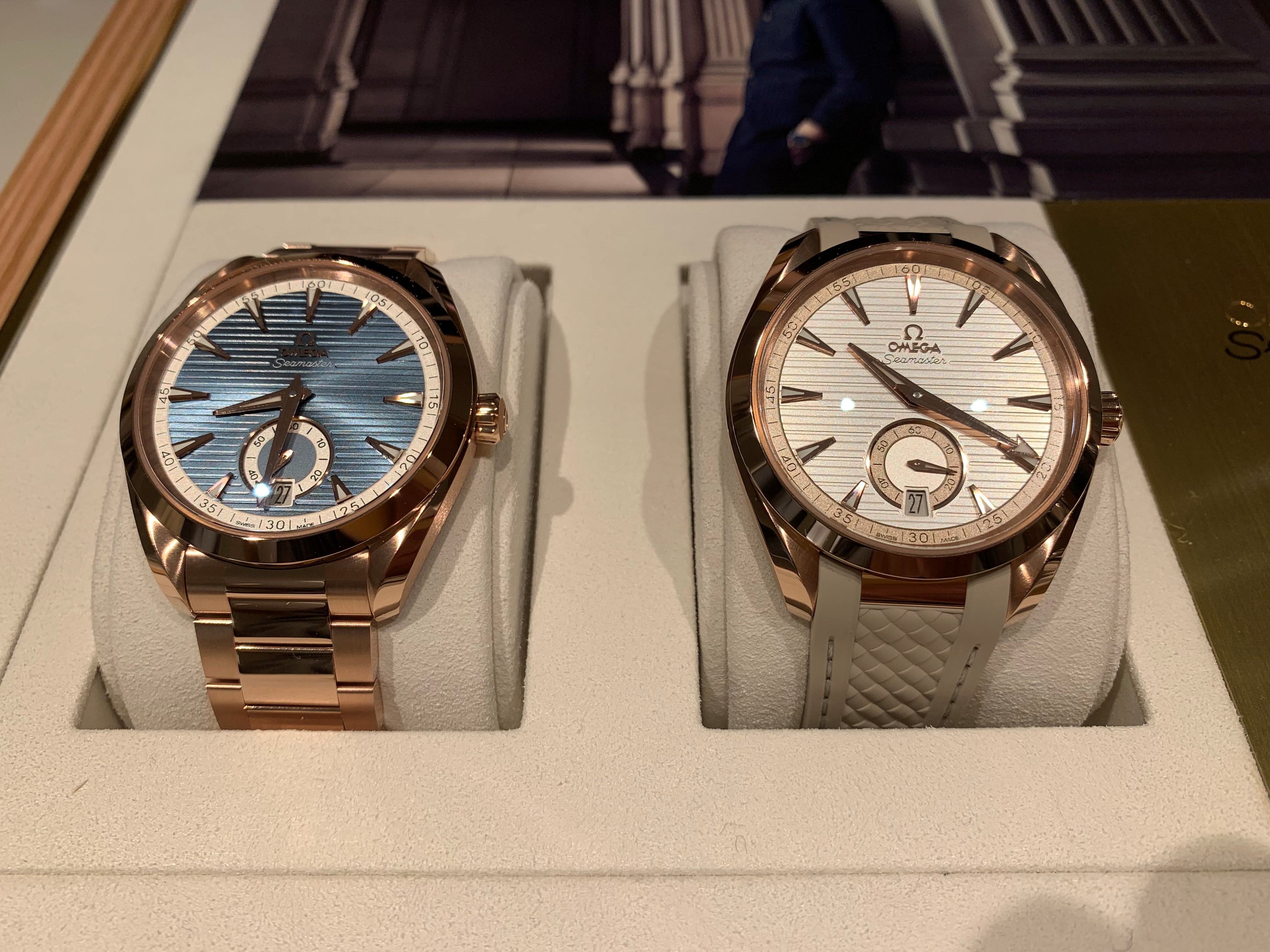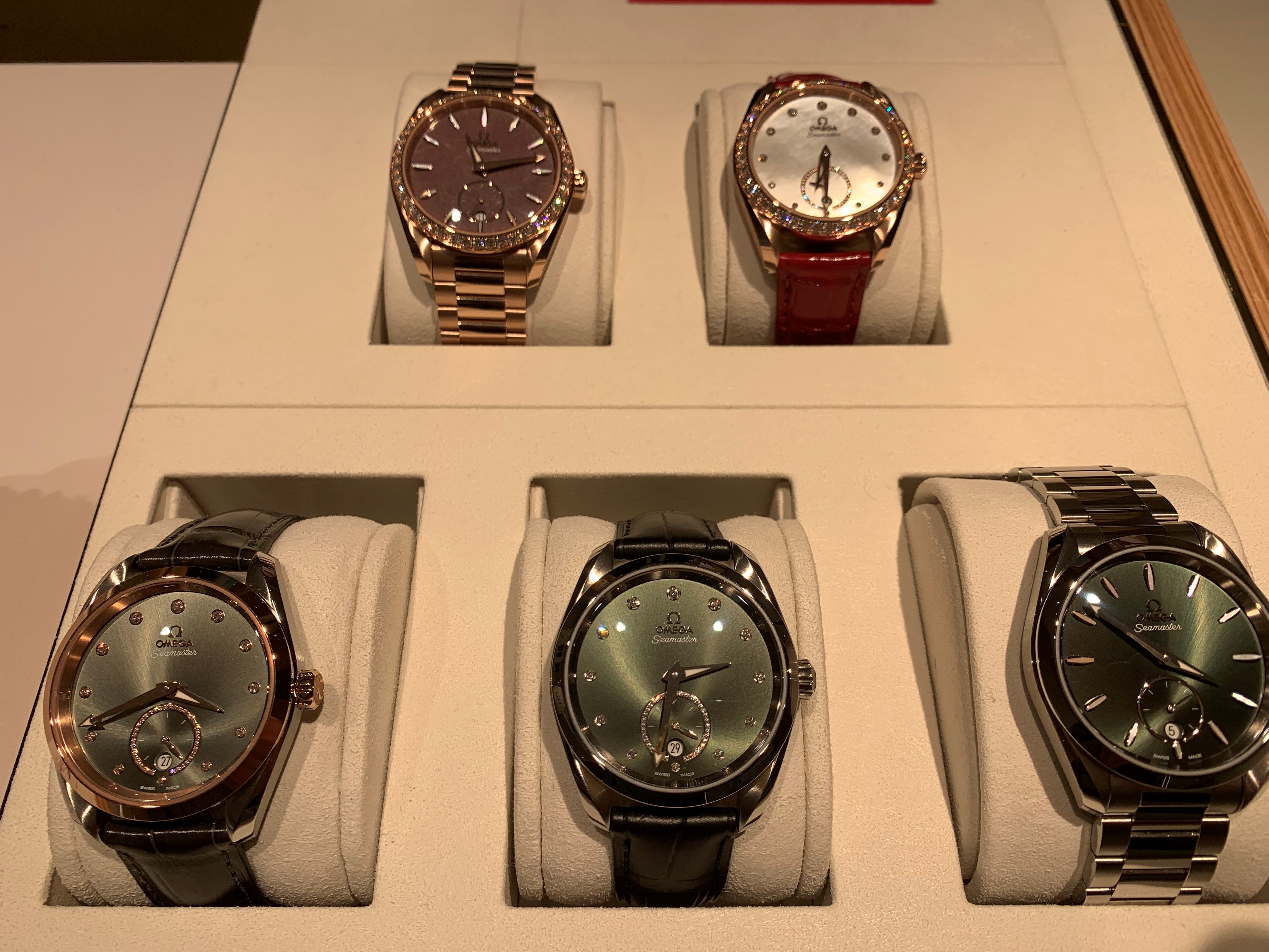 As per usual, I grabbed the opportunity when it presented itself to me to go and see the new Omega novelties in the flesh. And here are some pictures with a few impressions. The focus is not always a hit in some shots .. sorry! It is quite a challenge taking pictures on a phone with a gloved hand. That said, the biggest drawback as you most likely know, is the lighting and shadows in boutiques, especially those without windows to let in the natural light. It is the worst for looking at watches, and even worse for photography. My local boutique has floor to ceiling windows, so great lighting under normal circumstances on the main floor, however whenever something that requires special attention happens (like showing off all the new watches), its usually down downstairs in the 'bar/chill zone'. I had an hour, and could have taken more pics, but as usual staring usually takes preference.