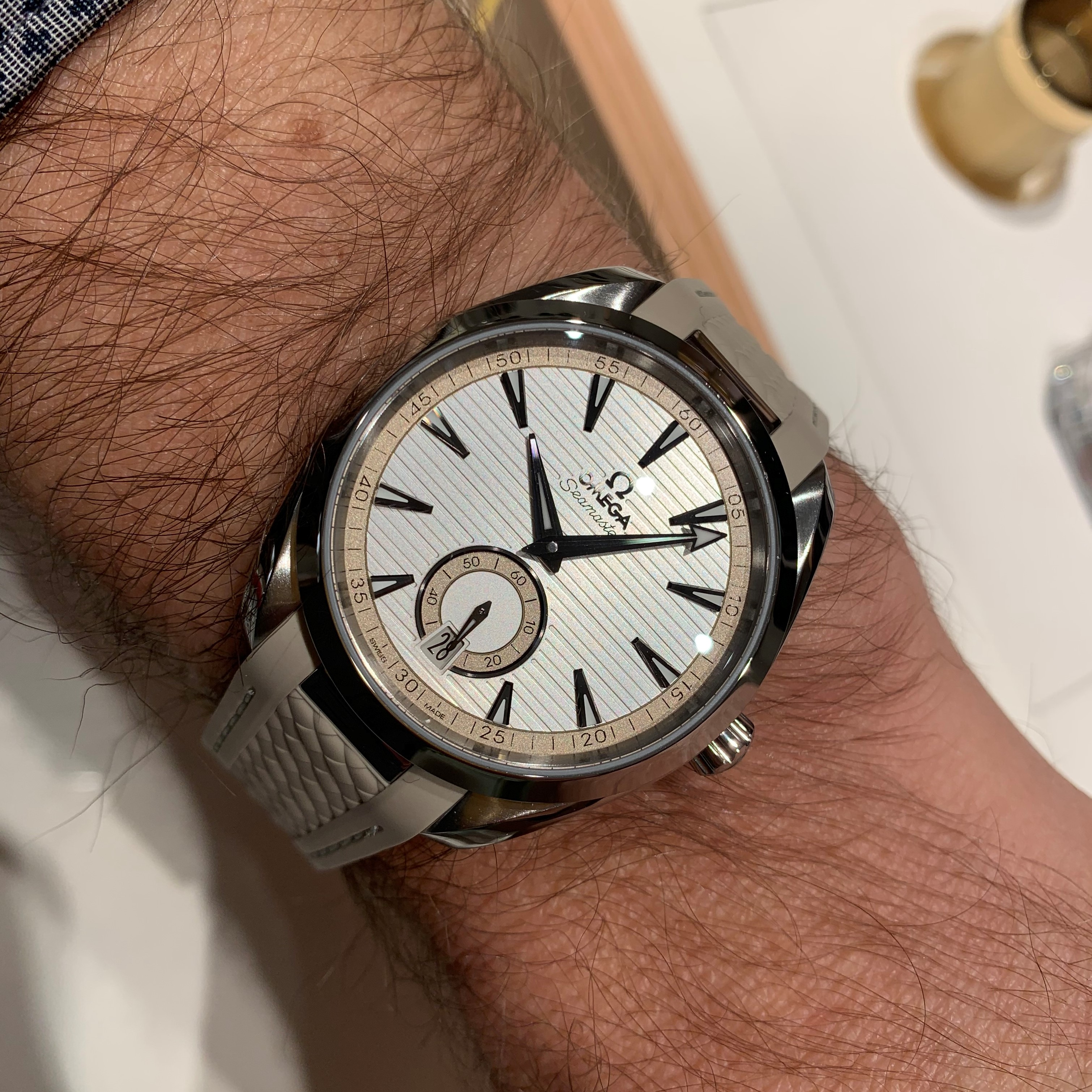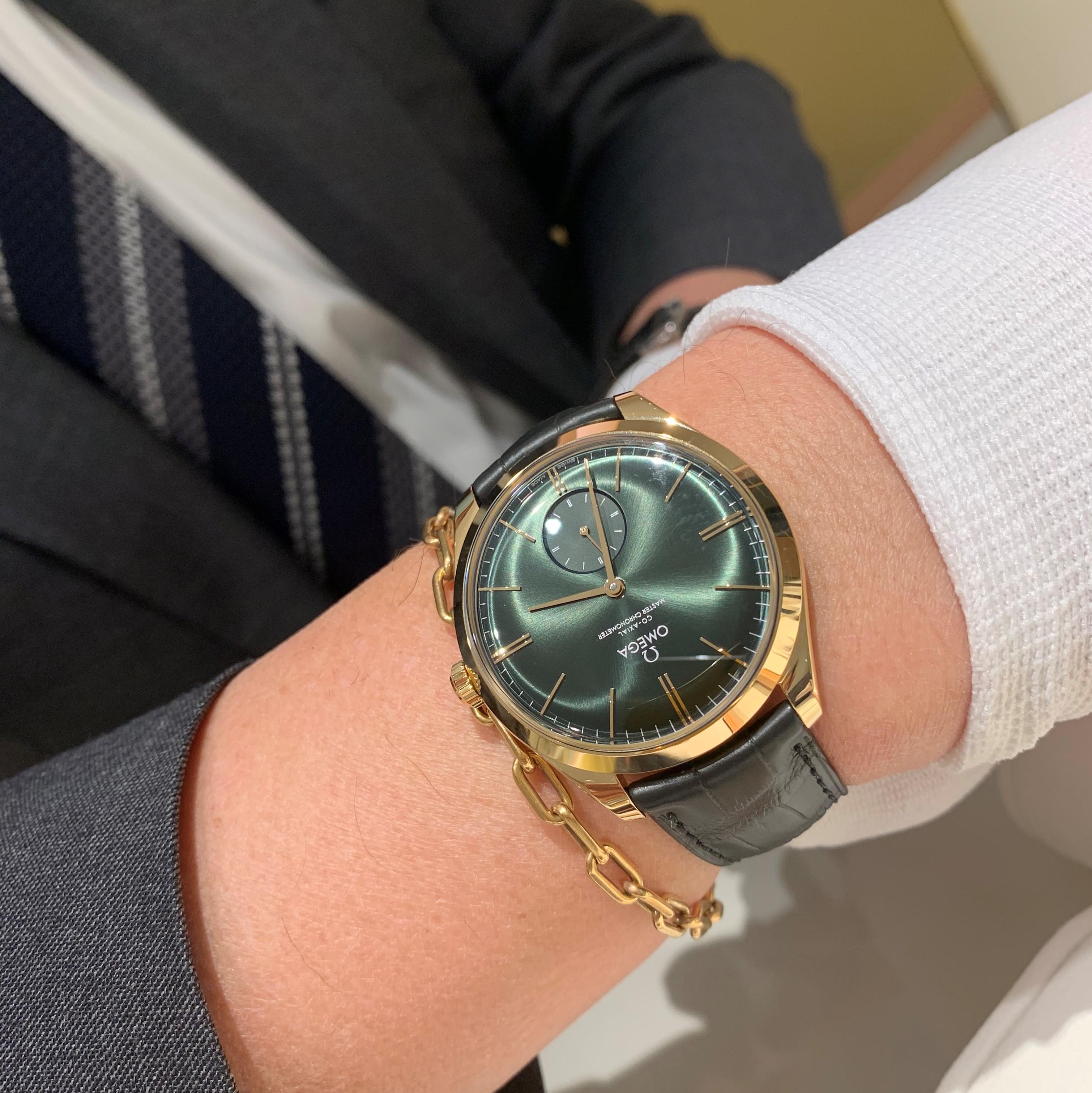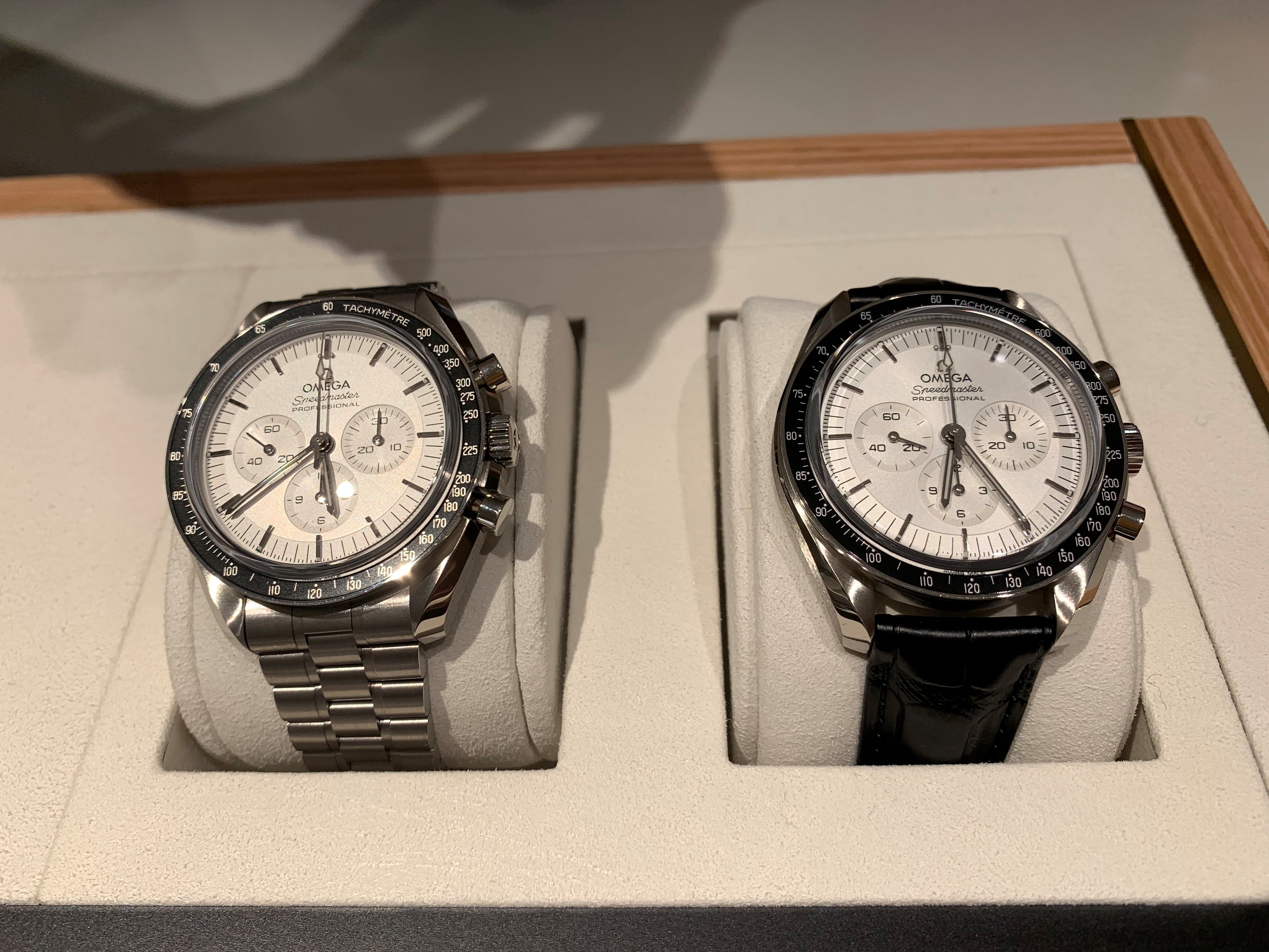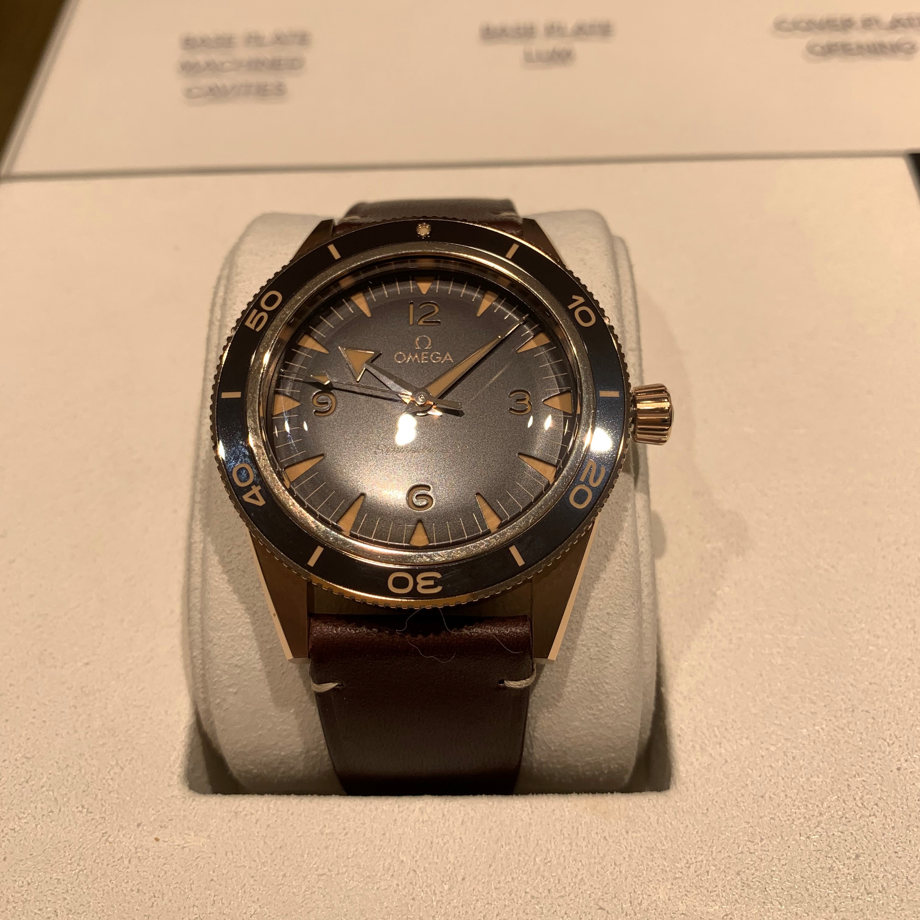 As per usual, I grabbed the opportunity when it presented itself to me to go and see the new Omega novelties in the flesh. And here are some pictures with a few impressions. The focus is not always a hit in some shots .. sorry! It is quite a challenge taking pictures on a phone with a gloved hand. That said, the biggest drawback as you most likely know, is the lighting and shadows in boutiques, especially those without windows to let in the natural light. It is the worst for looking at watches, and even worse for photography. My local boutique has floor to ceiling windows, so great lighting under normal circumstances on the main floor, however whenever something that requires special attention happens (like showing off all the new watches), its usually down downstairs in the 'bar/chill zone'. I had an hour, and could have taken more pics, but as usual staring usually takes preference.