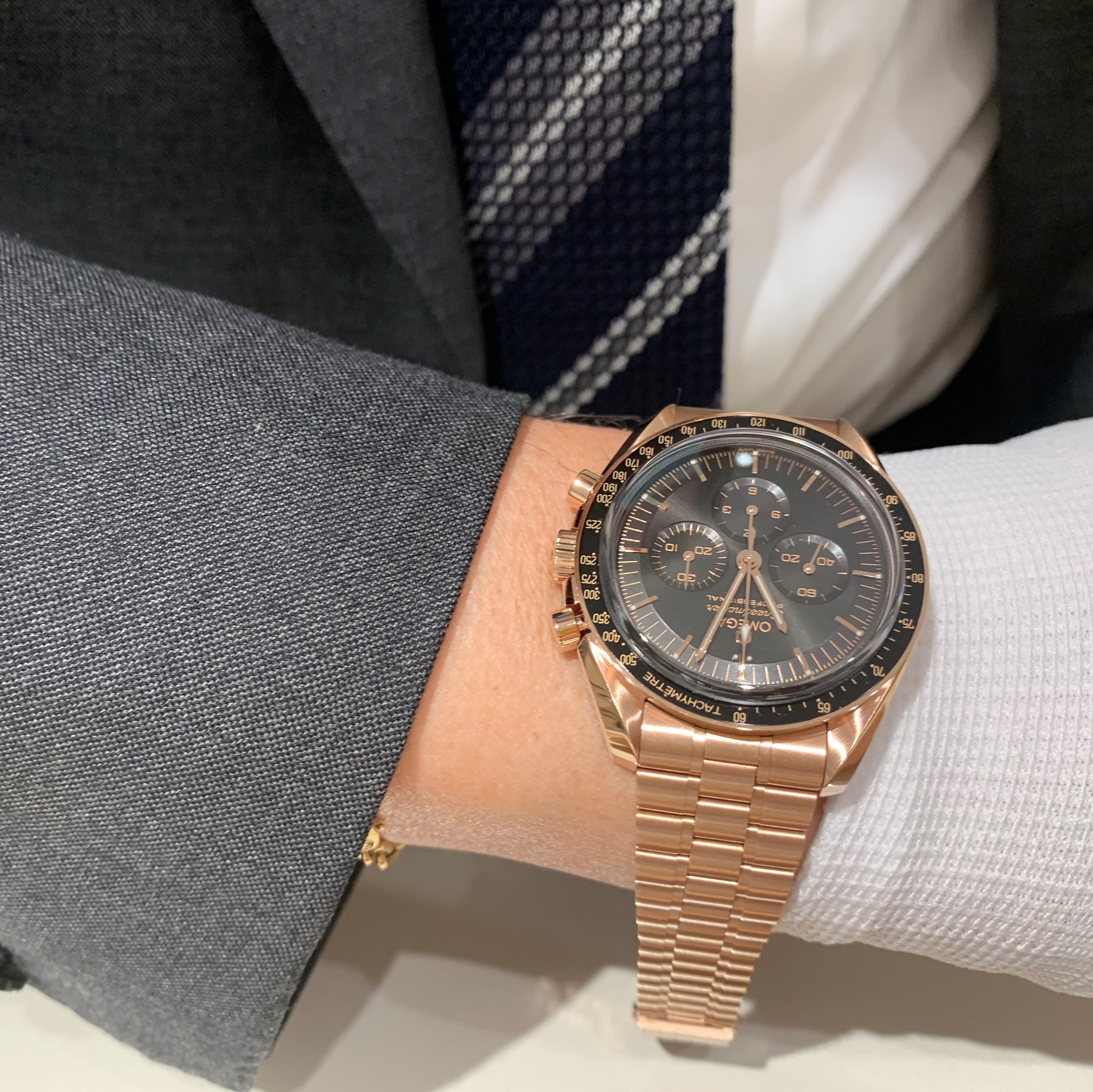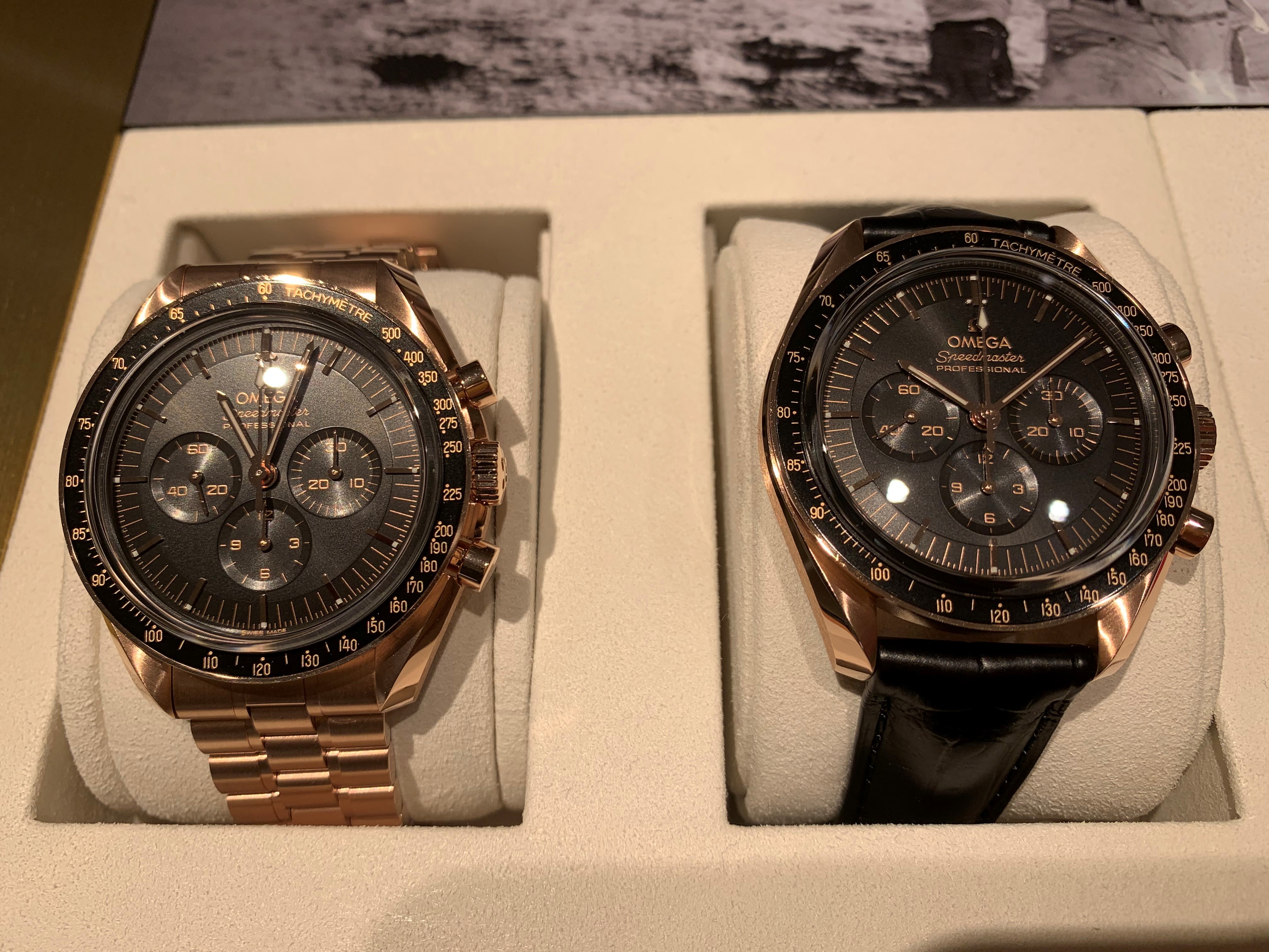 Another impression I got (this is the second time I see the new Speedies) is : the 'Omega Speedmaster Professional' font jumps out to my eye...it feels more prominent than older watches...and the corrected 1/3 second division markings...both make a strange impression to my pedant eyes. I still haven't decided if it is good or bad...however I do really like the blacker step dials and the new cases and bracelets...
