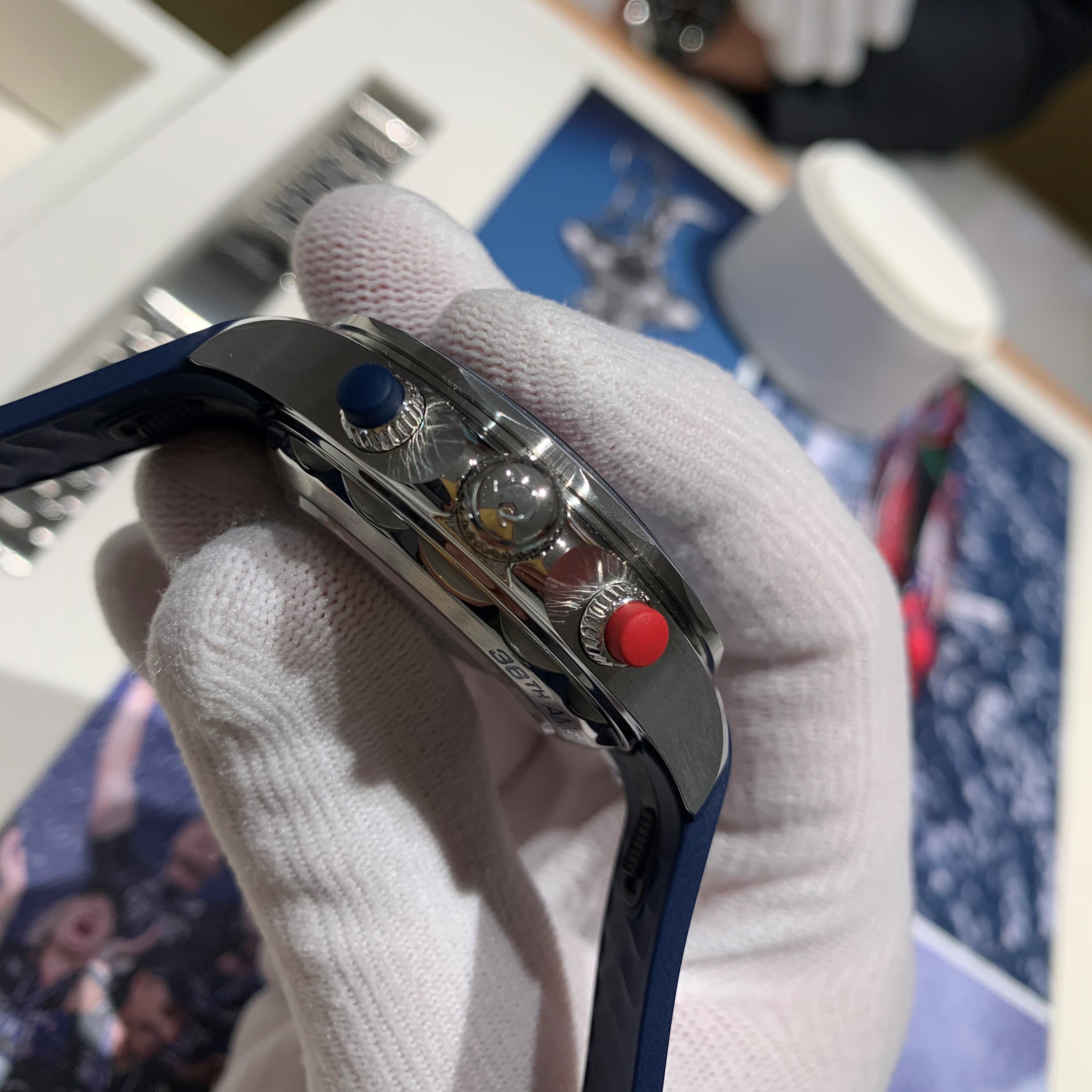 This is a neat beast of a tool watch packed with gadgets. I havent yet figured out what the disc under the 3 o'clock register does yet...it was one of the first things I noticed. Next cool gadget was the chrono lock (on the left...beneath the HeV, that I didn't think to photograph 🤦)...busy sailors can start their chrono and lock it so that working on deck will not mess with it...