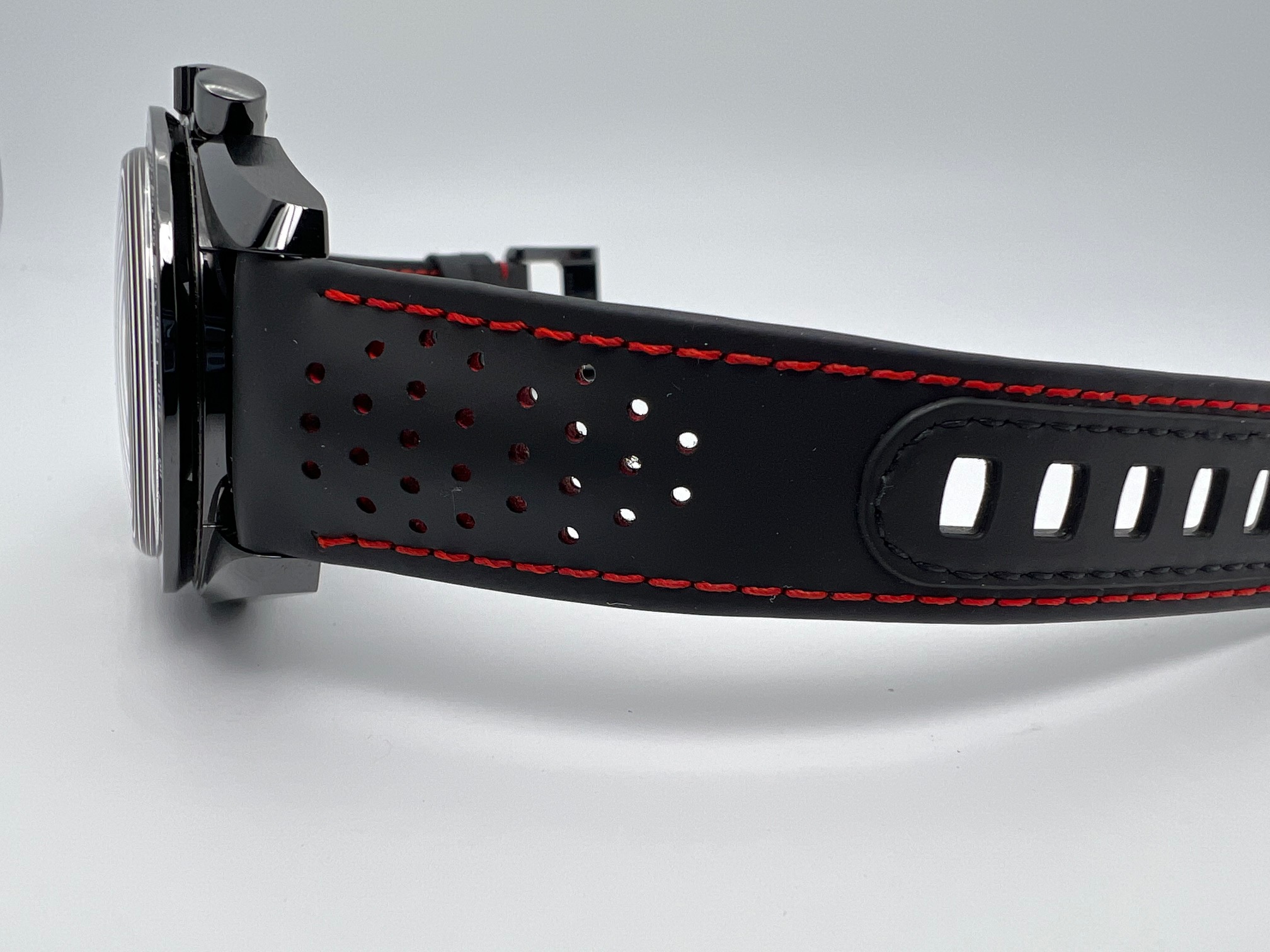 This edition features a black ceramic case with an ALINGHI logo in red varnish on the stop/start pusher. The tachymeter scale is in Super-LumiNova, while the perforated black rubber strap includes a red rubber interior. The partially skeletonized dial showcases the Calibre 1865, which has been laser-ablated with a honeycomb effect on the mainplate and barrel bridge, as well as a black carbon pattern on all other bridges. These effects are inspired by the hull of the ALINGHI TF35 catamaran.