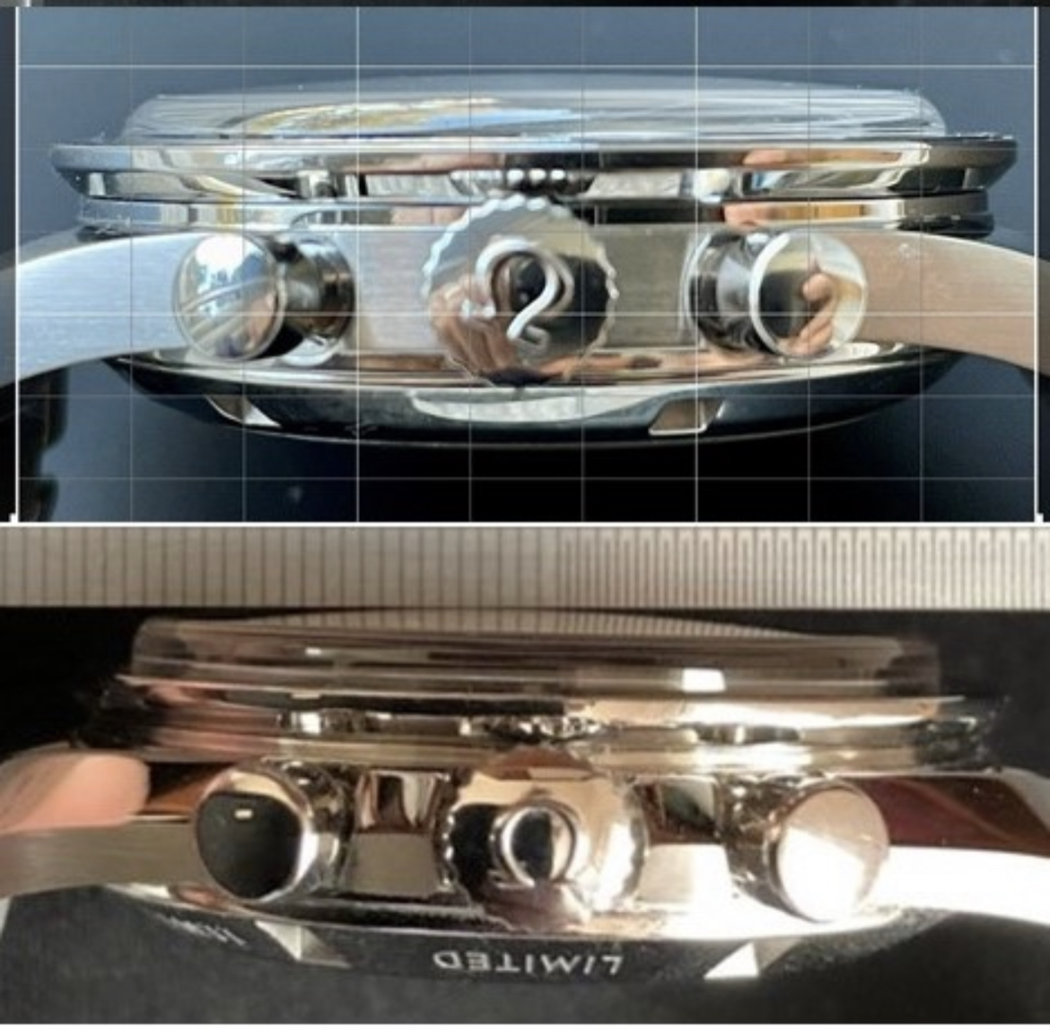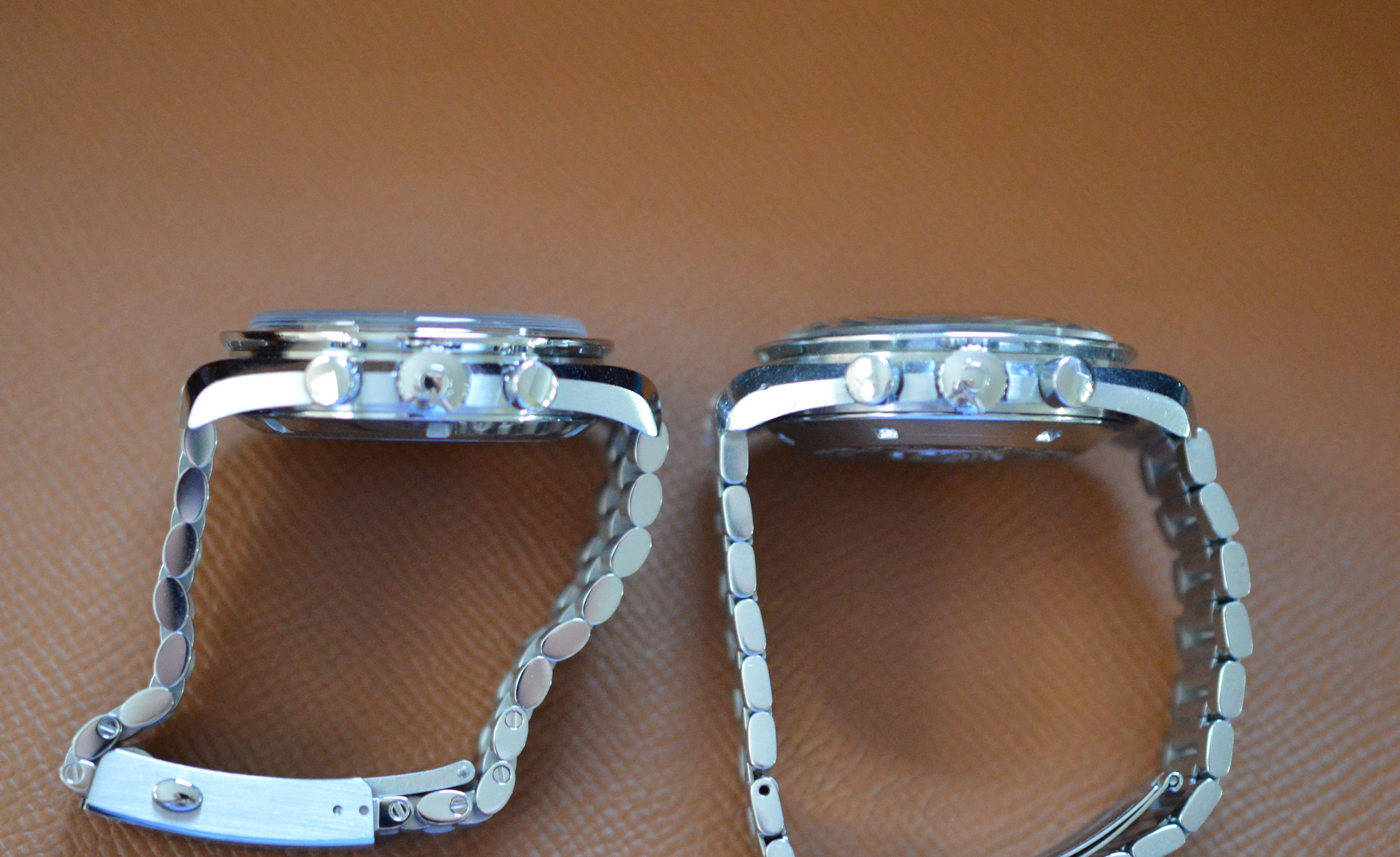 This improvement and the shape of the 105.012-style case band make it seem as though the crown is larger, but that doesn't seem to actually be the case.