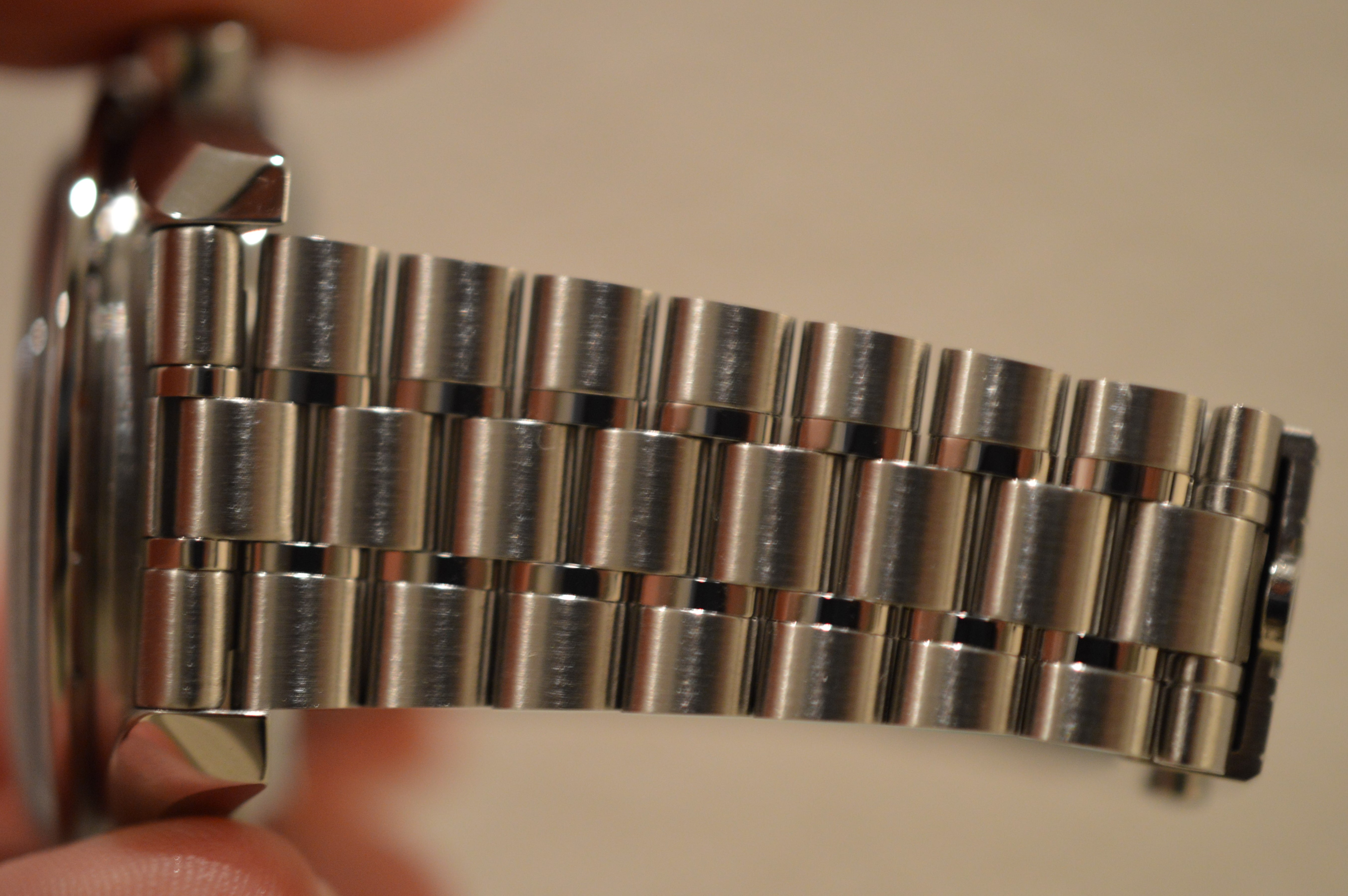 - The polished links are slightly smaller than the brushed links, helping to keep them free of scratches.
