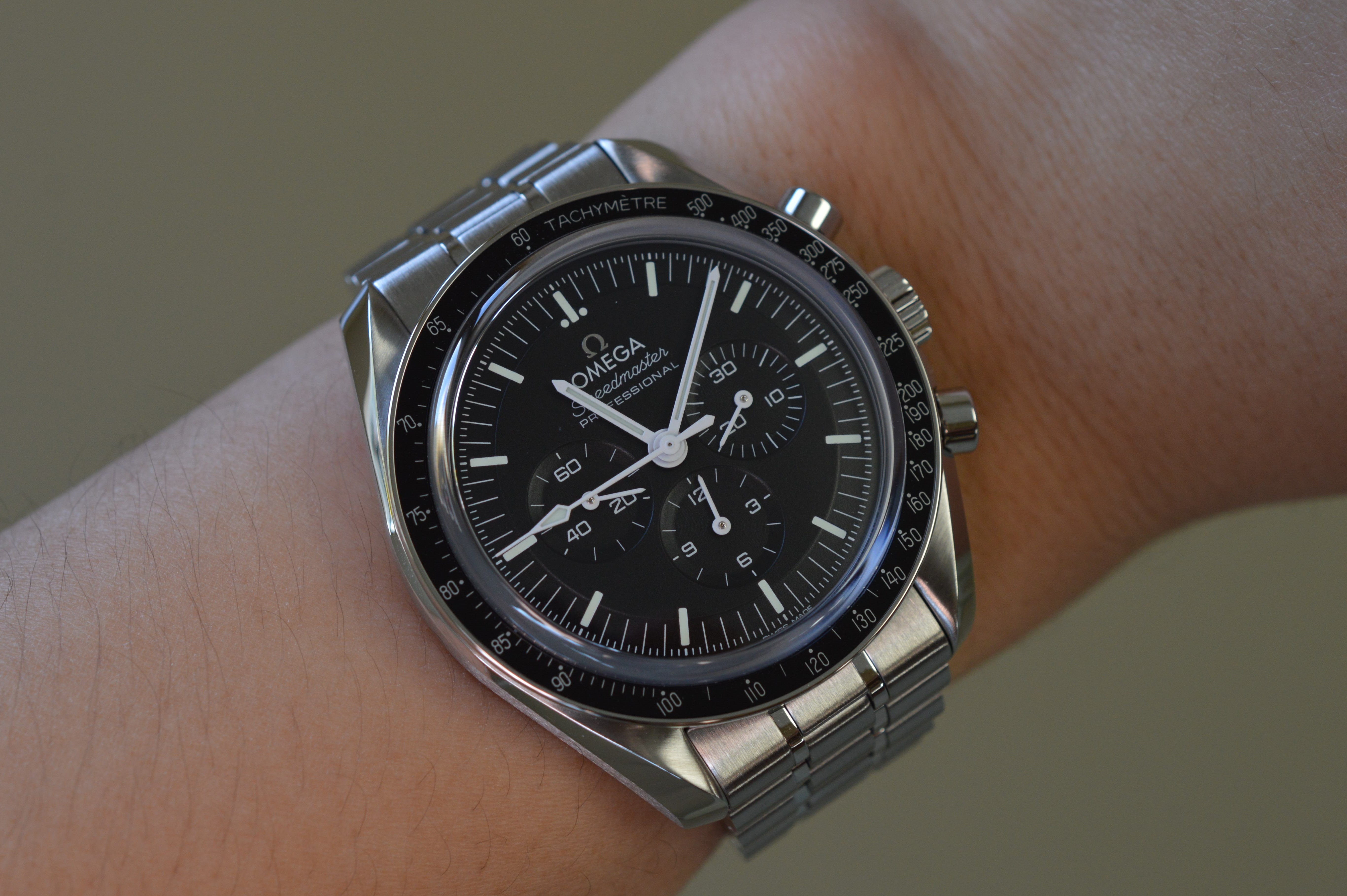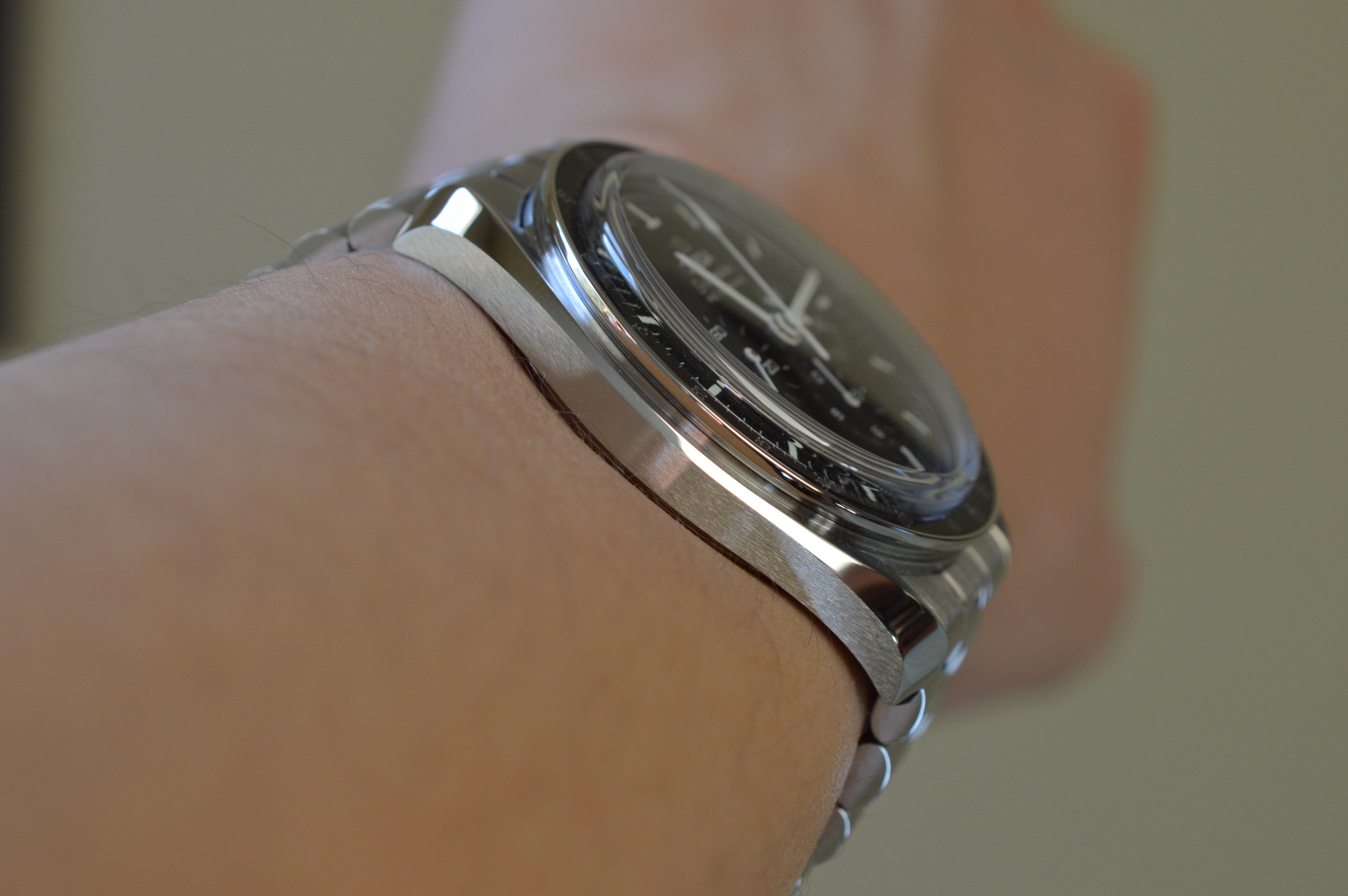 The lug to lug was also reduced to 47mm from 48mm. With the fully articulating end links, it feels like the watch lost about 6-7mm in length. As someone with a small, 6.25" (~16cm) wrist, this new Speedmaster feels right at home on my wrist.