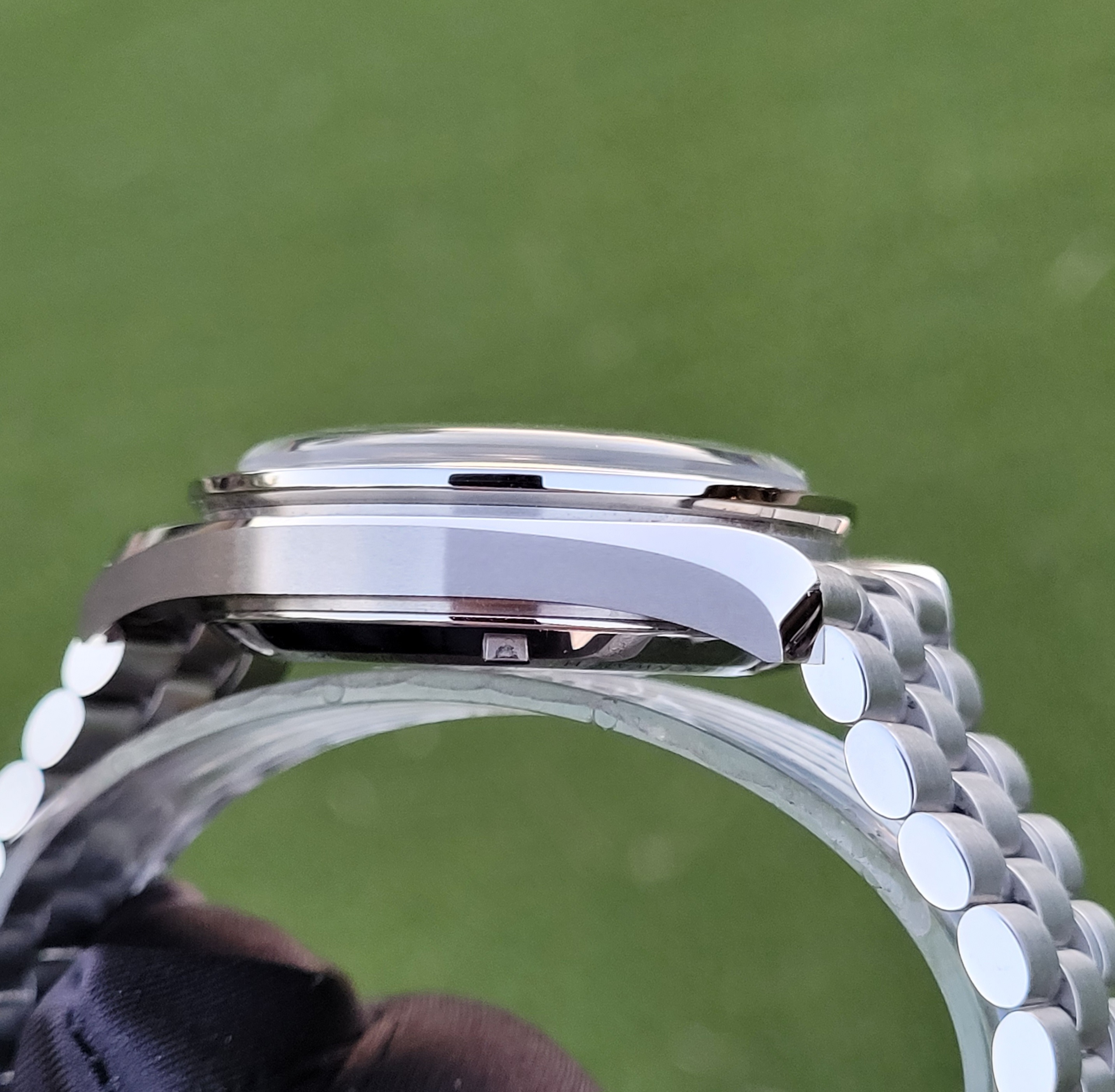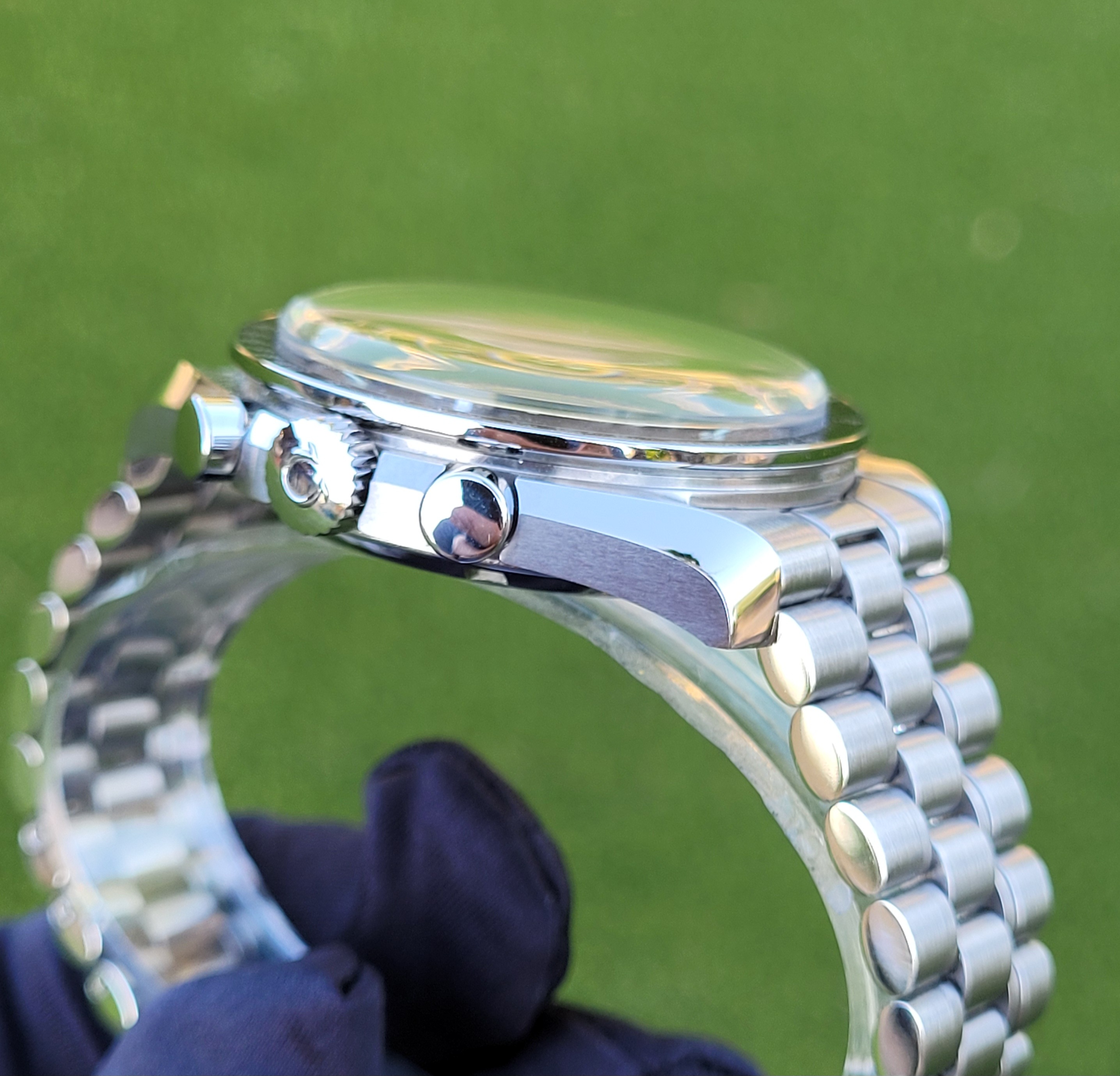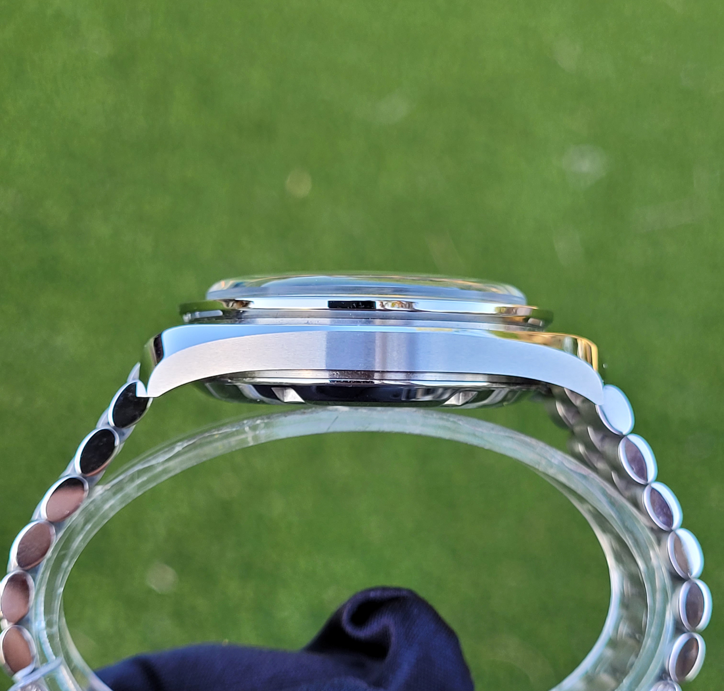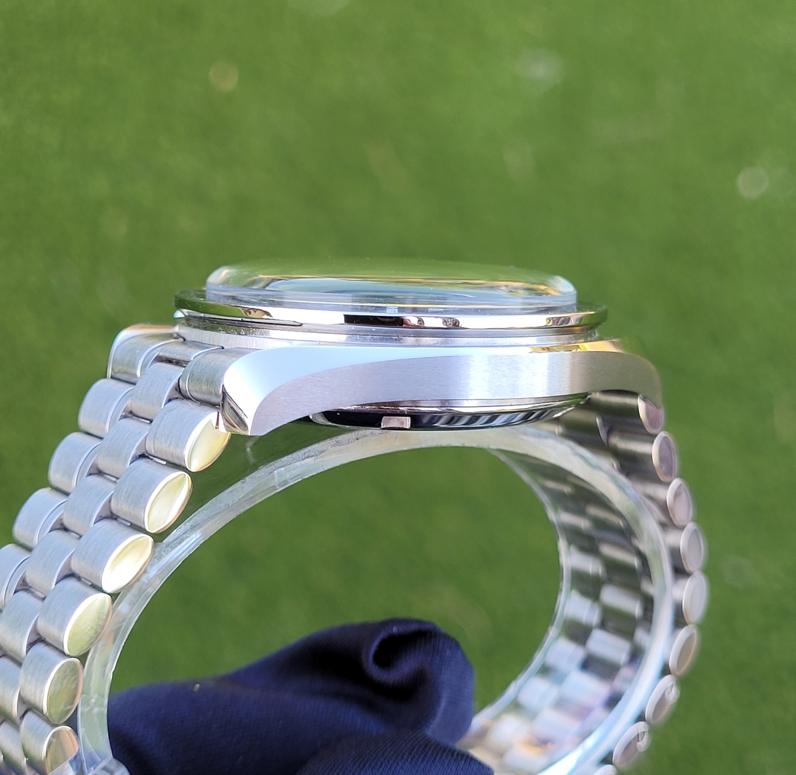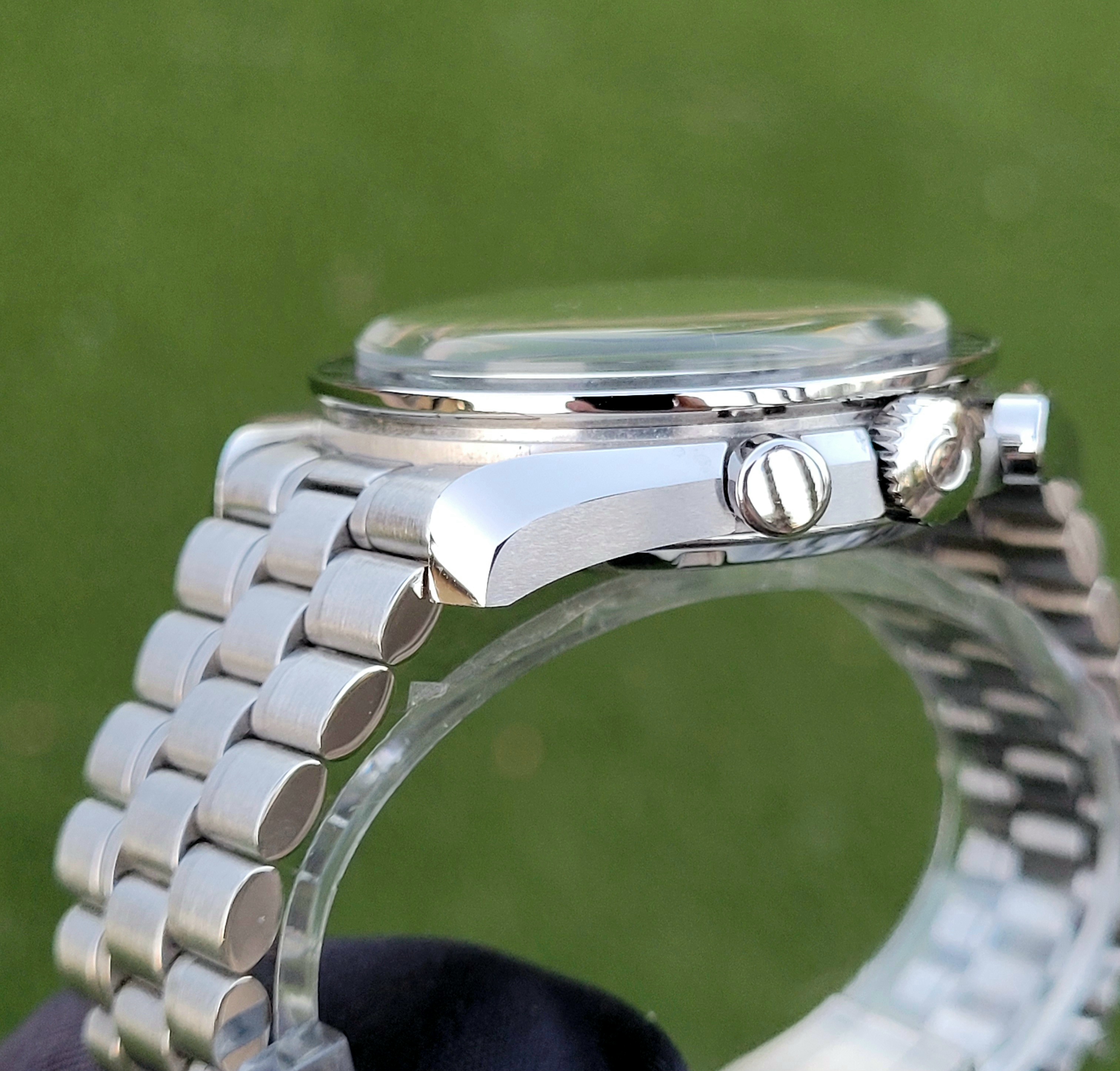 Aesthetic Condition: The Hesalite crystal, bezel, case, and bracelet are all in excellent condition with the only visible blemish being a desk diving line on the clasp (not even visible in the close up picture of the clasp below).