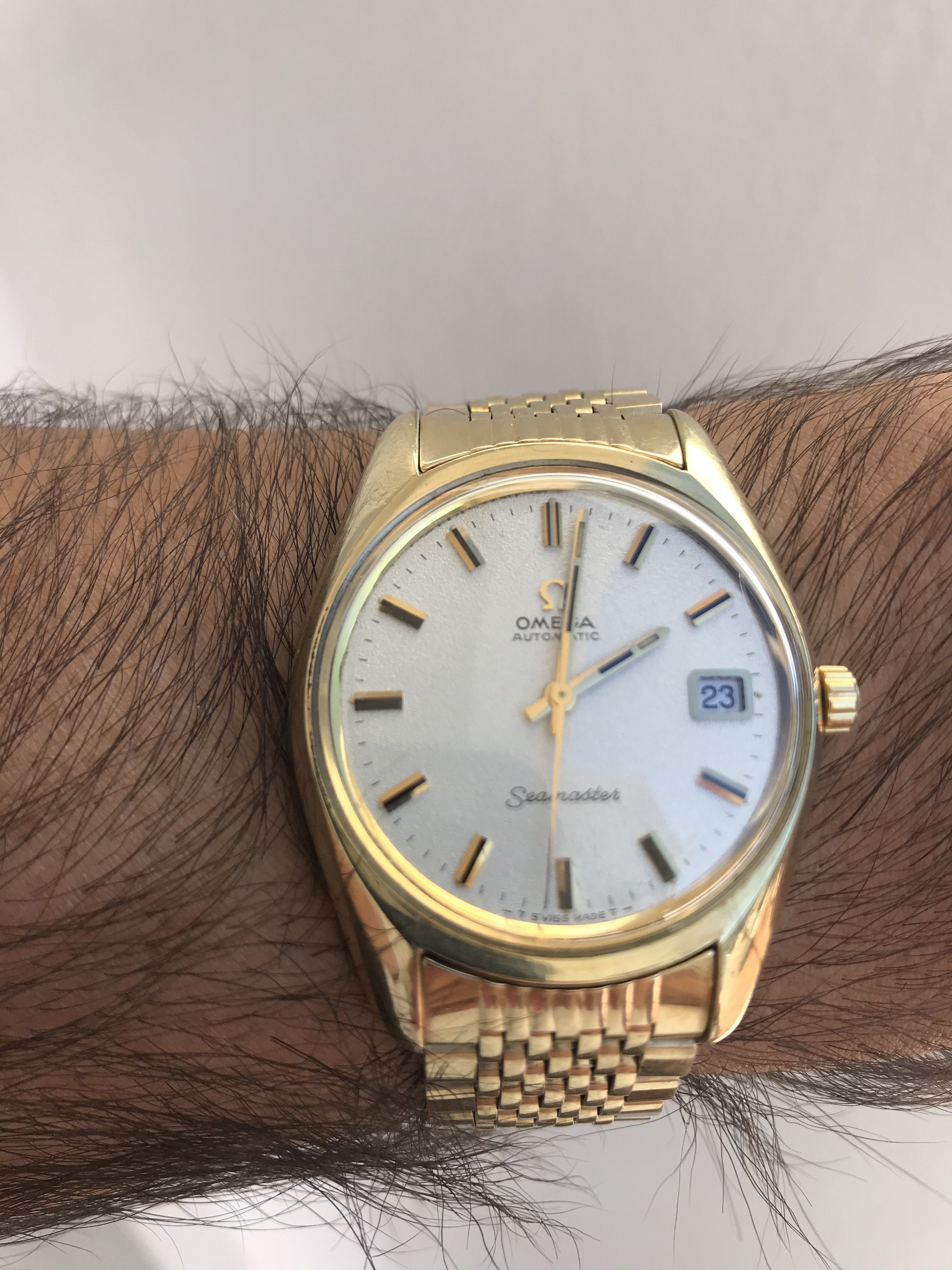 Picked up this gold-capped Seamaster Ref 166.067 with sparkle dial and original BoR bracelet from a local South African auction site last April for well under the limit. It was certainly grungy. Took some cleaning and polywatch to get it looking like this…
