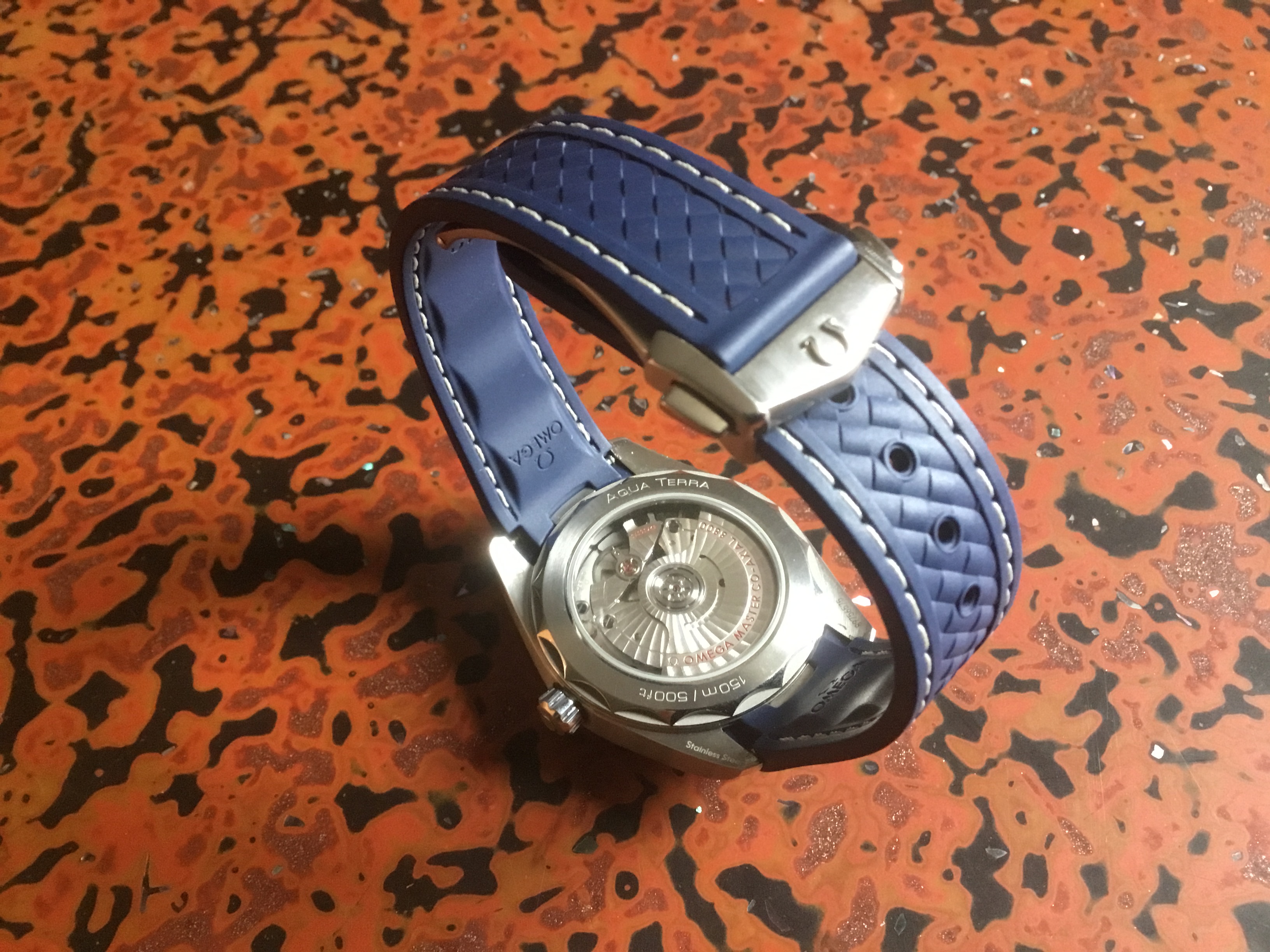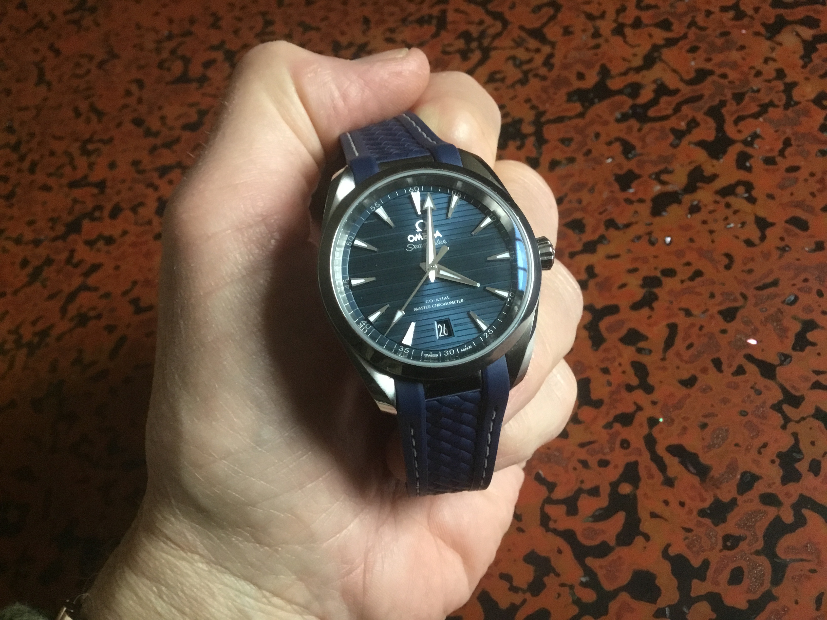 I’m selling my blue Aqua Terra, 220.10.38.20.03.001, which I bought new from an Authorized Dealer in late January of this year. I’ve only worn it a handful of times, so it’s pretty much just like new. It’s not getting the wrist time I thought it would, and the color does not fit in well with rest of my fleet of watches. I may not be bonding with it but apparently a lot of people are - this model has been waitlisted on the Omega website.