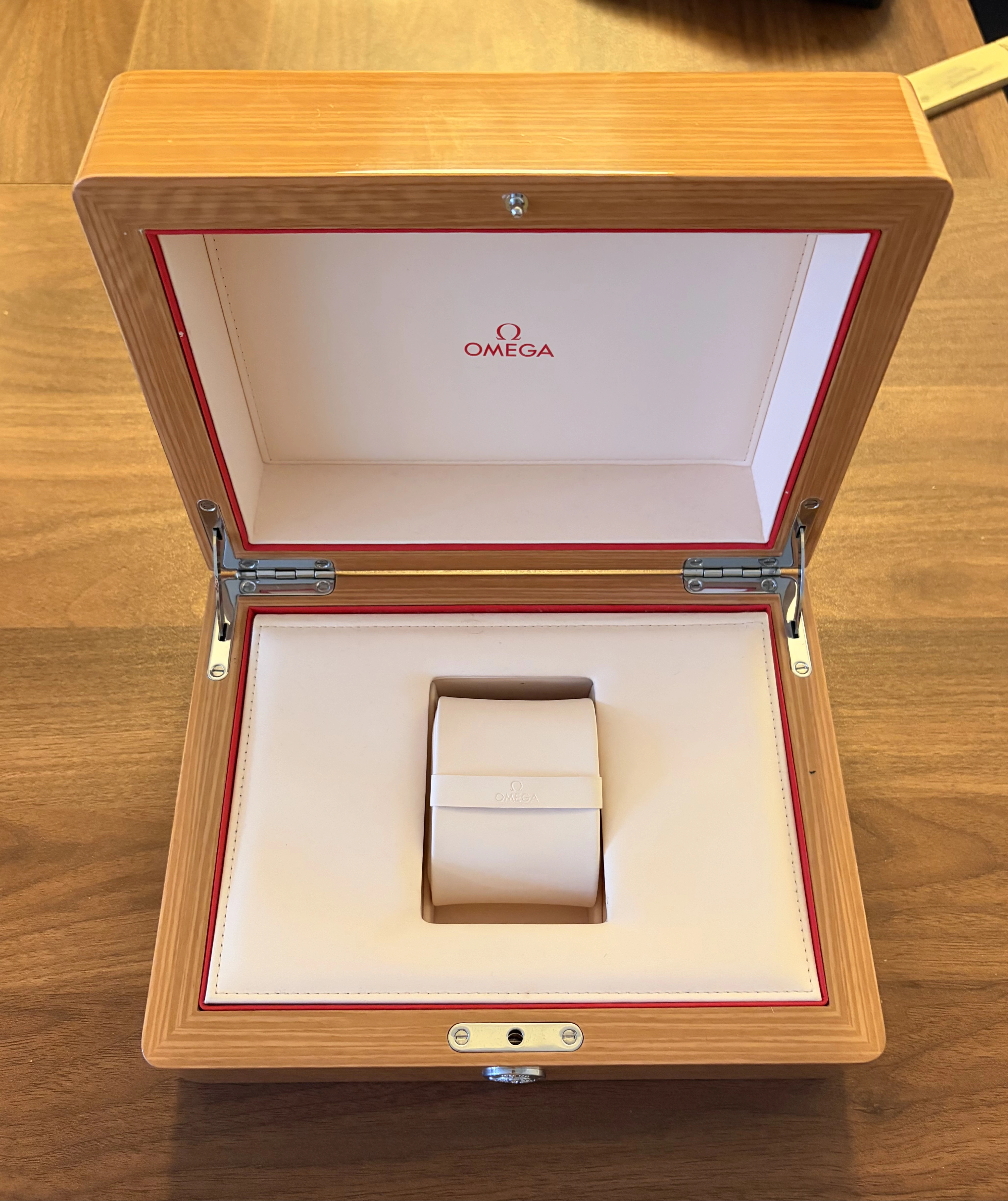 Box/Papers: Comes with original outer and inner box, cards, booklets, hang tag, and the additional red travel box (as pictured)