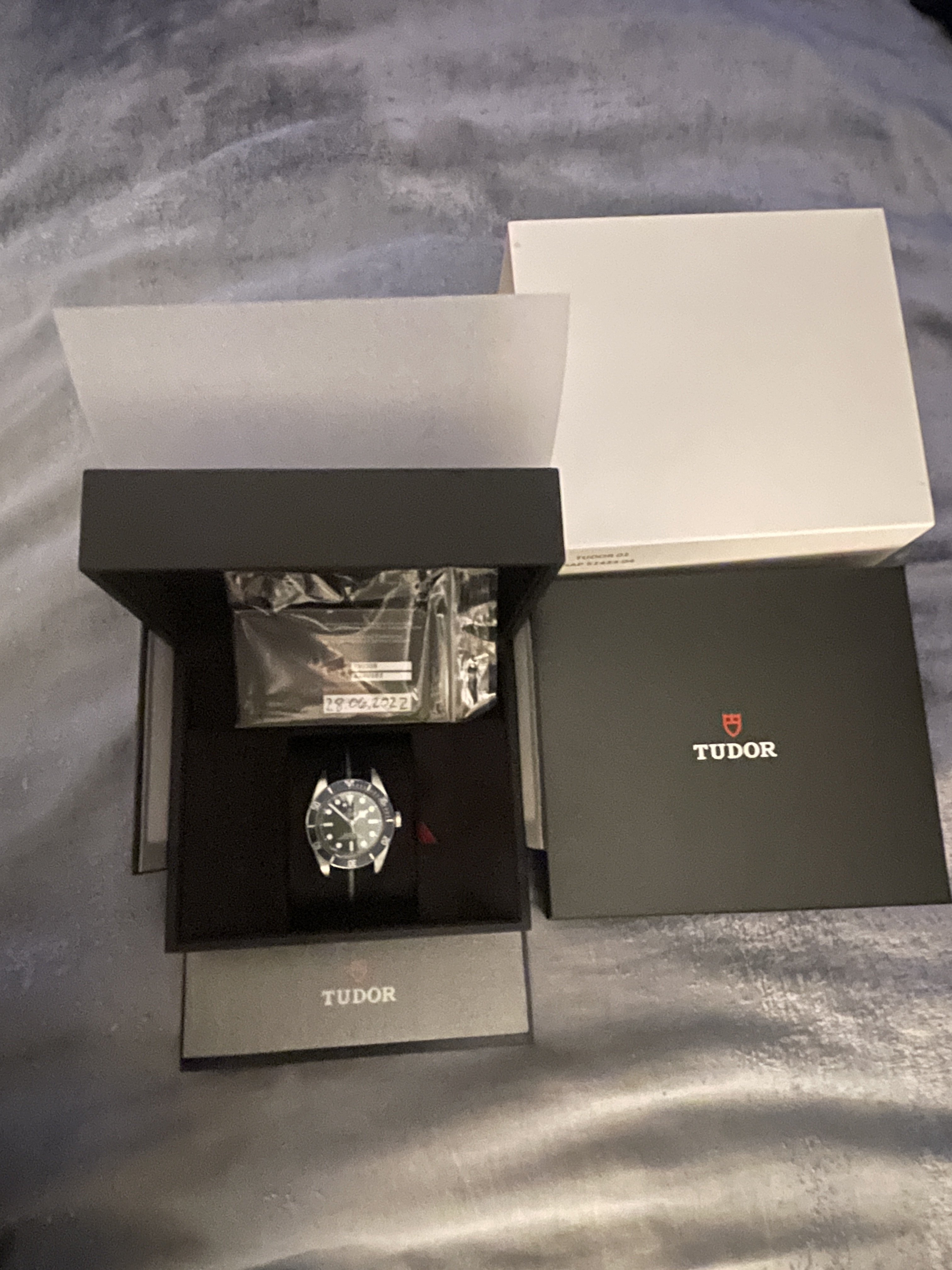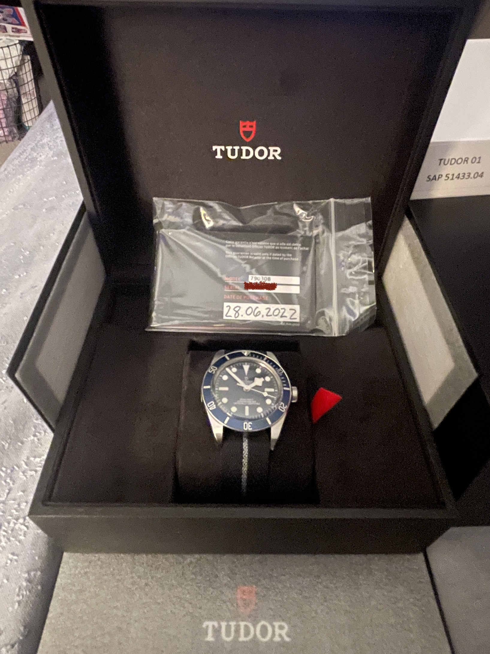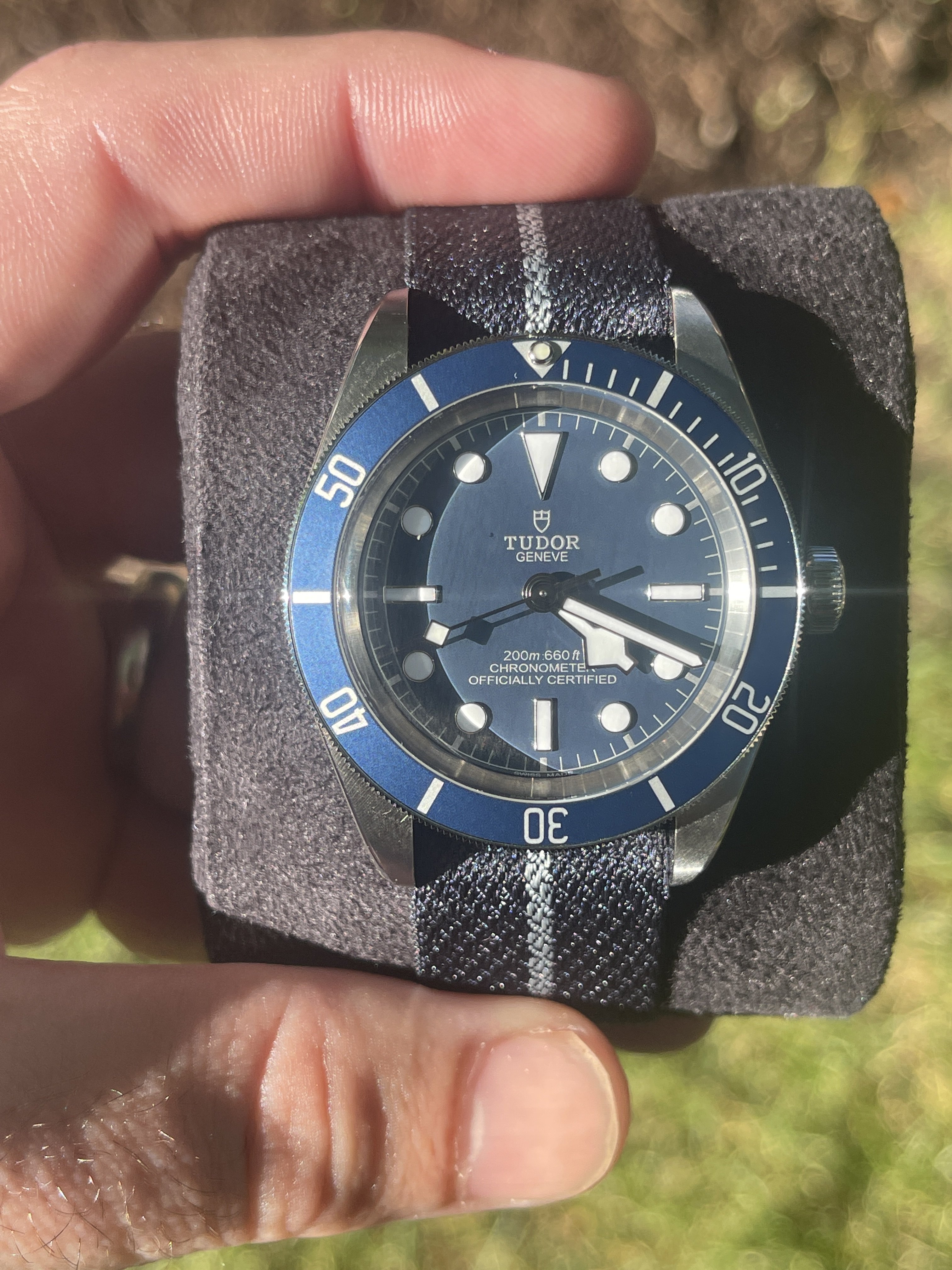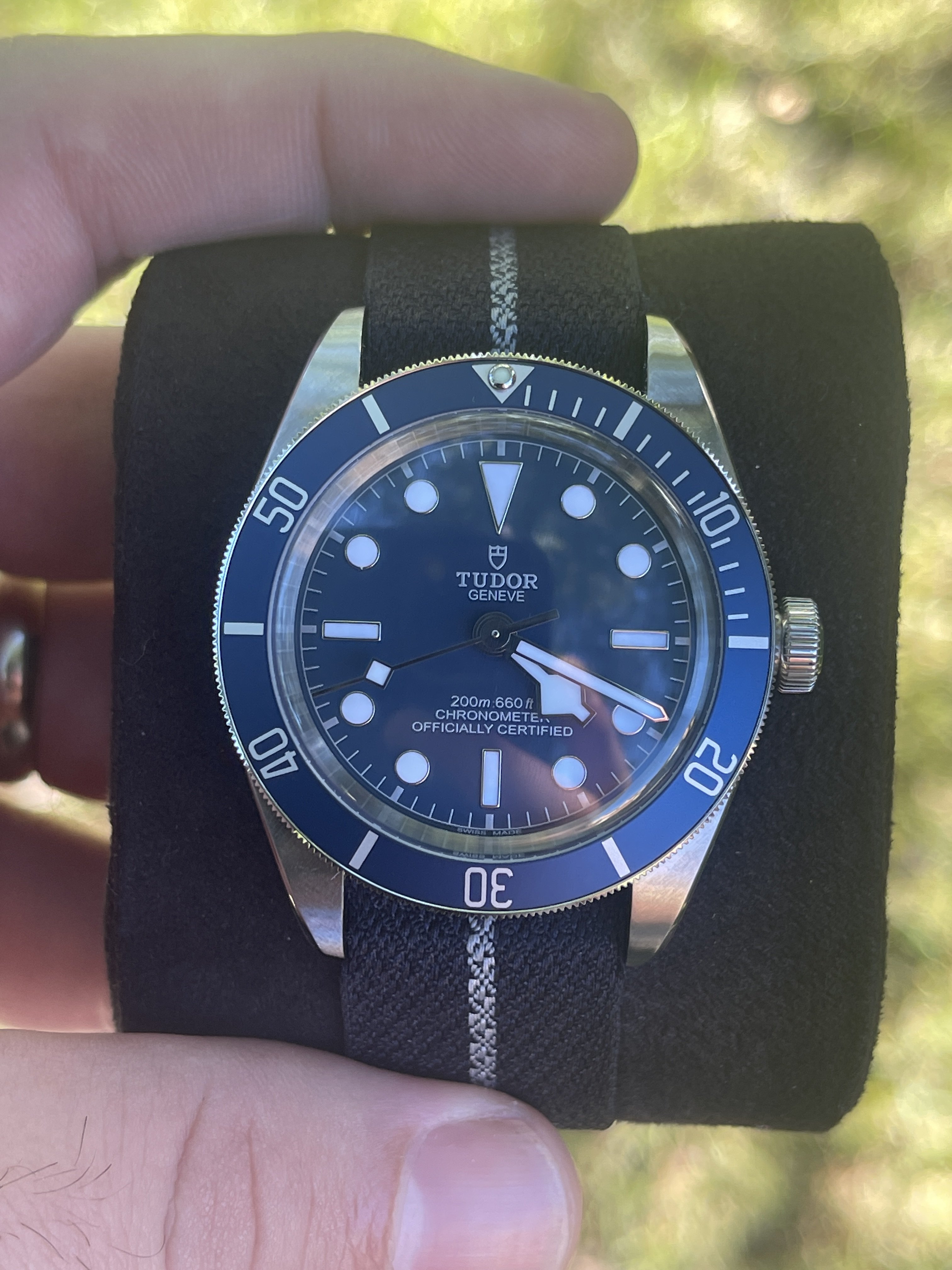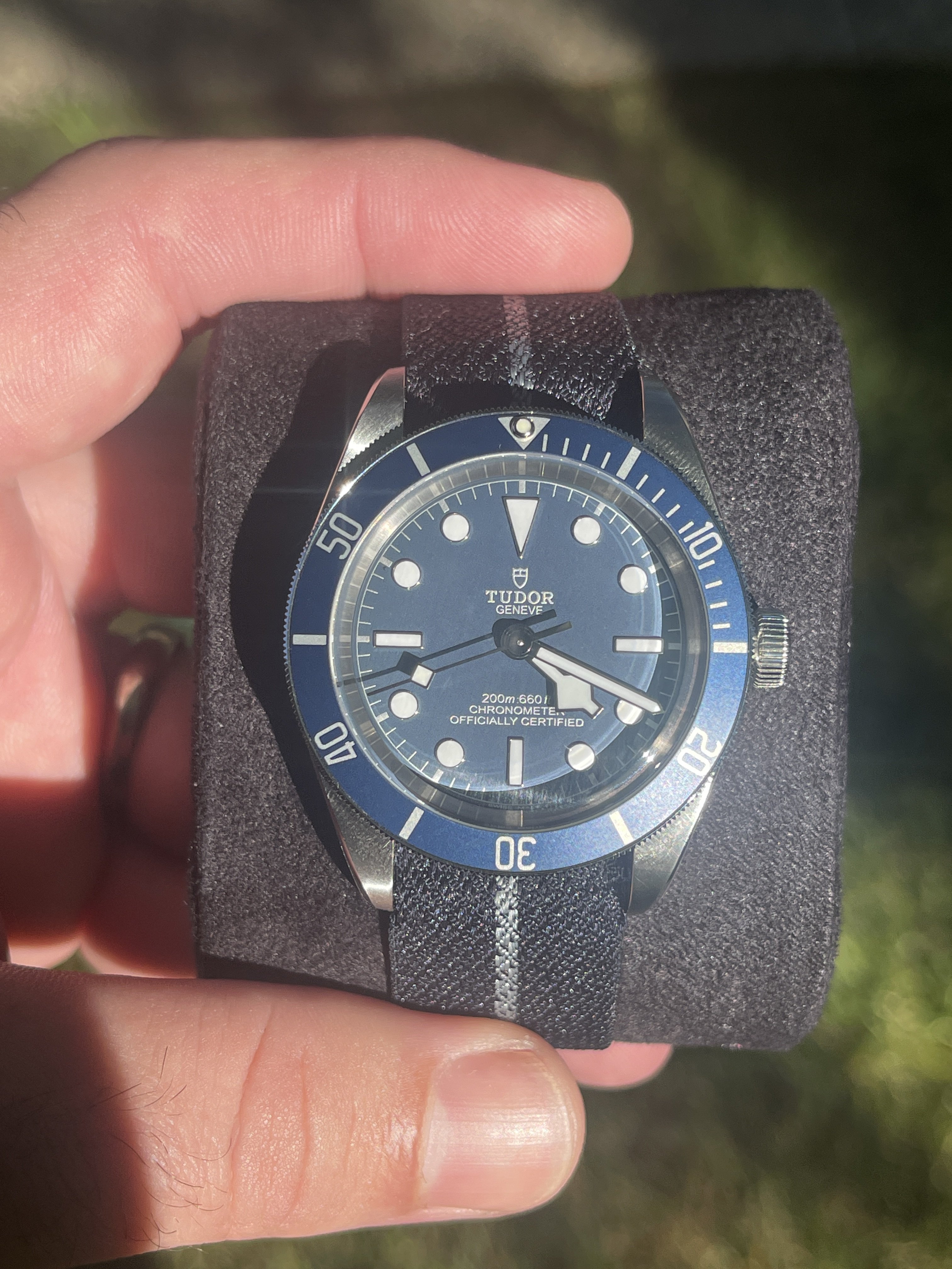 ·Up for grabs is a Tudor BB58 in blue on a NATO, reference 79030B. I purchased this from an AD on a business trip about in late June. I have a BB58 with a black dial and like it so much I decided to pick up the blue variant. I wore it twice, and it has sat in the box since. It still has the stickers on the sides of the case, never removed. This is about as close to new as you're going to get.