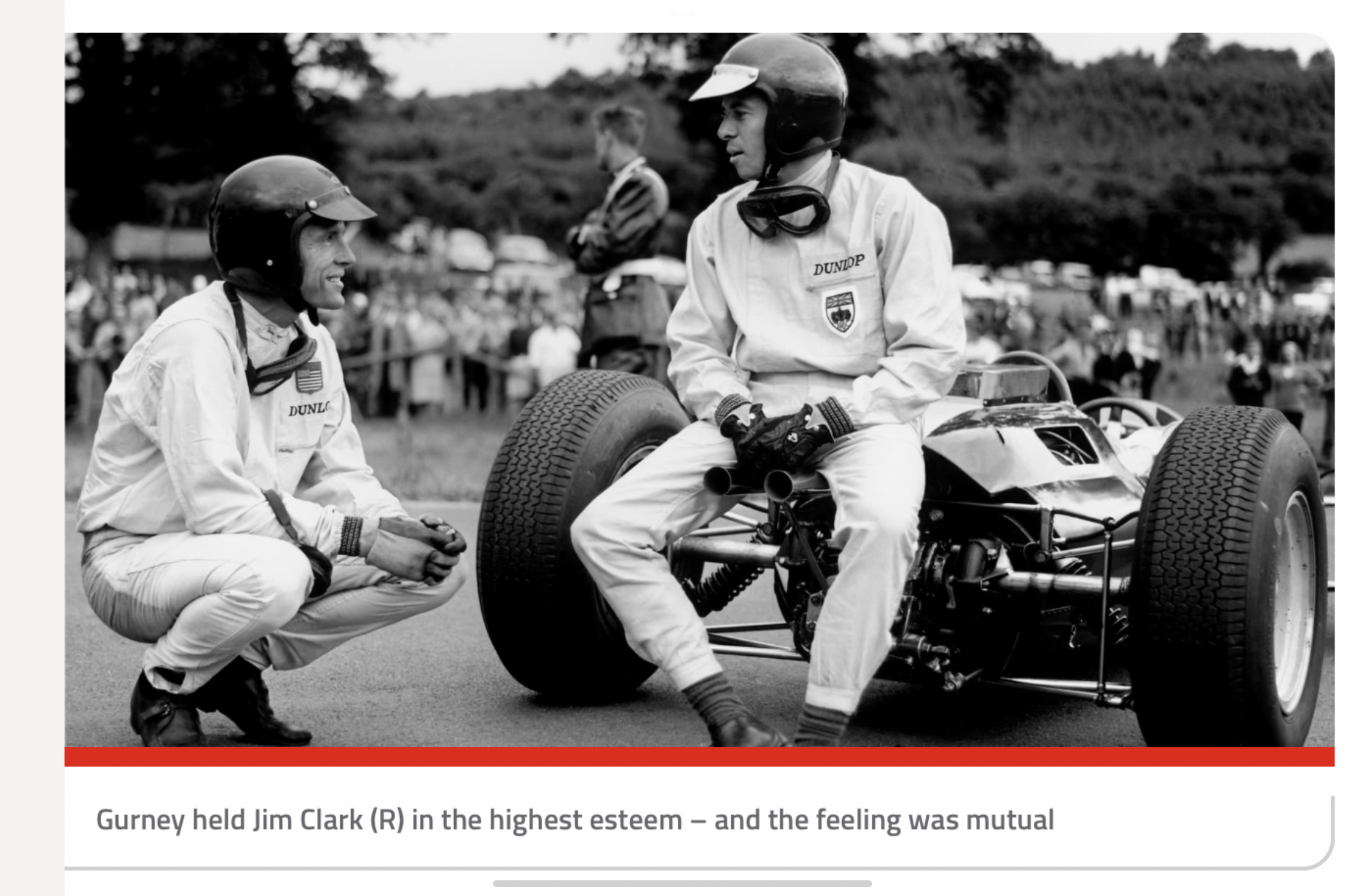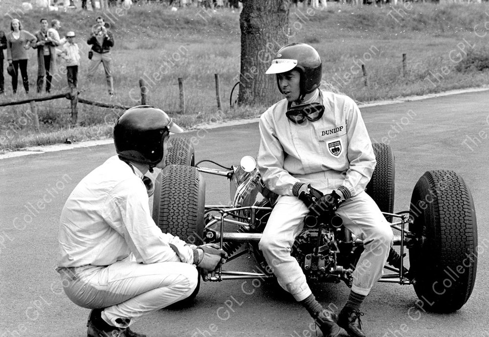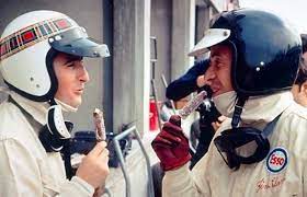 I would like to remember Jim Clark, who in this photo didn't know he had just won the 1964 Belgian GP because he had run out of fuel soon after crossing the line and had to wait for the loudspeaker announcement. Waiting here talking to Dan Gurney.
