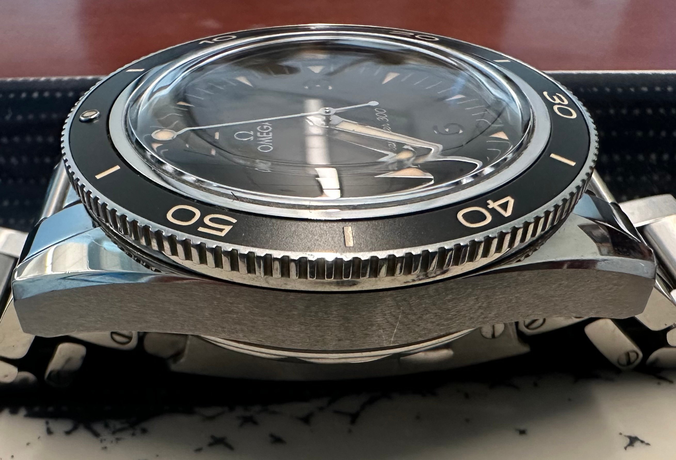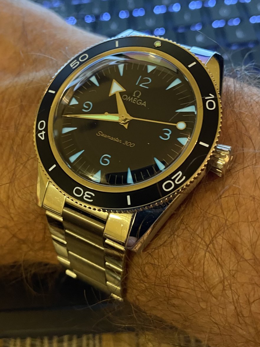 ·Hello all. I have recently been offered the opportunity to purchase a once in a lifetime vintage Omega which I can't pass up, so another piece from my collection has to go and, as they say, my loss is your gain. Here's your chance to acquire the newest version of the Seamaster 300 in preowned near mint condition with a full kit at 40% off its current retail price of $7,100. If you're looking for a very attractive, nearly new Omega that straddles the line between tool watch and dress watch, combines a vintage vibe with state of the art technology, and has a very cool sandwich dial and the best bracelet that Omega has produced in years, this watch is for you.