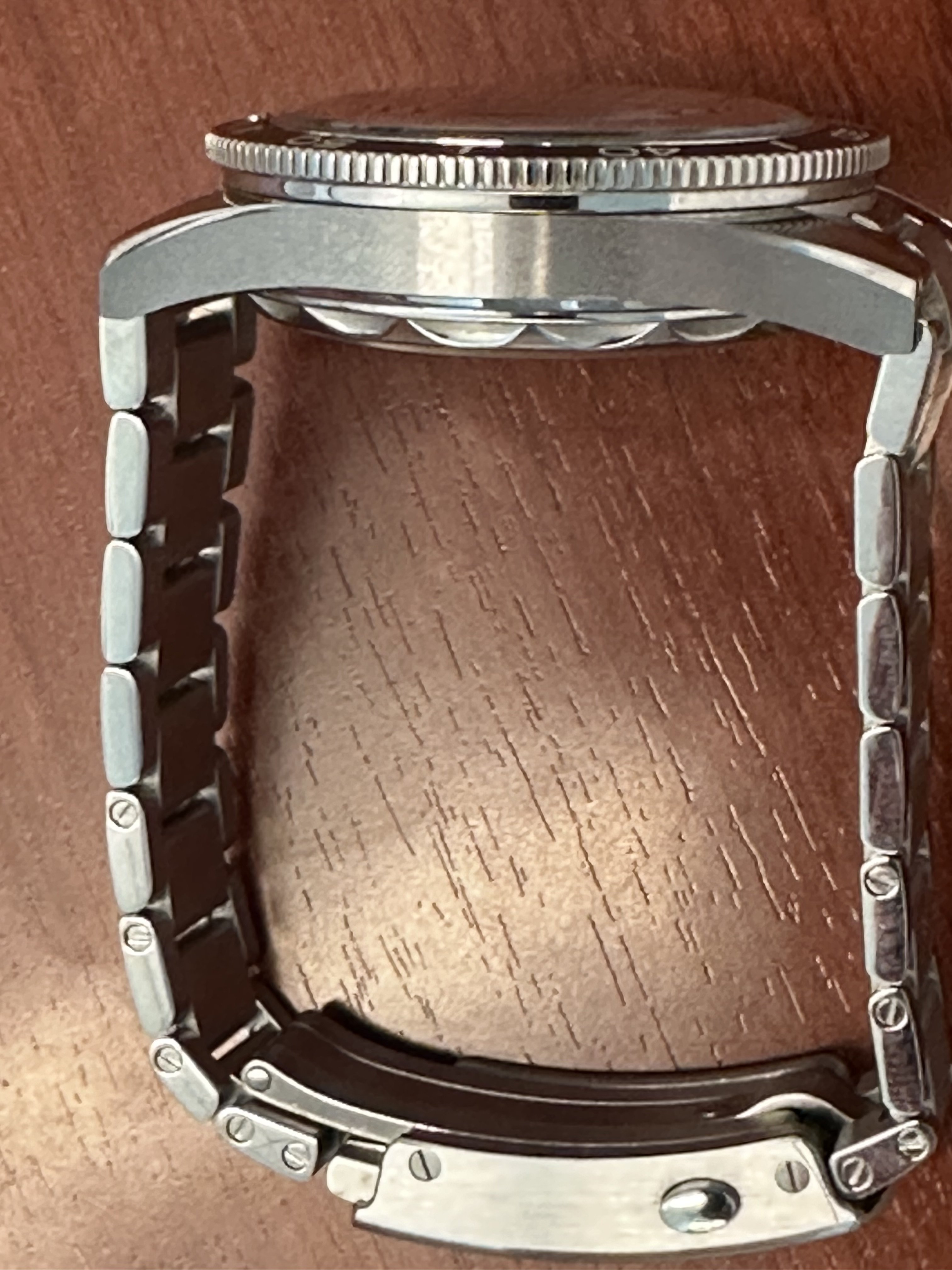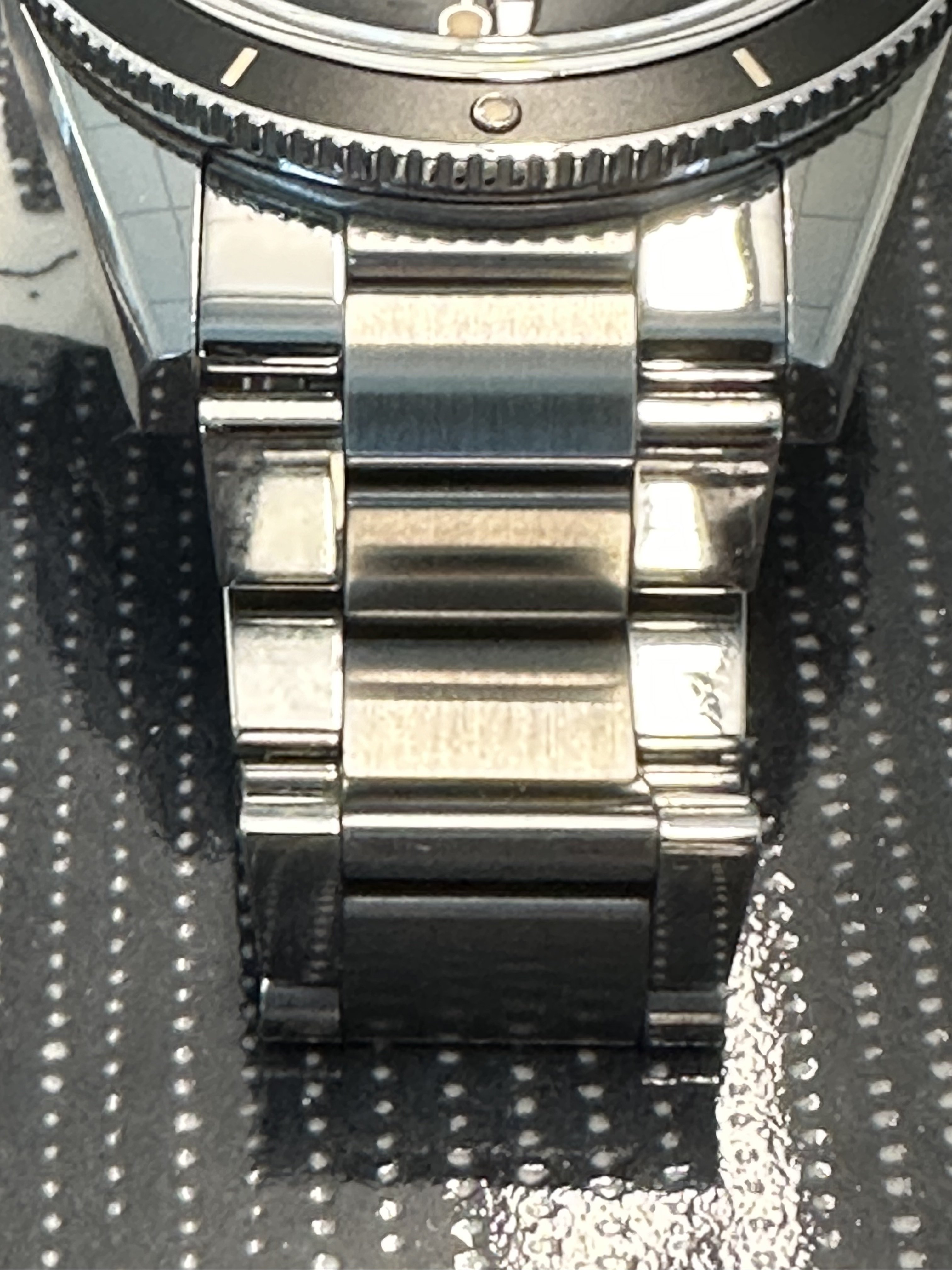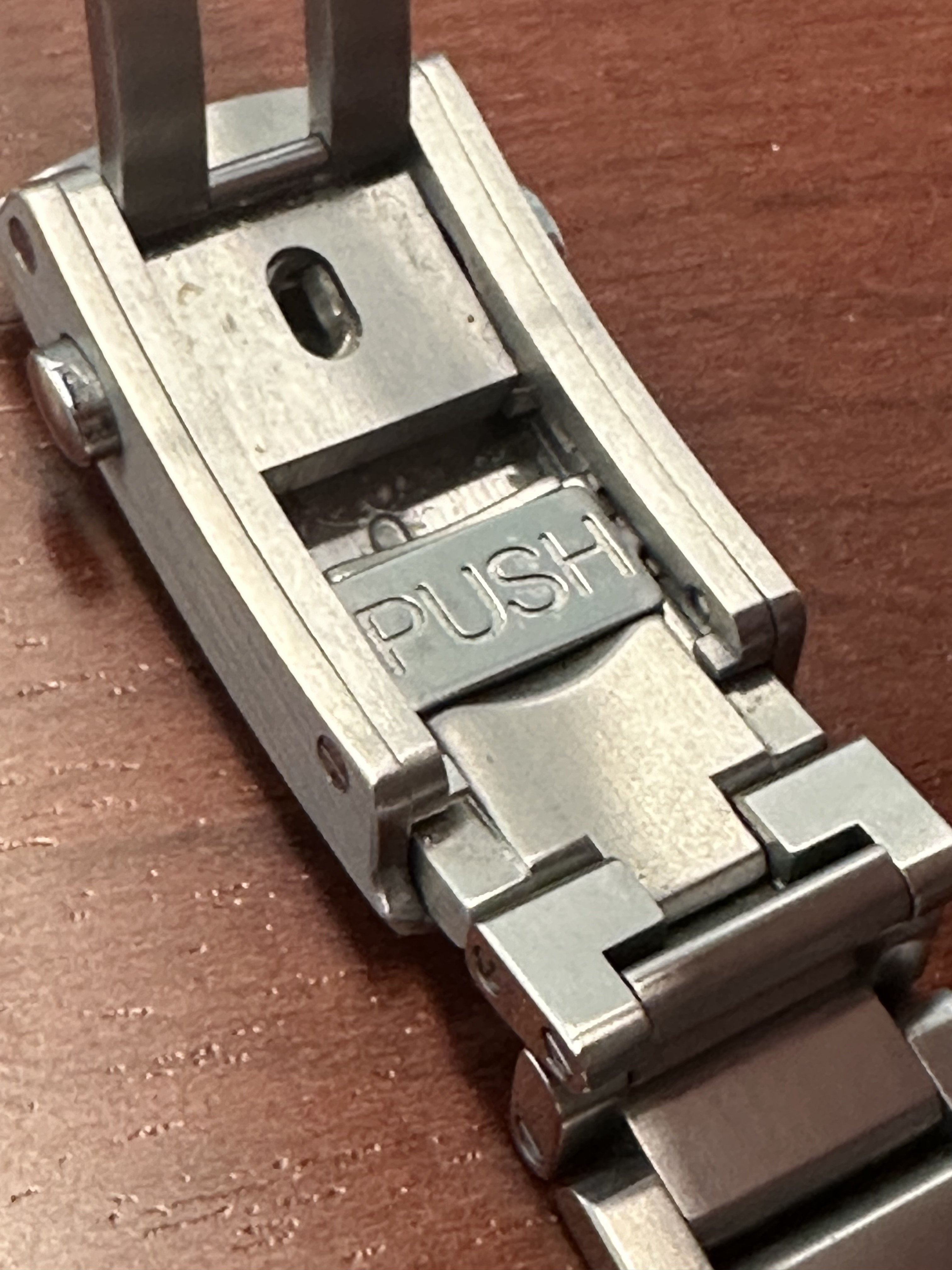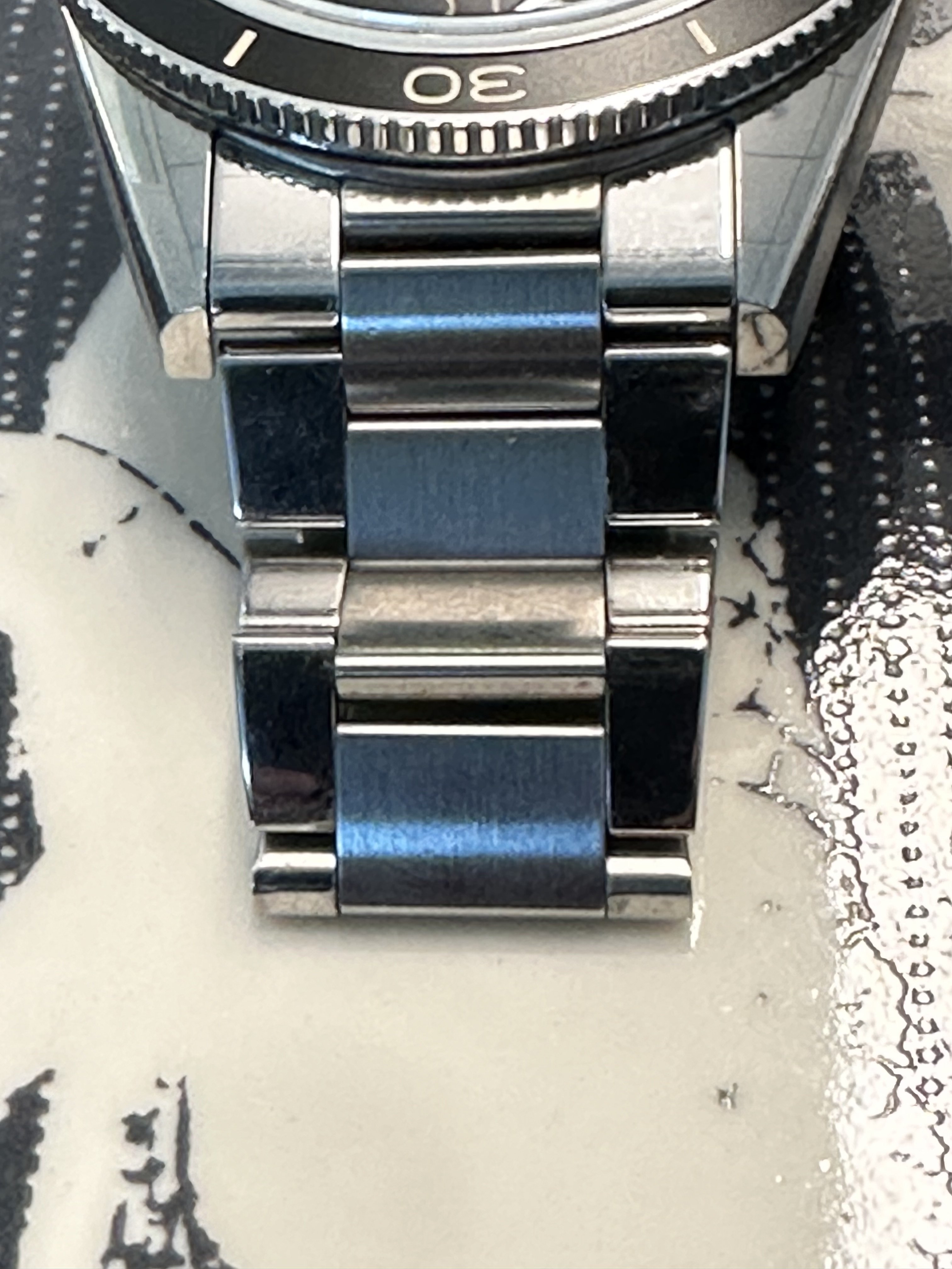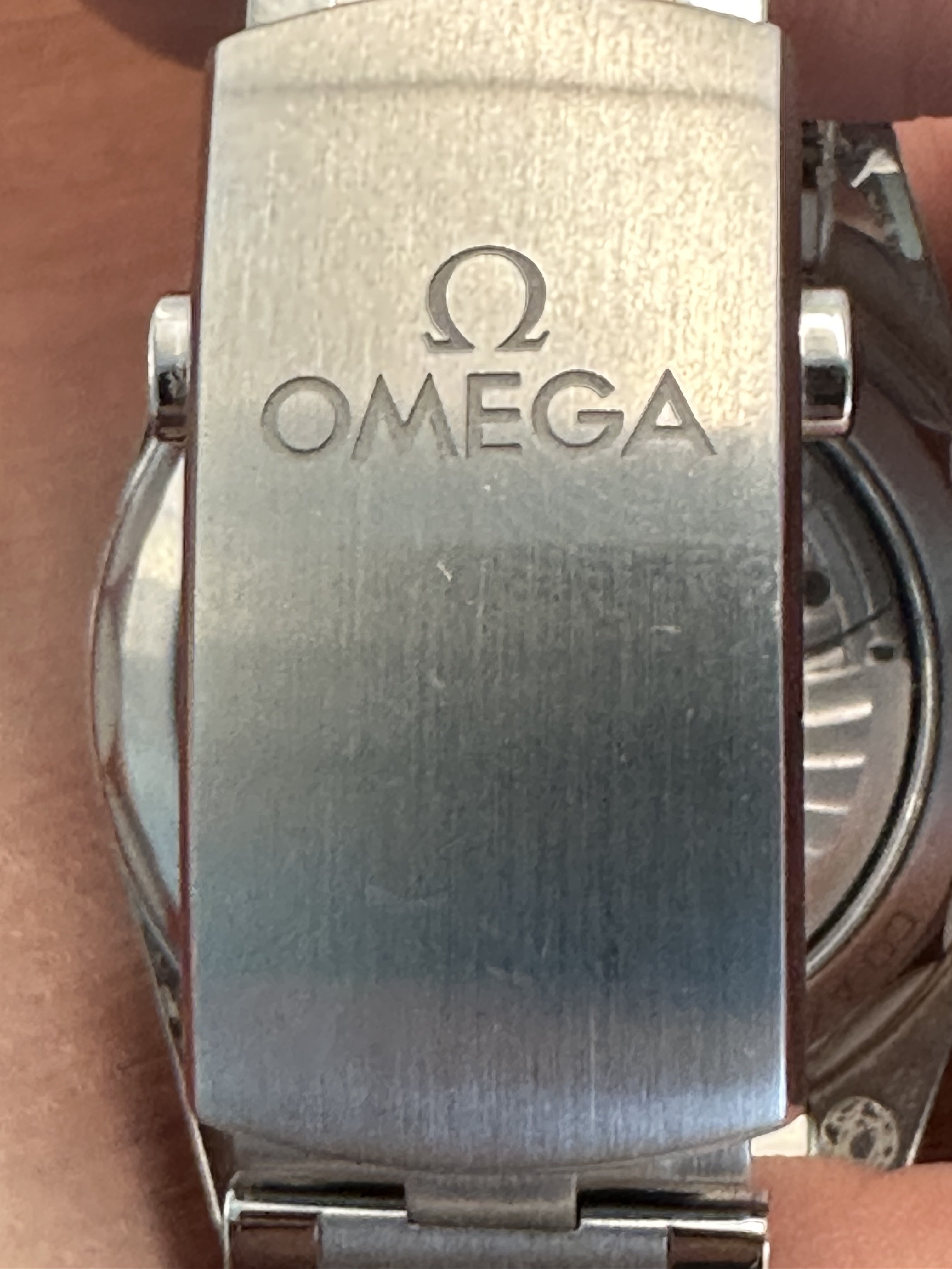 Bracelet: Omega OEM flat link with dual push buttom clasp and microadjustment currently sized to fit my 7.5 inch wrist (all extra links included with sale)