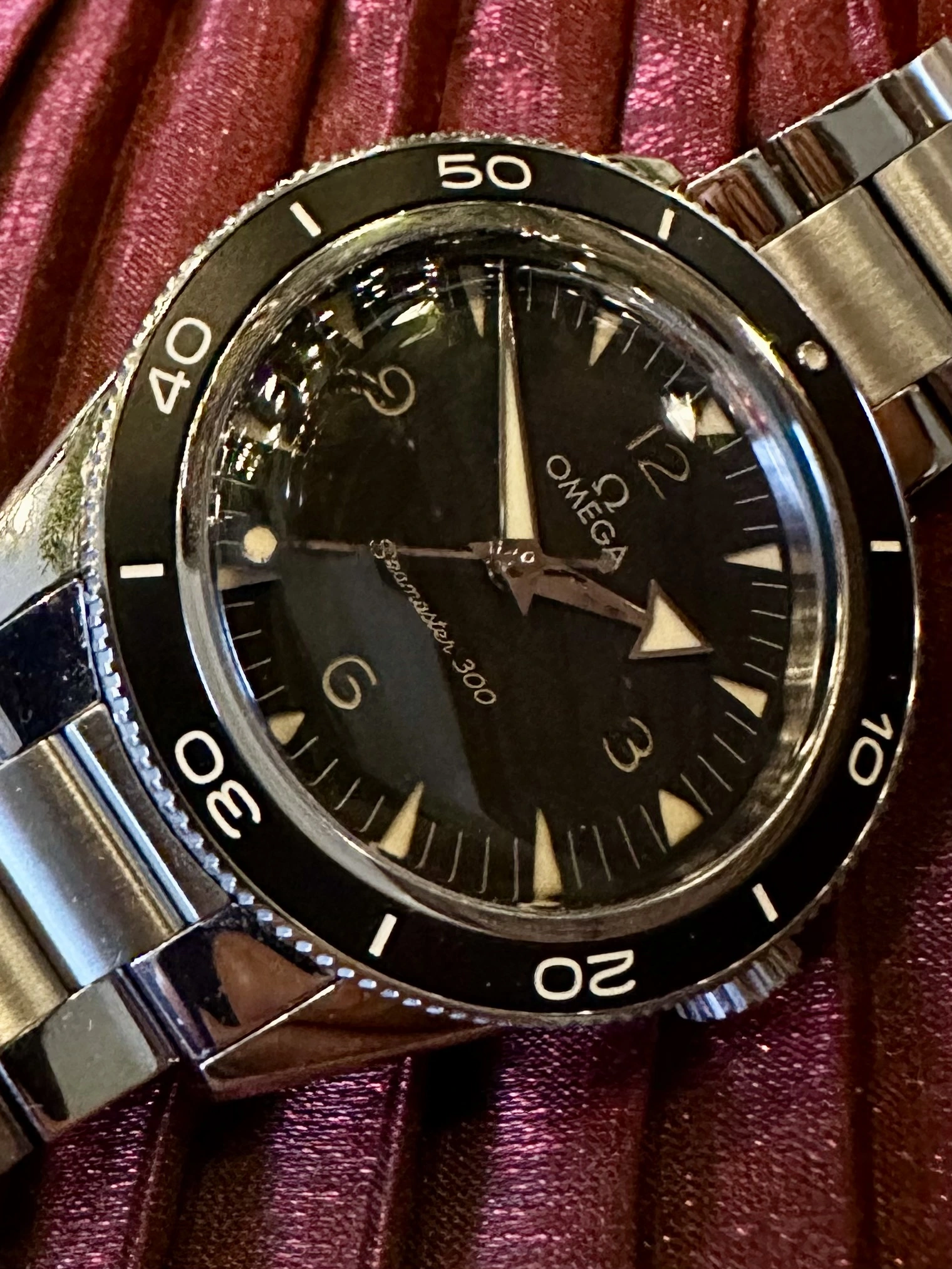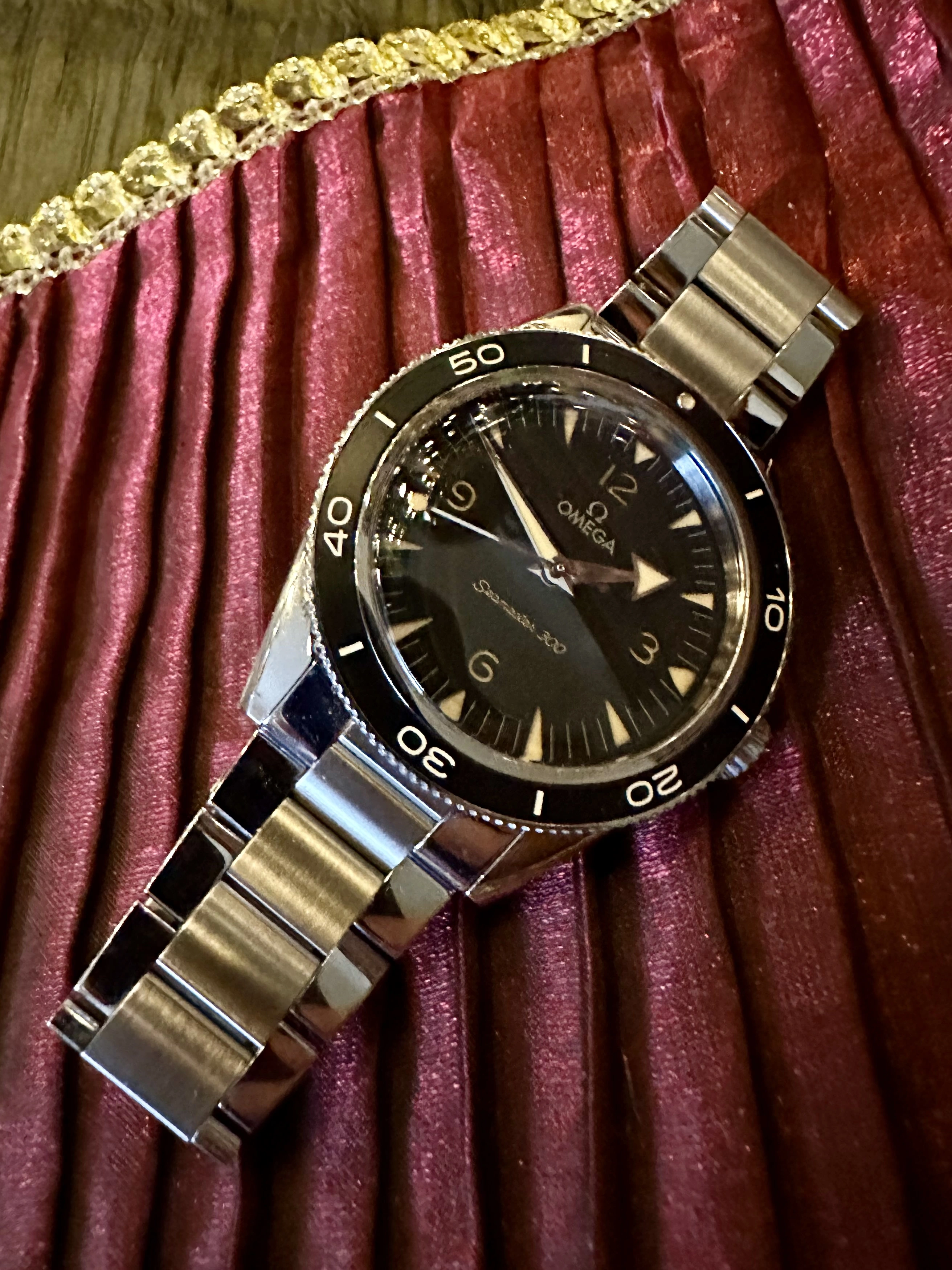 ·Hello all. I have recently been offered the opportunity to purchase a once in a lifetime vintage Omega which I can't pass up, so another piece from my collection has to go and, as they say, my loss is your gain. Here's your chance to acquire the newest version of the Seamaster 300 in preowned near mint condition with a full kit at 40% off its current retail price of $7,100. If you're looking for a very attractive, nearly new Omega that straddles the line between tool watch and dress watch, combines a vintage vibe with state of the art technology, and has a very cool sandwich dial and the best bracelet that Omega has produced in years, this watch is for you.