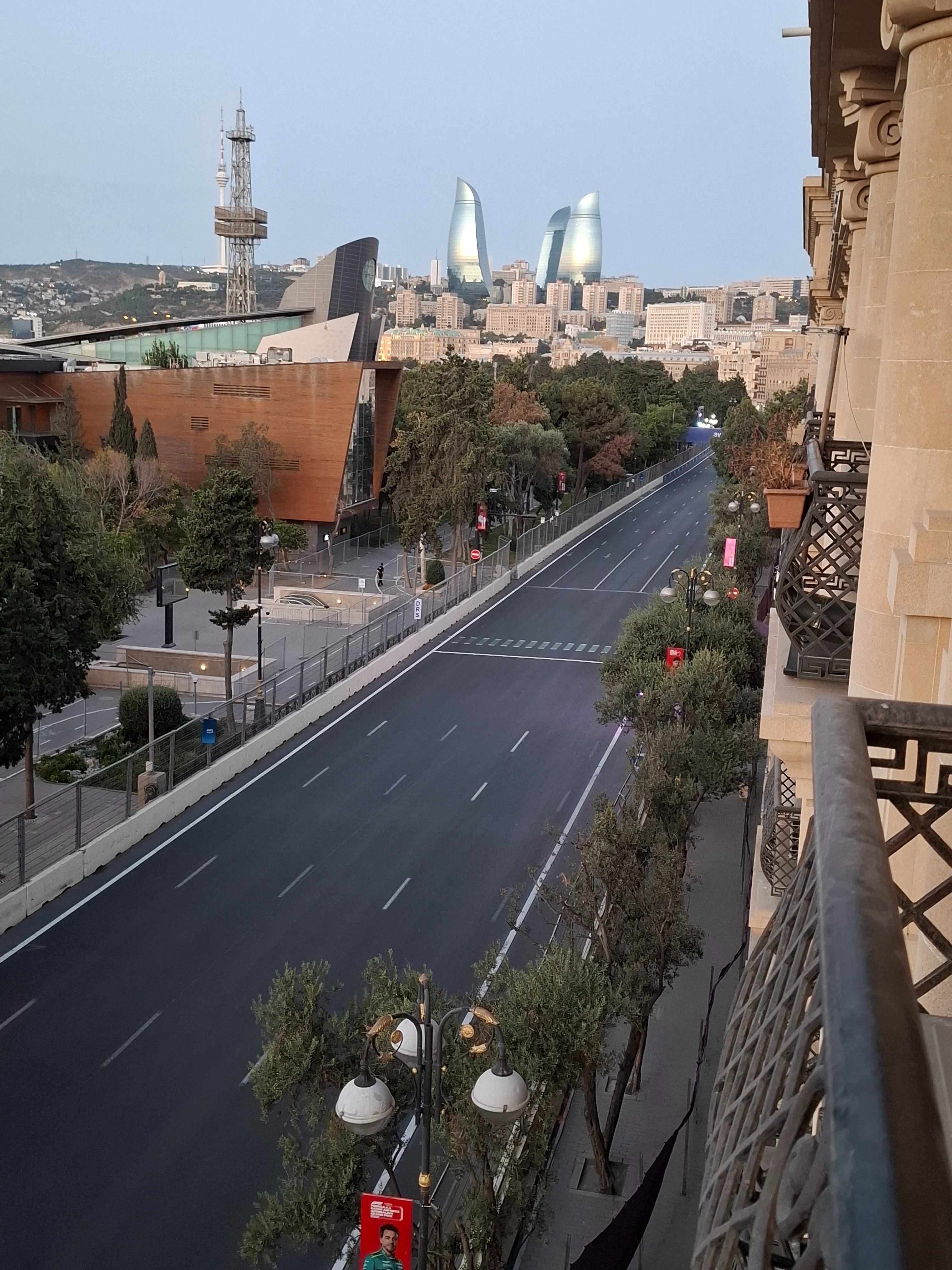 Here are some pictures of last minute preparations for the F1 race in Baku. The view is from my balcony. My apartment is on the main road near the start. We have an open house for friends and colleagues all weekend.