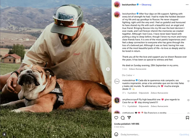 It's race week, and unfortunately for Lewis, his first one without Roscoe...