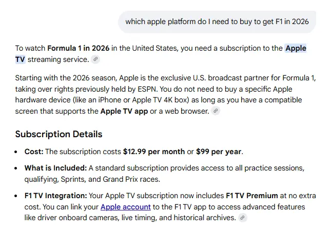 I was happy that F1 did consolidate with Apple TV. Allowed me to eliminate the $80 or whatever I was paying for F1TV.