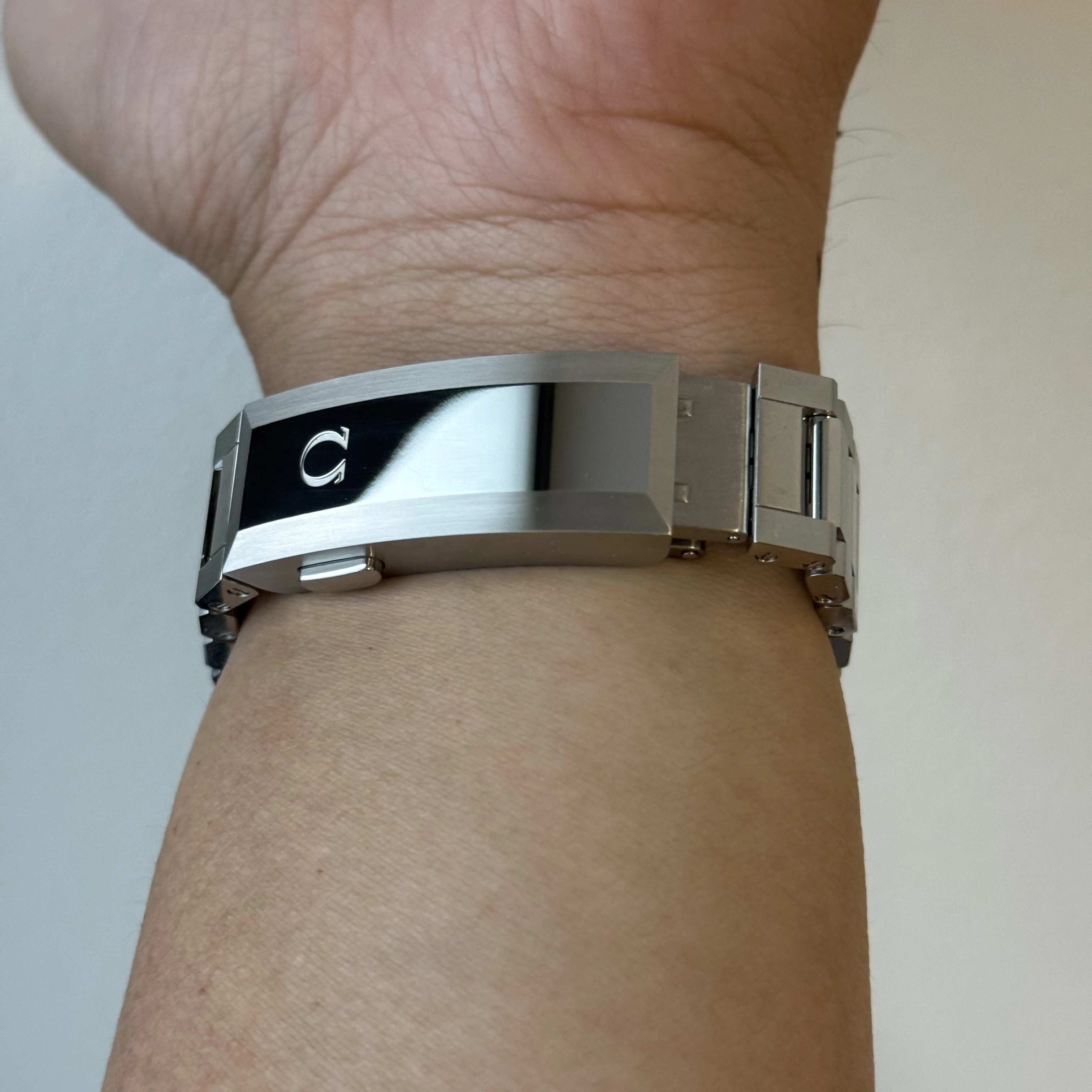 Polished links + bracelet clasp on a tool watch? and cheap engraving on a case back definitely a minus.