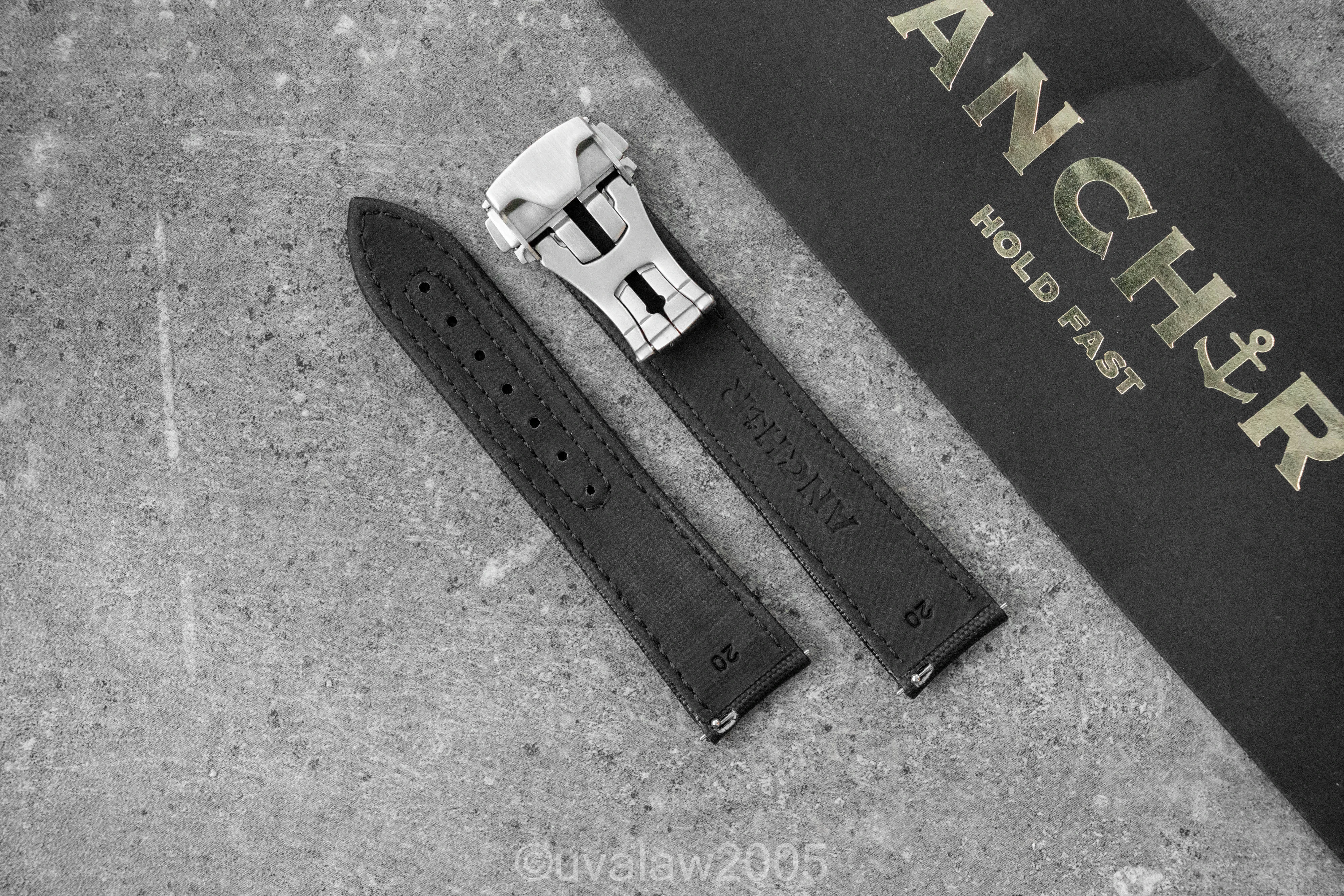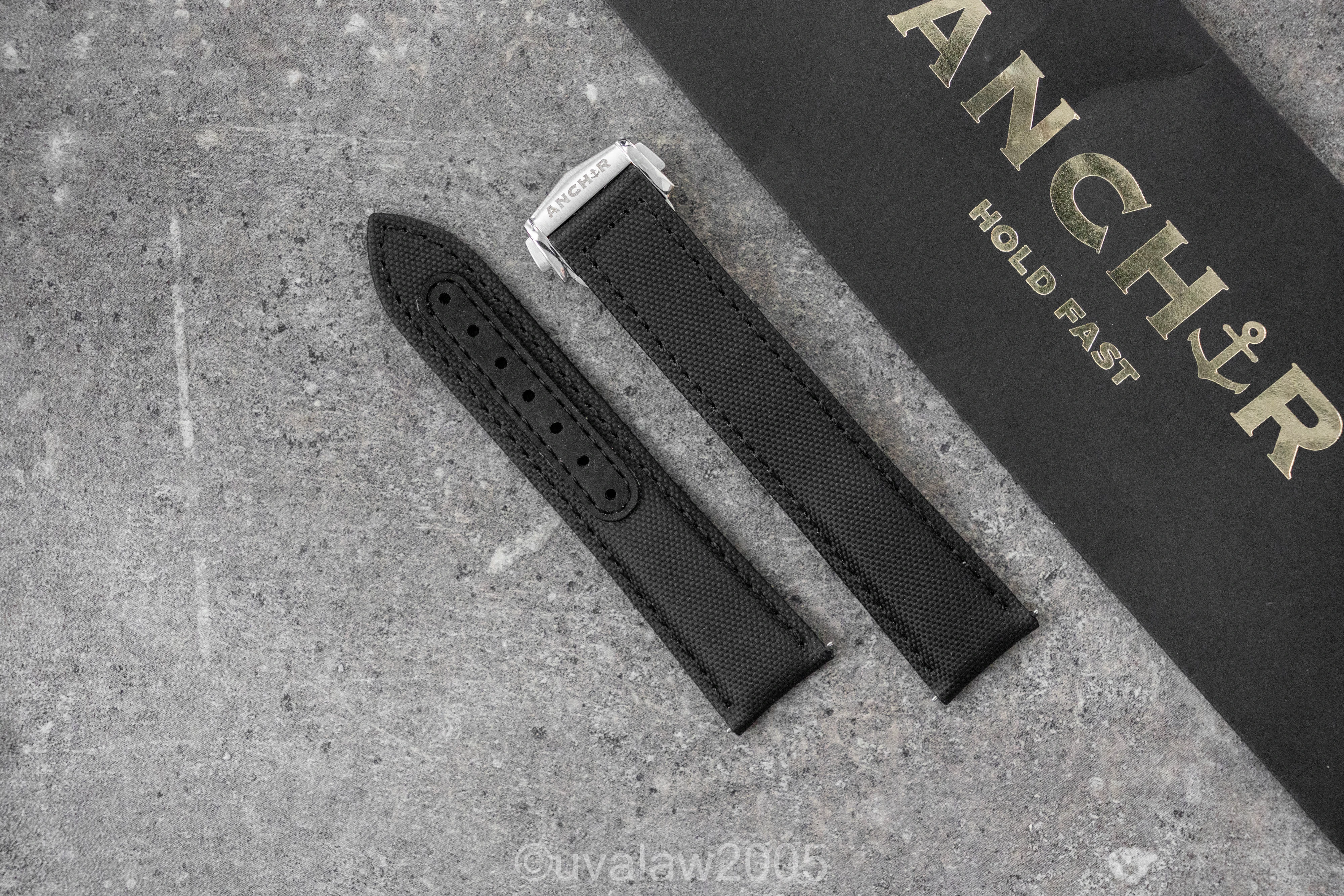 ·For sale is my like new 20mm Anchor Straps Jet Black Deployant Sailcloth Strap with brushed steel signed deployant clasp and quick-release spring bars. Mounted once but otherwise unworn.