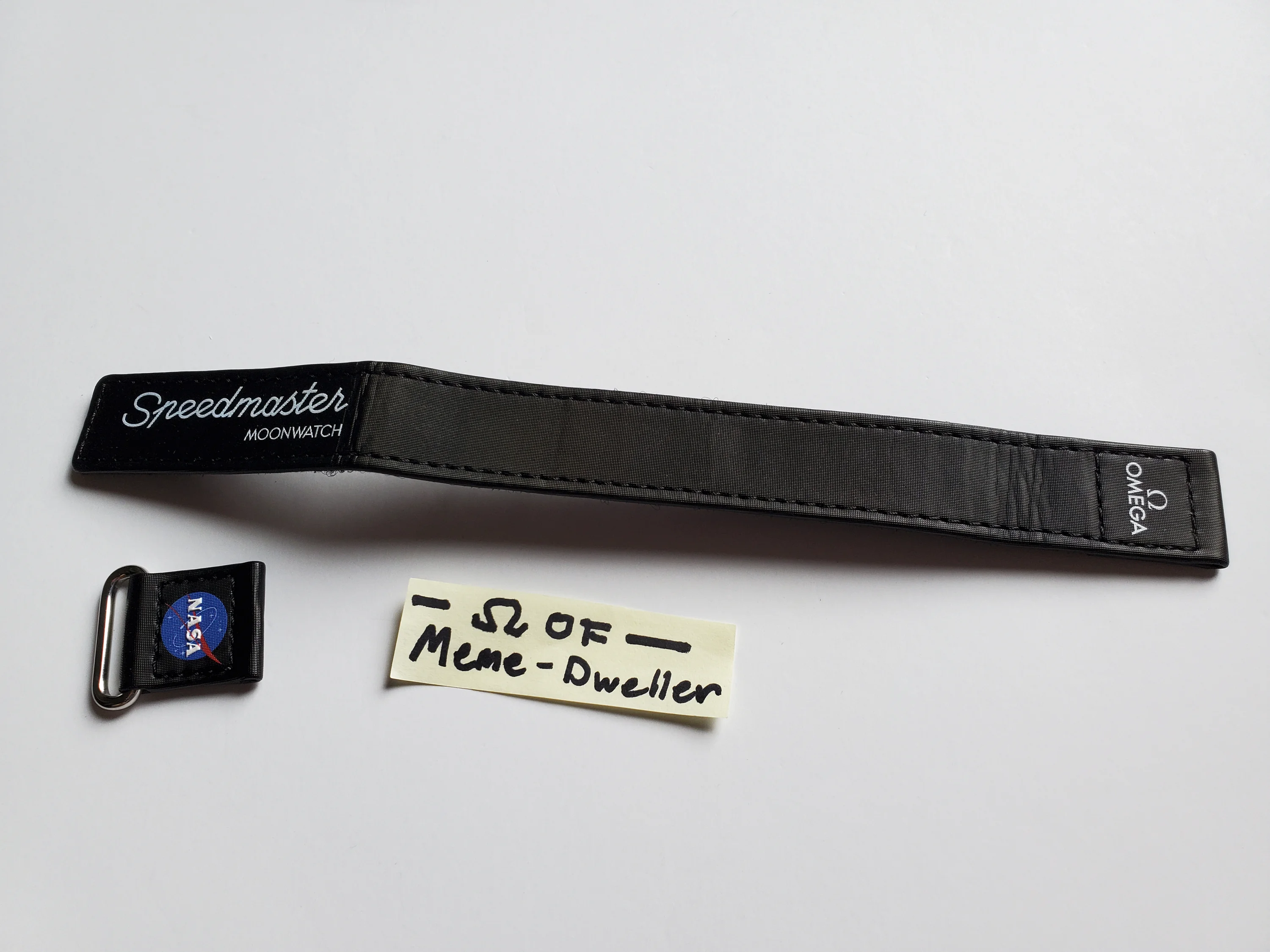 Up for sale is a used genuine Omega Speedmaster black VELCRO® NATO strap. In good condition but there are some minor wrinkles from use. Will fit most watches with a 20mm lug width, but it's obviously themed for the Moonwatch.