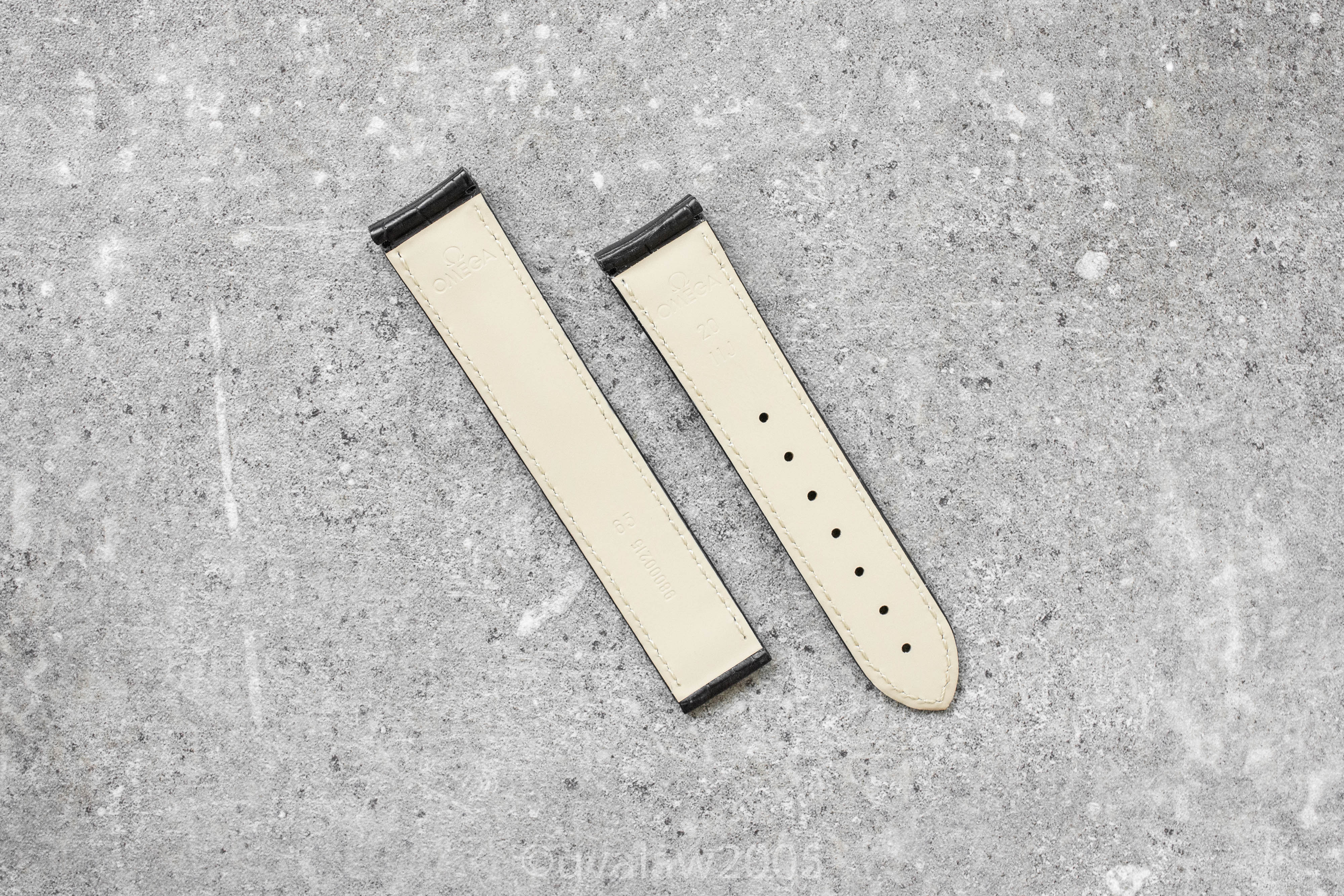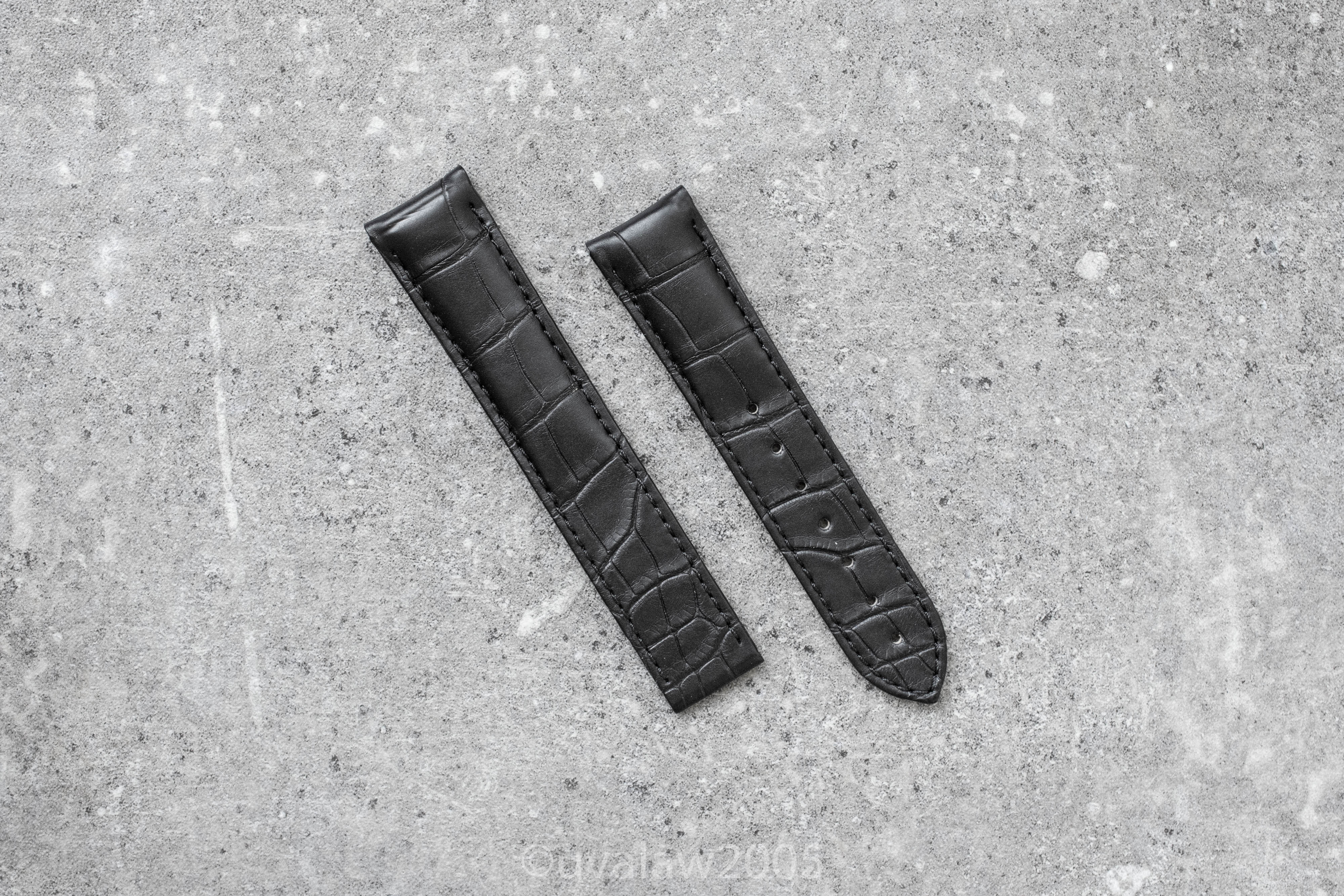 ·For sale is my brand new OEM Omega black alligator leather deployant strap, ref. 98000215, 20mm lug width x 18mm buckle width. Will fit 41/42mm Seamaster Pro, 42mm Planet Ocean, 42mm Speedmaster, 41mm Aqua Terra, or any other watch with 20mm lugs.