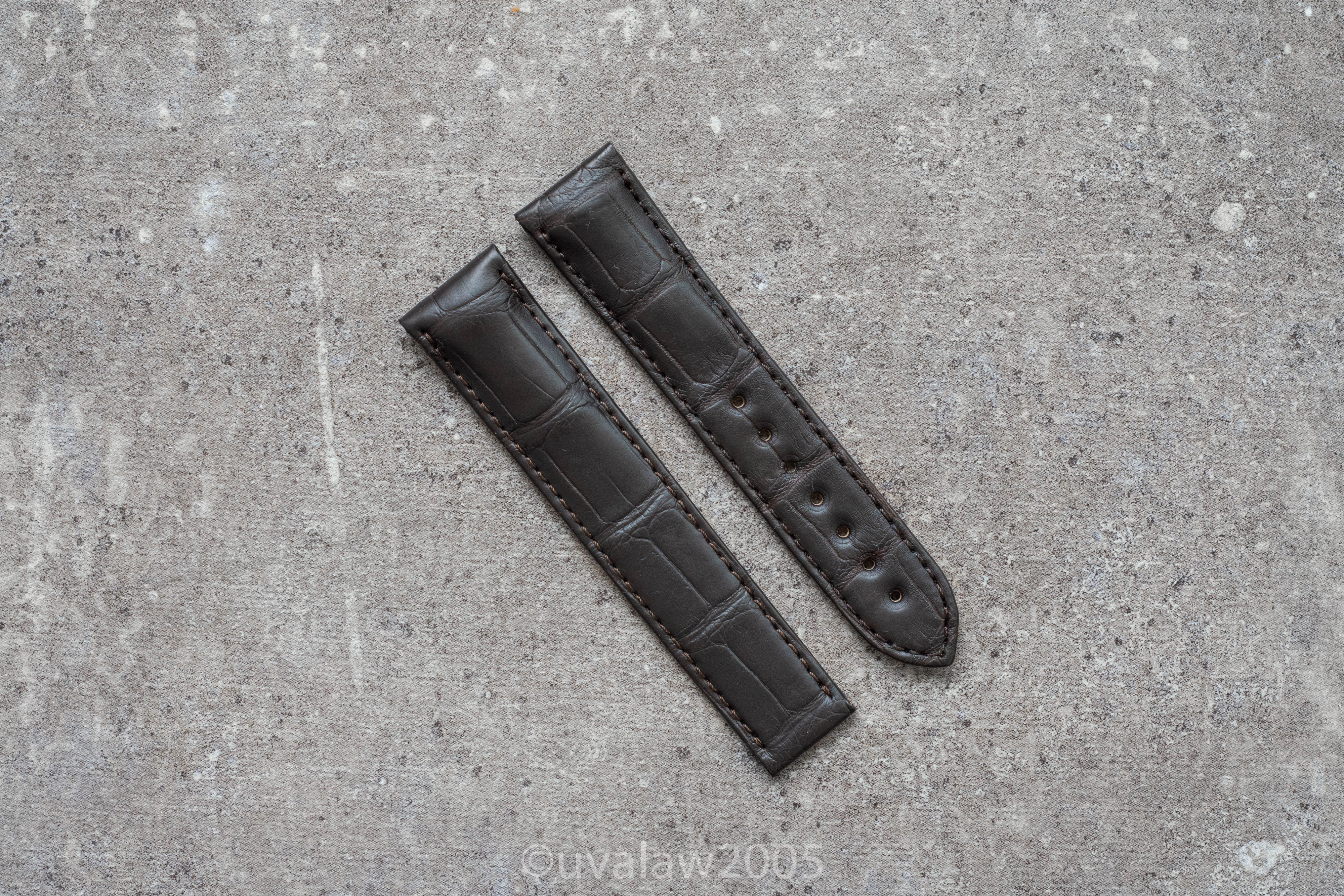 ·For sale is my brand new Omega dark brown alligator leather deployant strap, ref. 98000276, 20mm lug width x 18mm buckle width. Will fit 41/42mm Seamaster Pro, 42mm Planet Ocean, 42mm Speedmaster, 41mm Aqua Terra, or any other watch with 20mm lugs.
