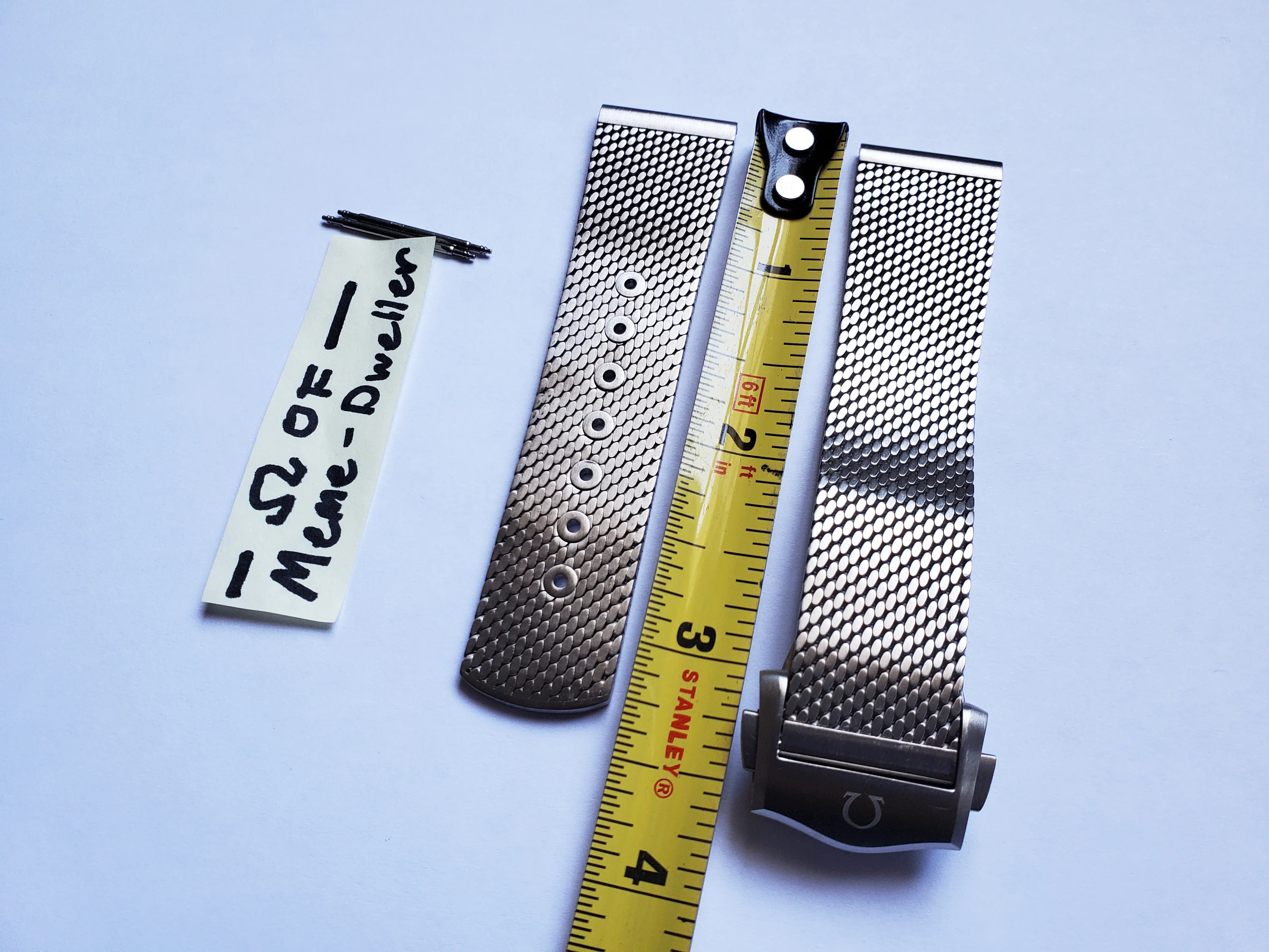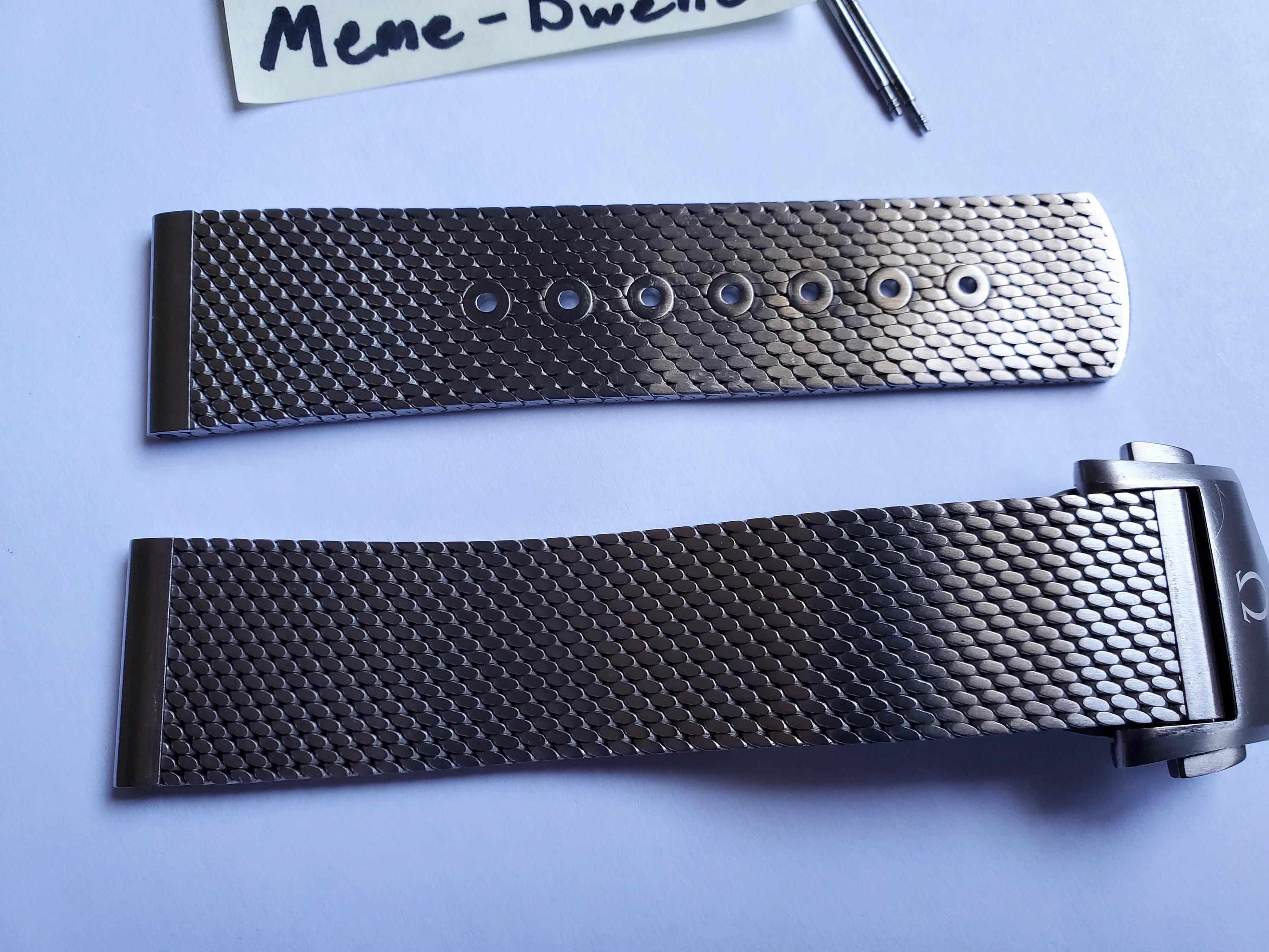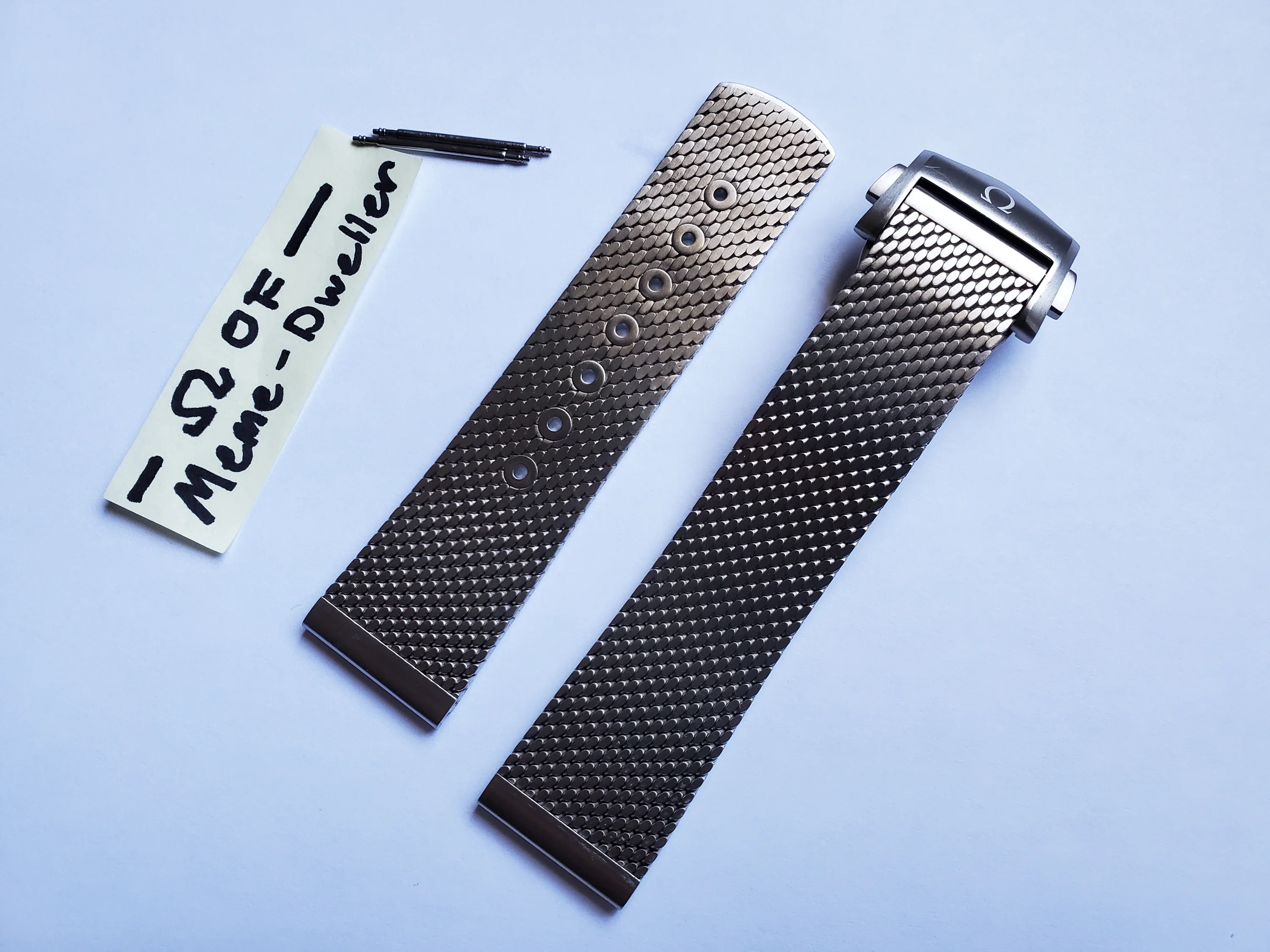 Up for sale is a 20mm genuine Omega mesh strap/milanese bracelet in titanium. Short length. Tapers to 18mm. It's pre-owned and has some normal wear/light scratches. Comes with aftermarket 20mm spring bars.