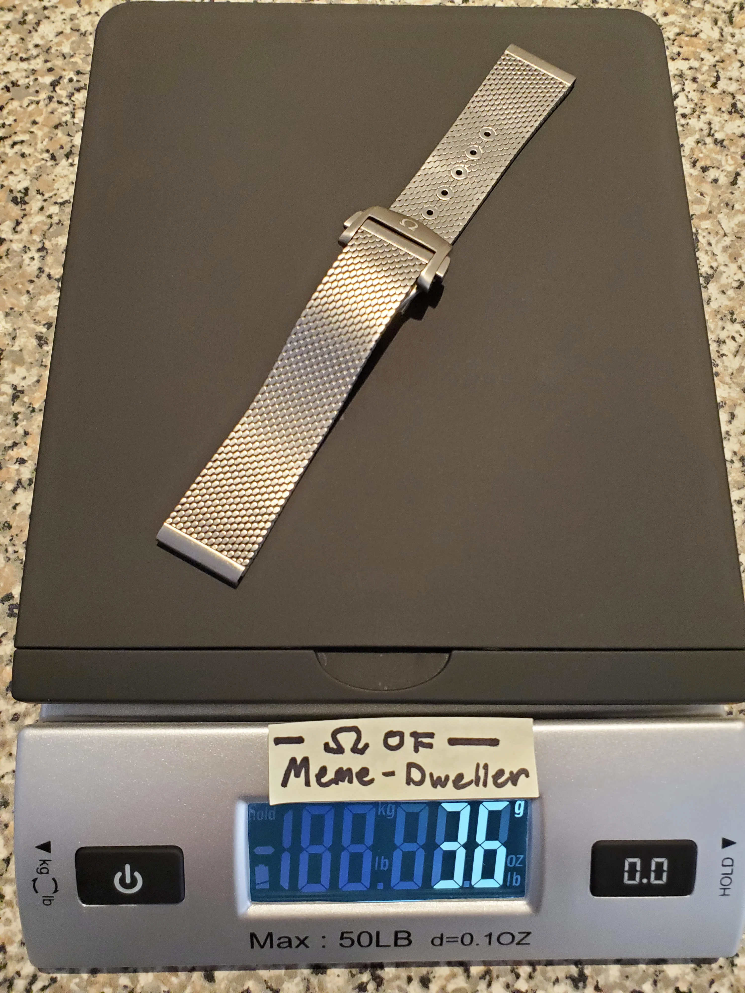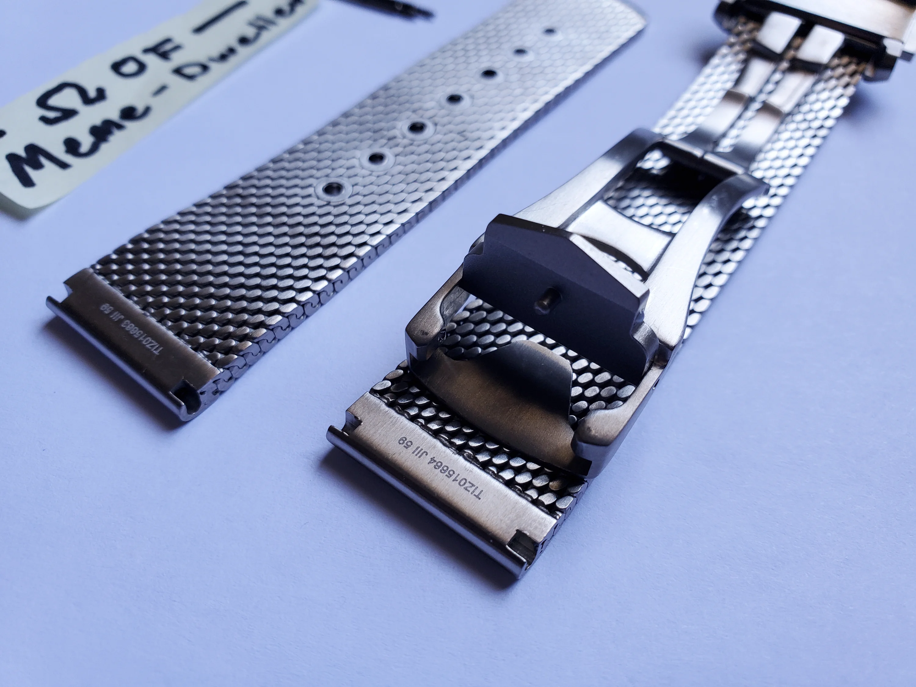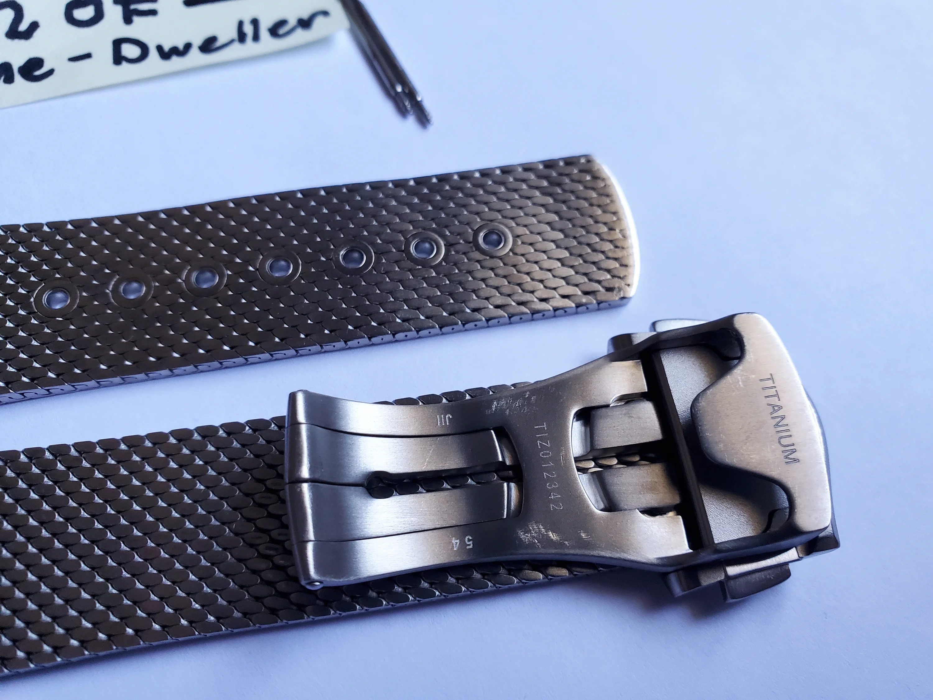 Up for sale is a 20mm genuine Omega mesh strap/milanese bracelet in titanium. Short length. Tapers to 18mm. It's pre-owned and has some normal wear/light scratches. Comes with aftermarket 20mm spring bars.