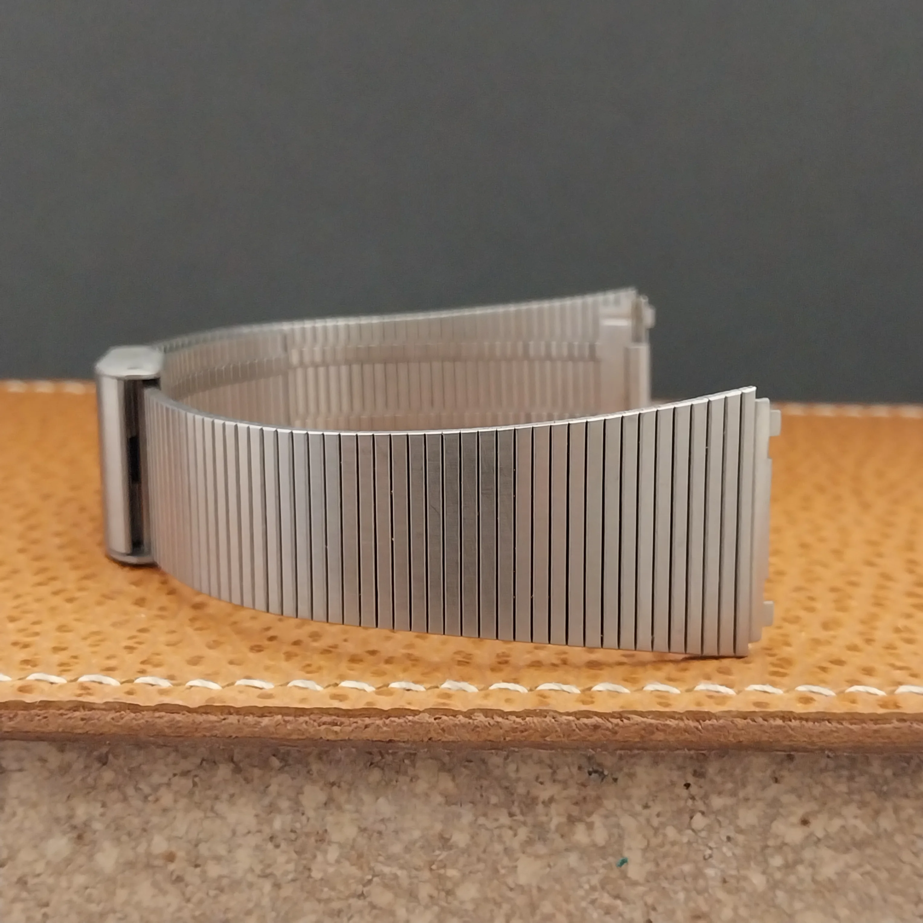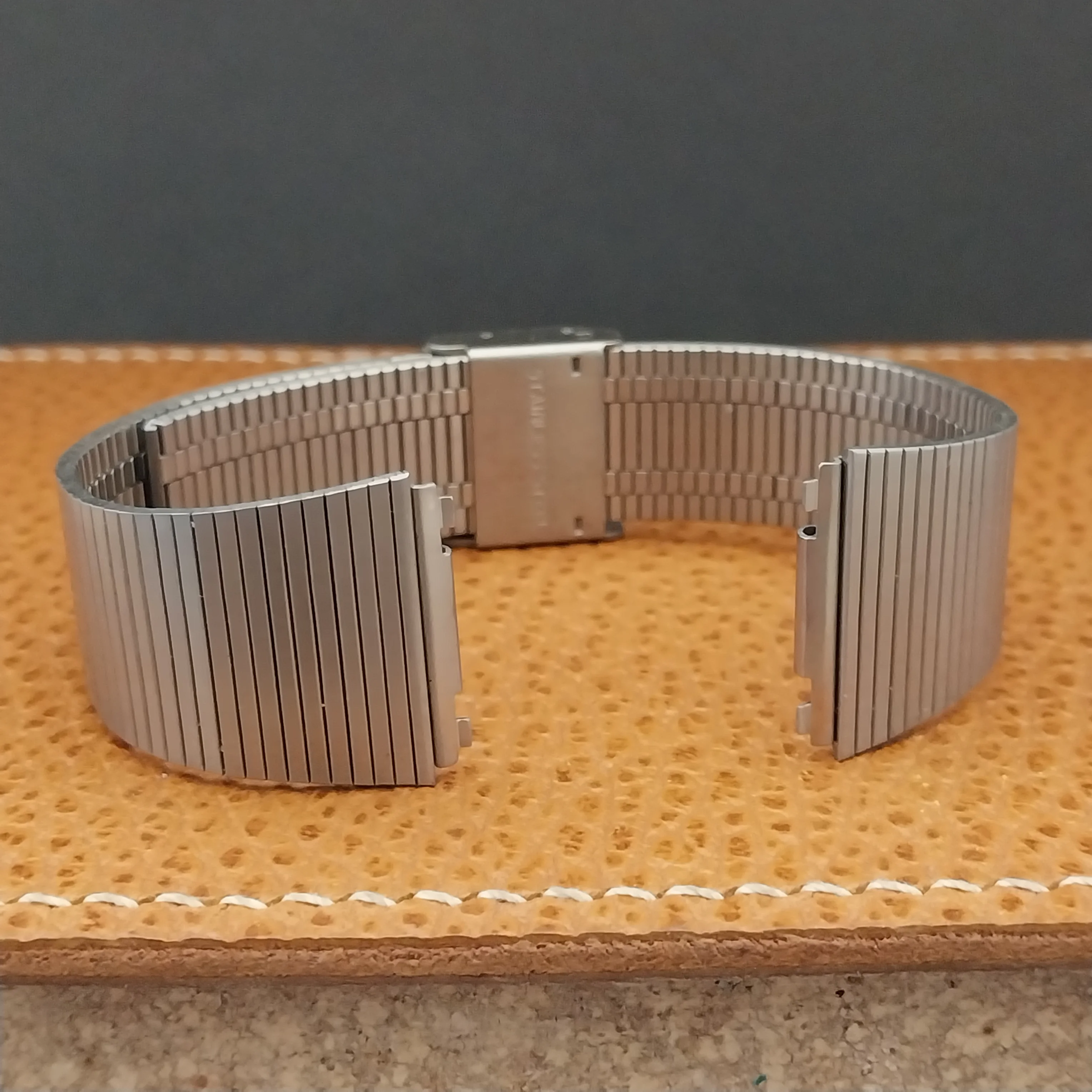 ·NOS unused old-stock 1970s-1980s brushed stainless steel 2-piece watch bracelet.