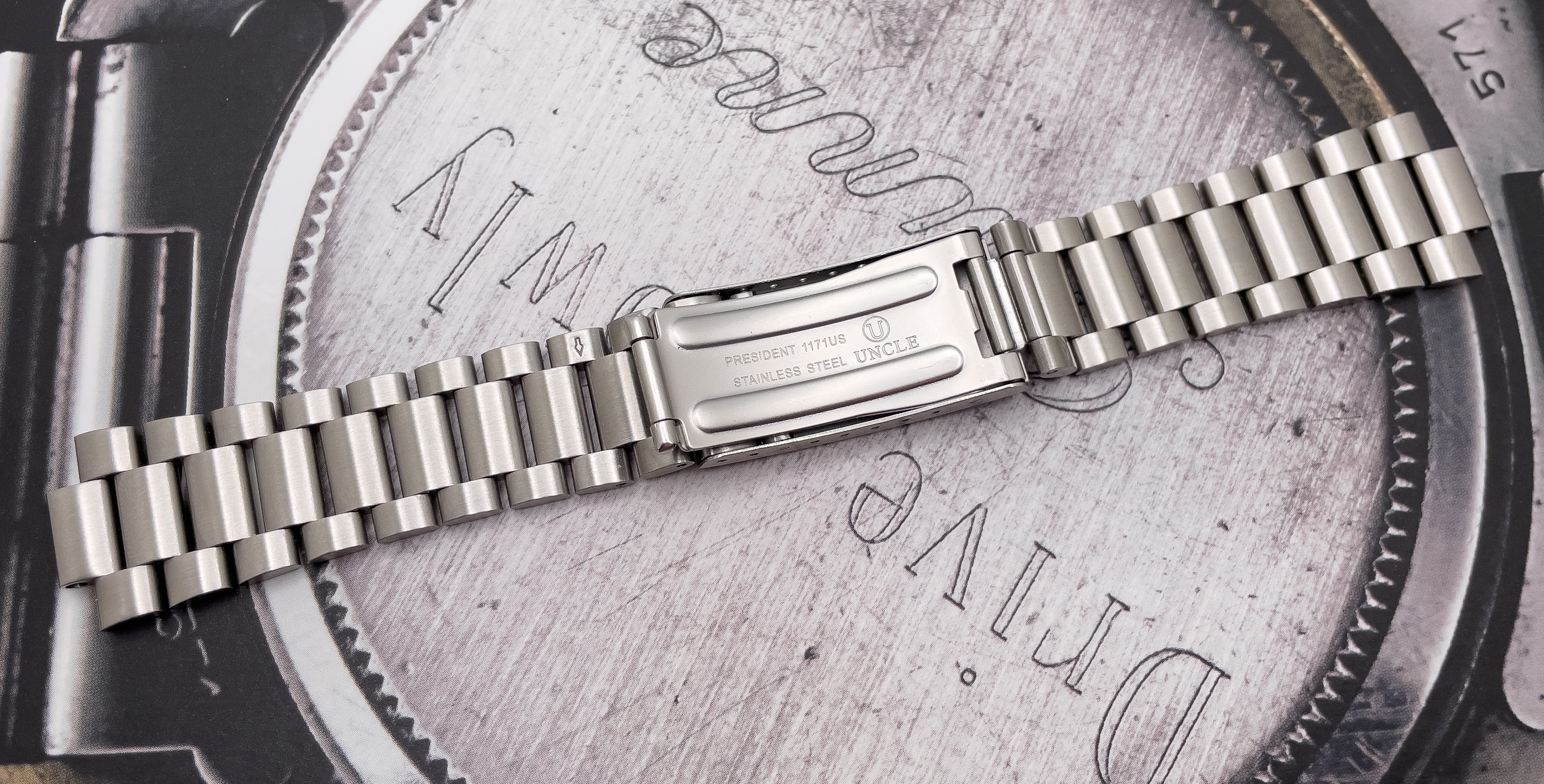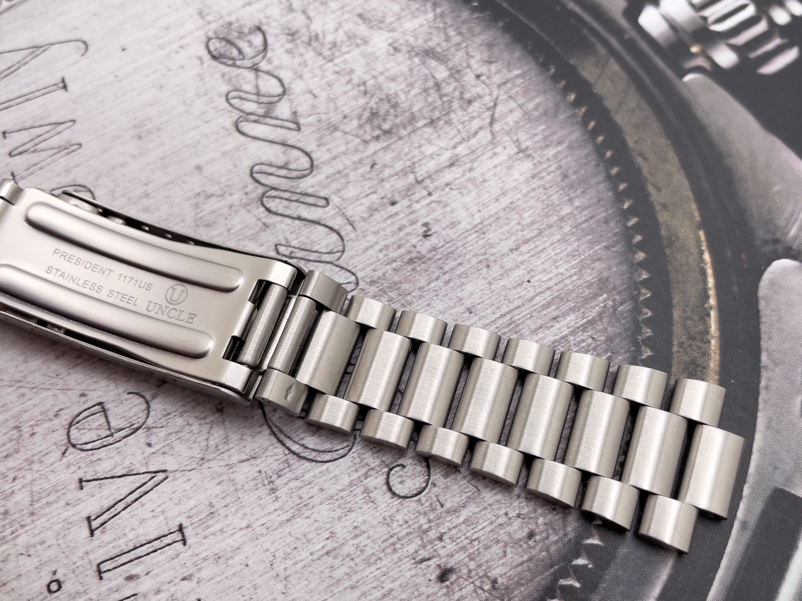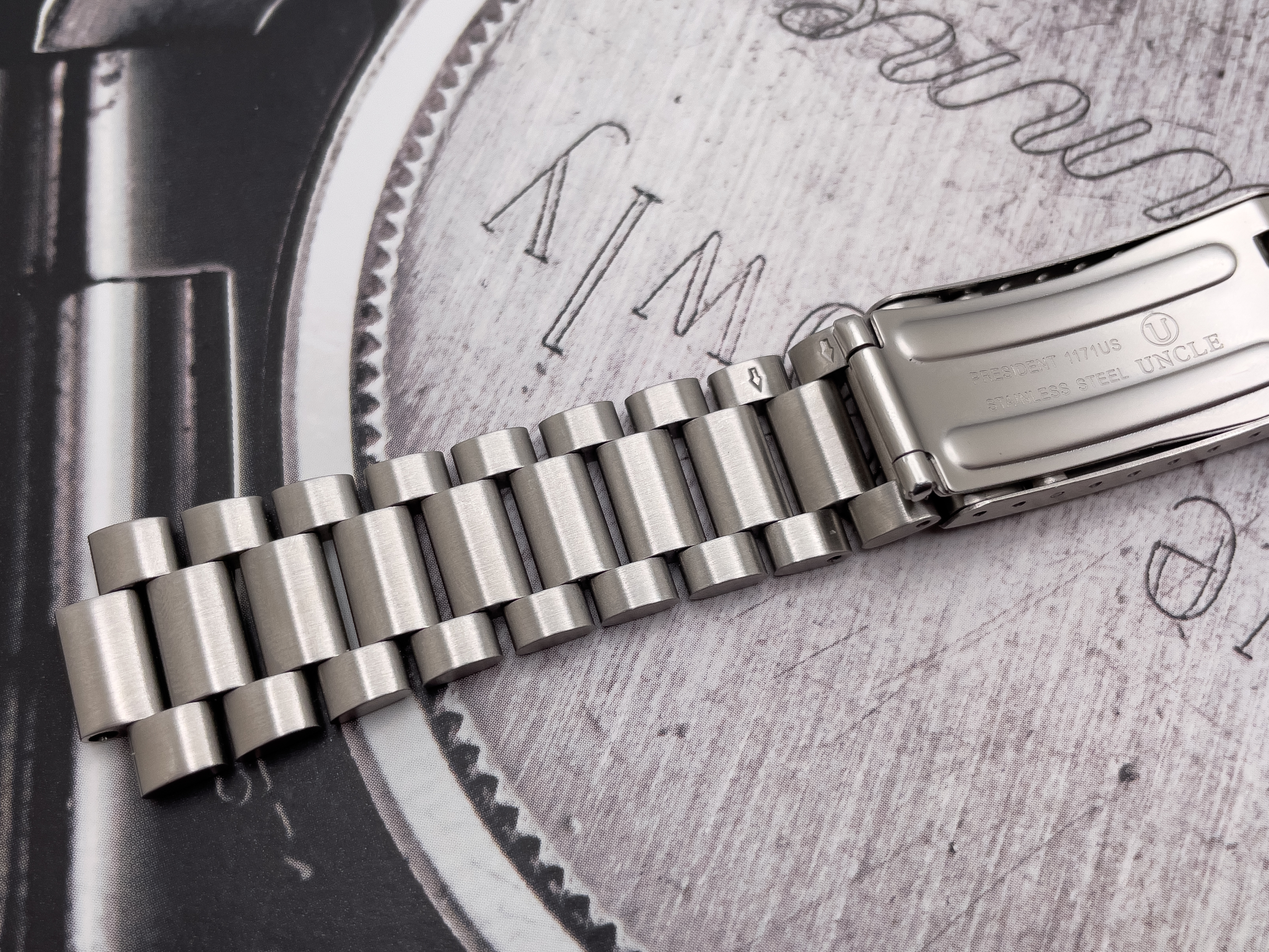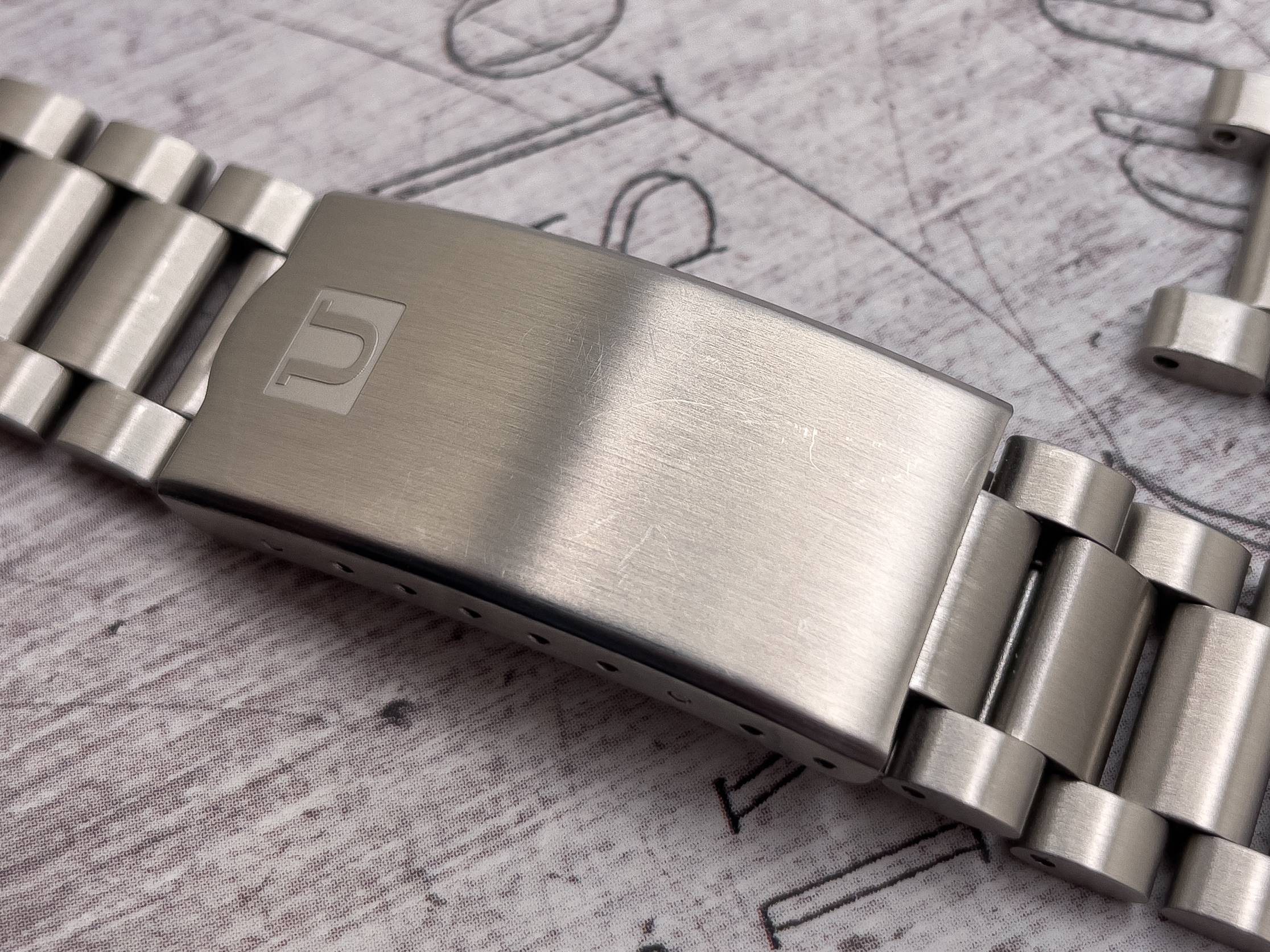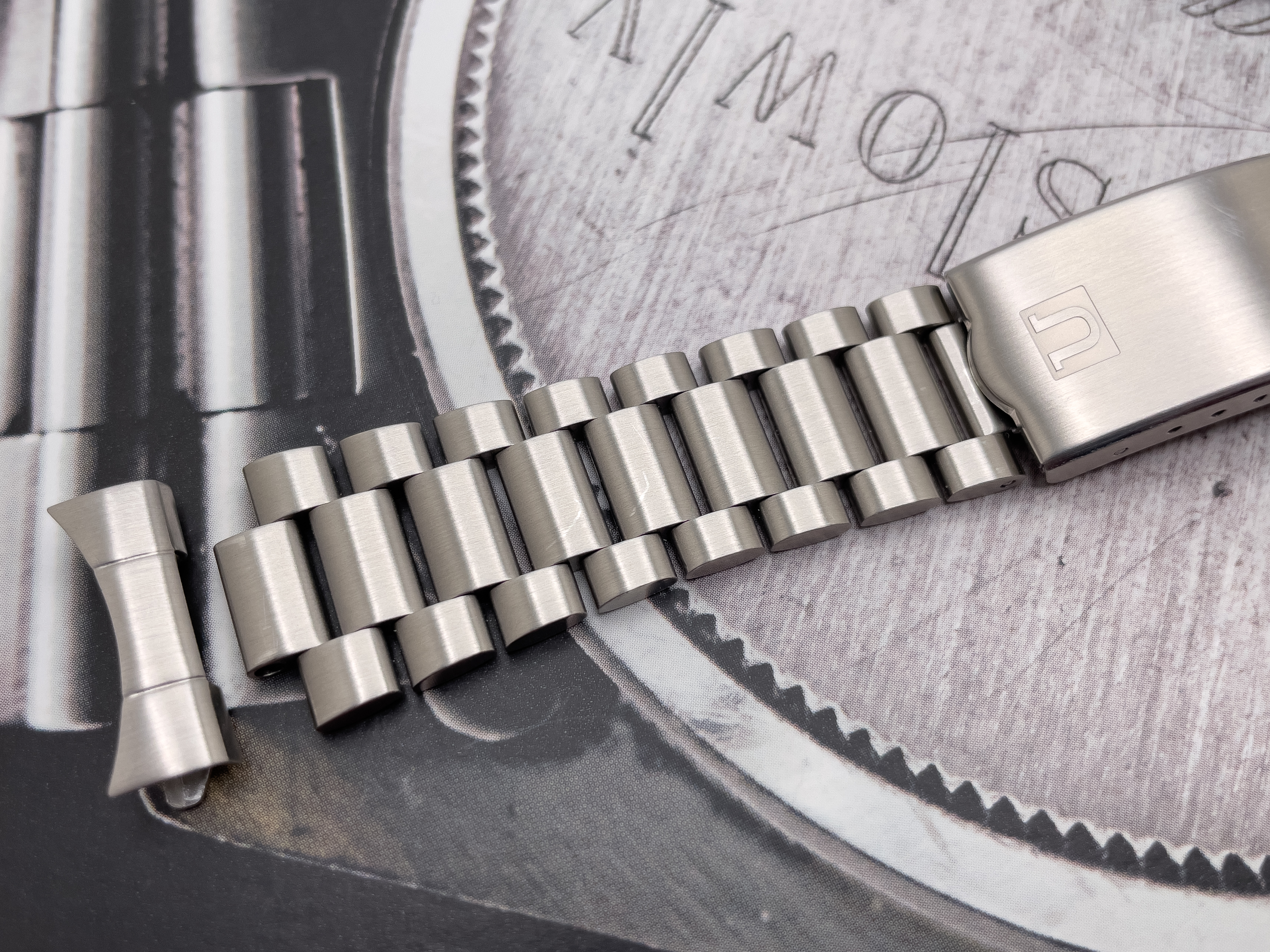 For sale is the 20mm Uncle Seiko 1171 bracelet I purchased new for my Speedmaster. It has only been worn a couple of times and has a few superficial wear marks to reflect this. This is full size with the removed links never worn. Includes the US 20mm fat spring bars that came with the bracelet. Everything functions as it should. I am only selling because I bought an Omega 1171.