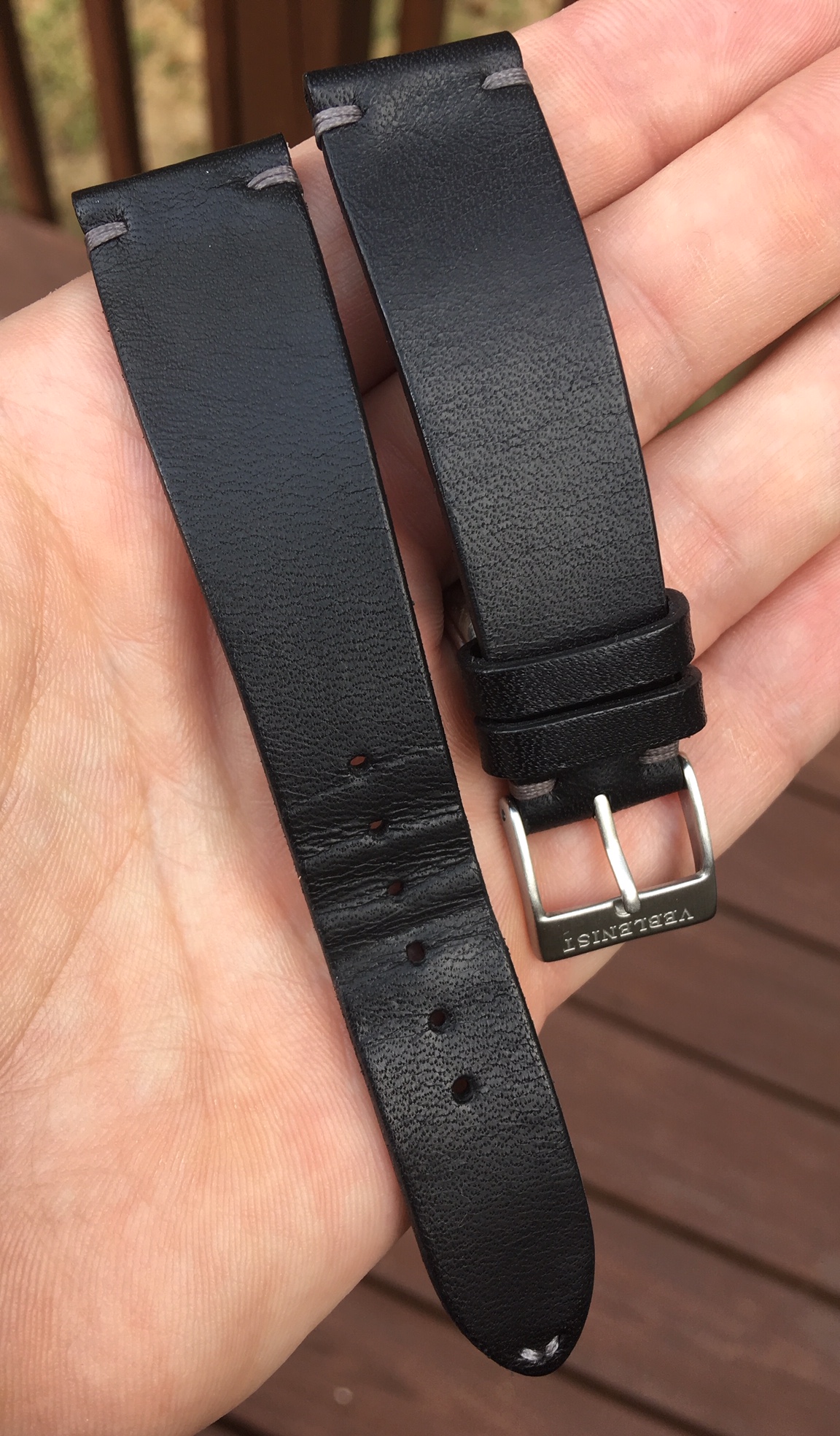 ·Up for sale is a Veblenist black leather strap in 20mm that tapers to 16mm at the buckle. I've tried the more expensive strap makers and Veblenist is IMO the best strap for the money on the market. This is the "Blackstone" model with black leather and gray stitching. It's in excellent condition and only worn a handful of times. The stainless buckle is included.