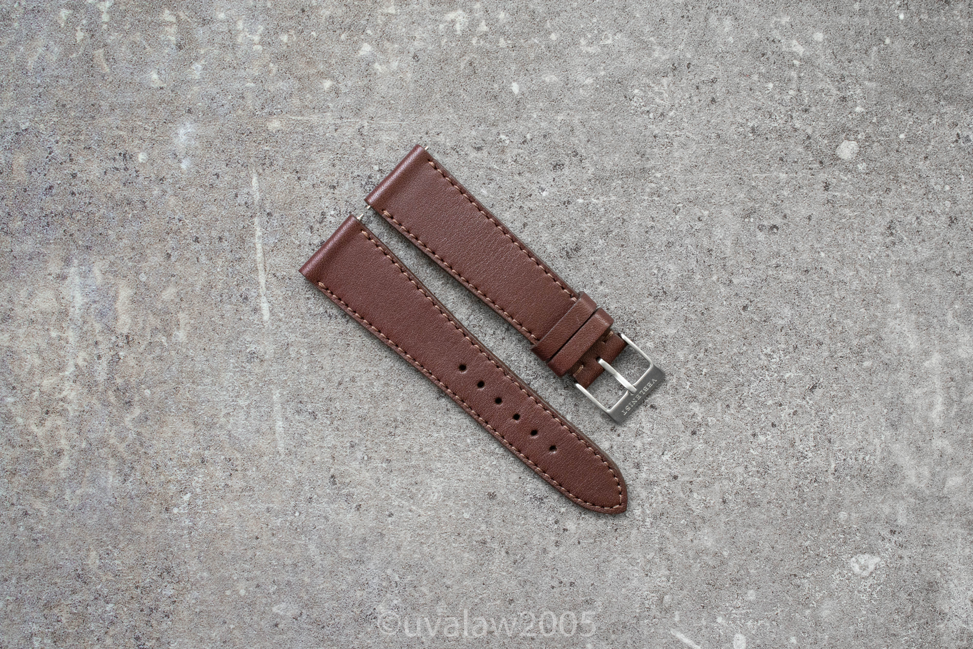 ·For sale is a custom 20mm Veblenist Mahogany Calfksin leather strap with quick release spring bars. Measures 105/75mm, not counting the buckle. Tapers to 16mm at buckle. Worn twice.