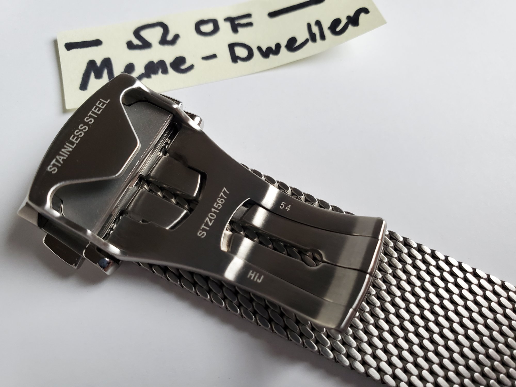 Bands are labeled part number STZ015708 (receiving end) and STZ015709 (clasp end)
